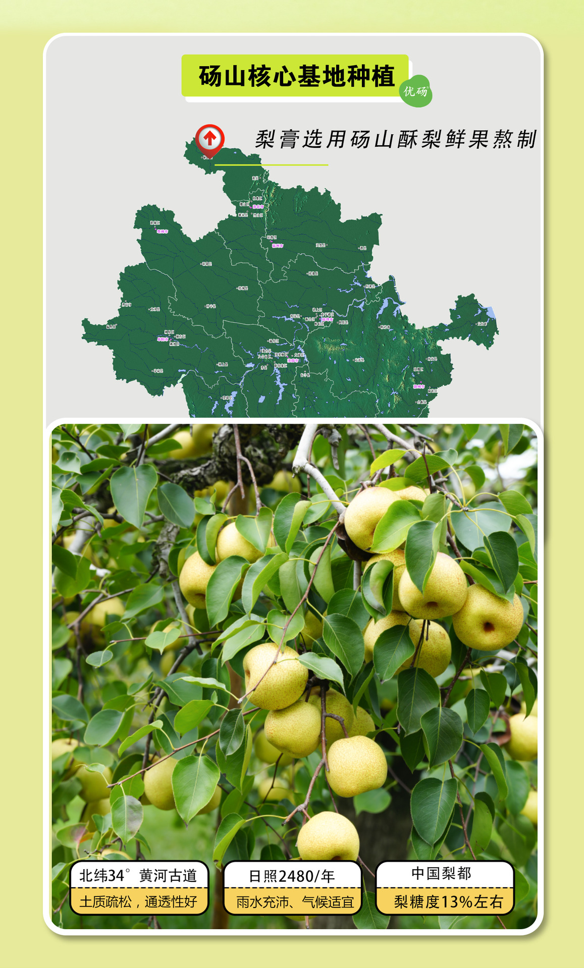 纯梨熬制的梨膏,最难的就是将梨膏的水分含量降到低提高自然糖度。不加一粒糖,不掺一滴水,经过12小时以上慢火熬制,才能产出100%纯正的梨膏。
