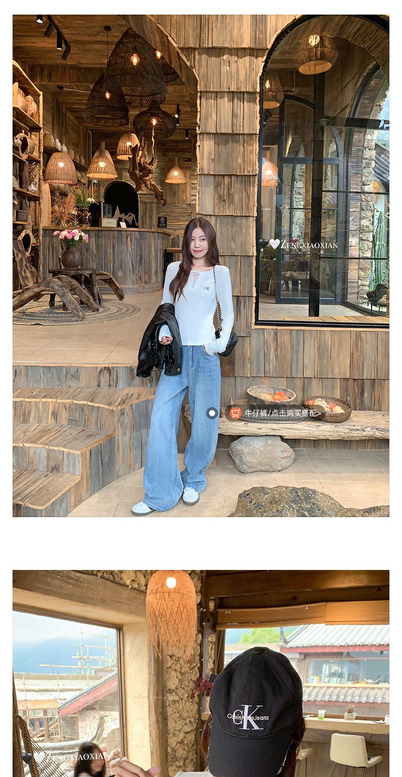 <曾小咸推荐>2.20现货秒杀 !微信超特价!韩系镂空领口t恤 日常109.99 立减50 秒杀59.99!!复古纹理宽直筒牛仔裤 秒杀99.99!!