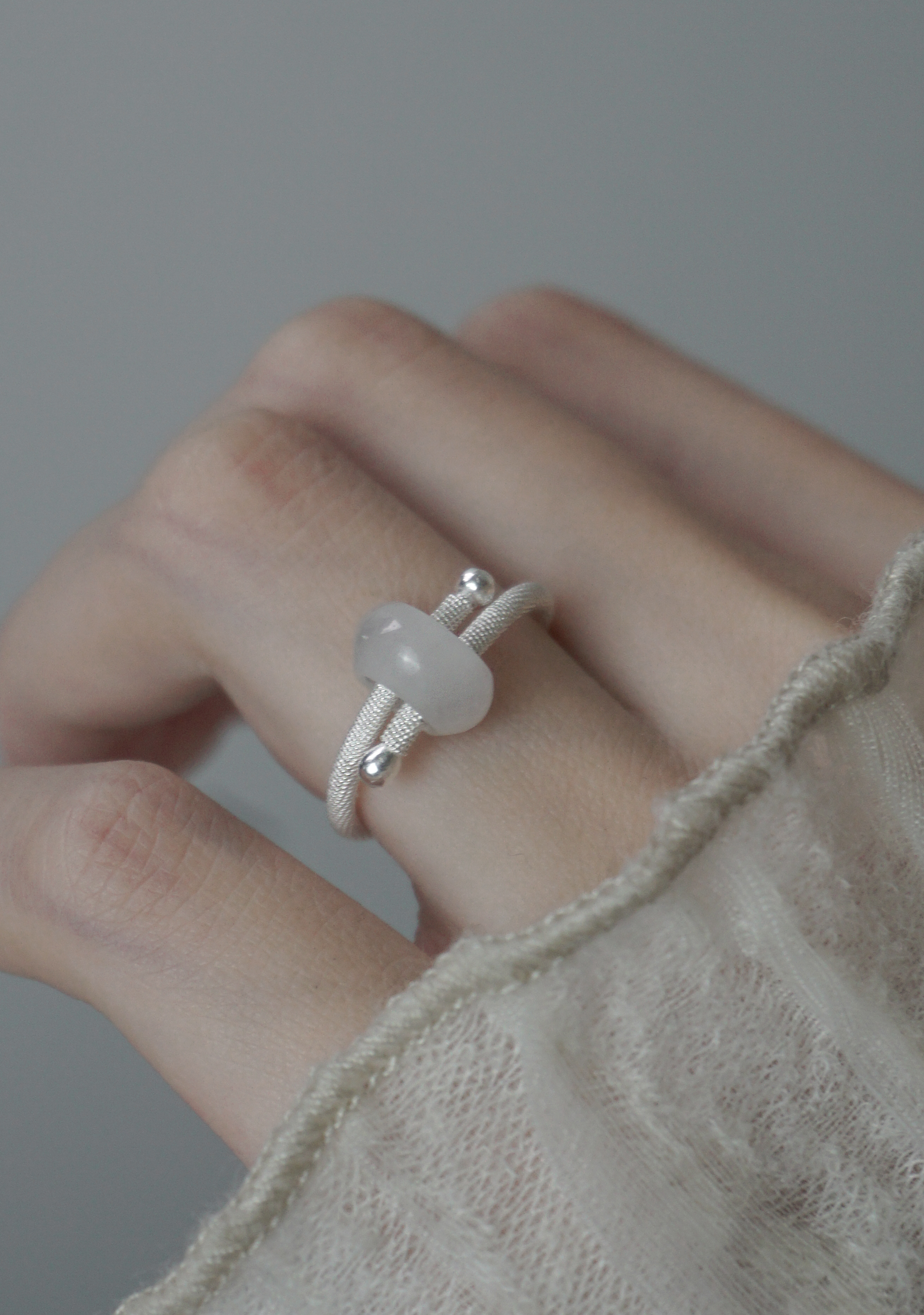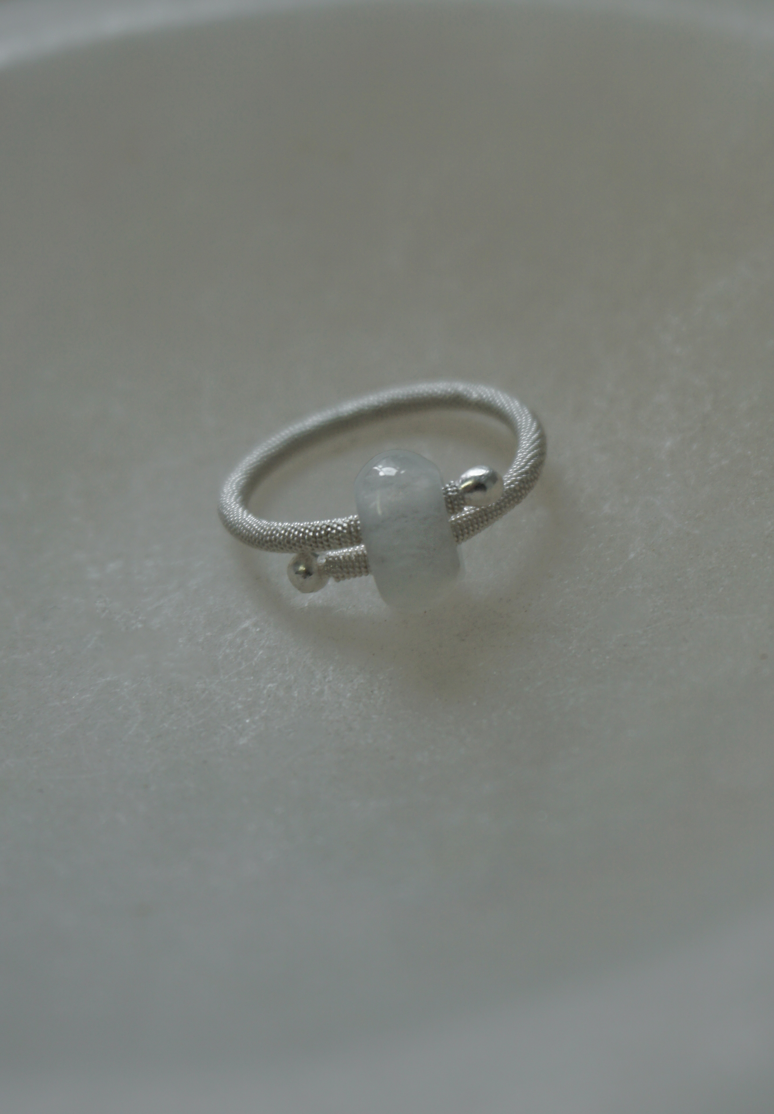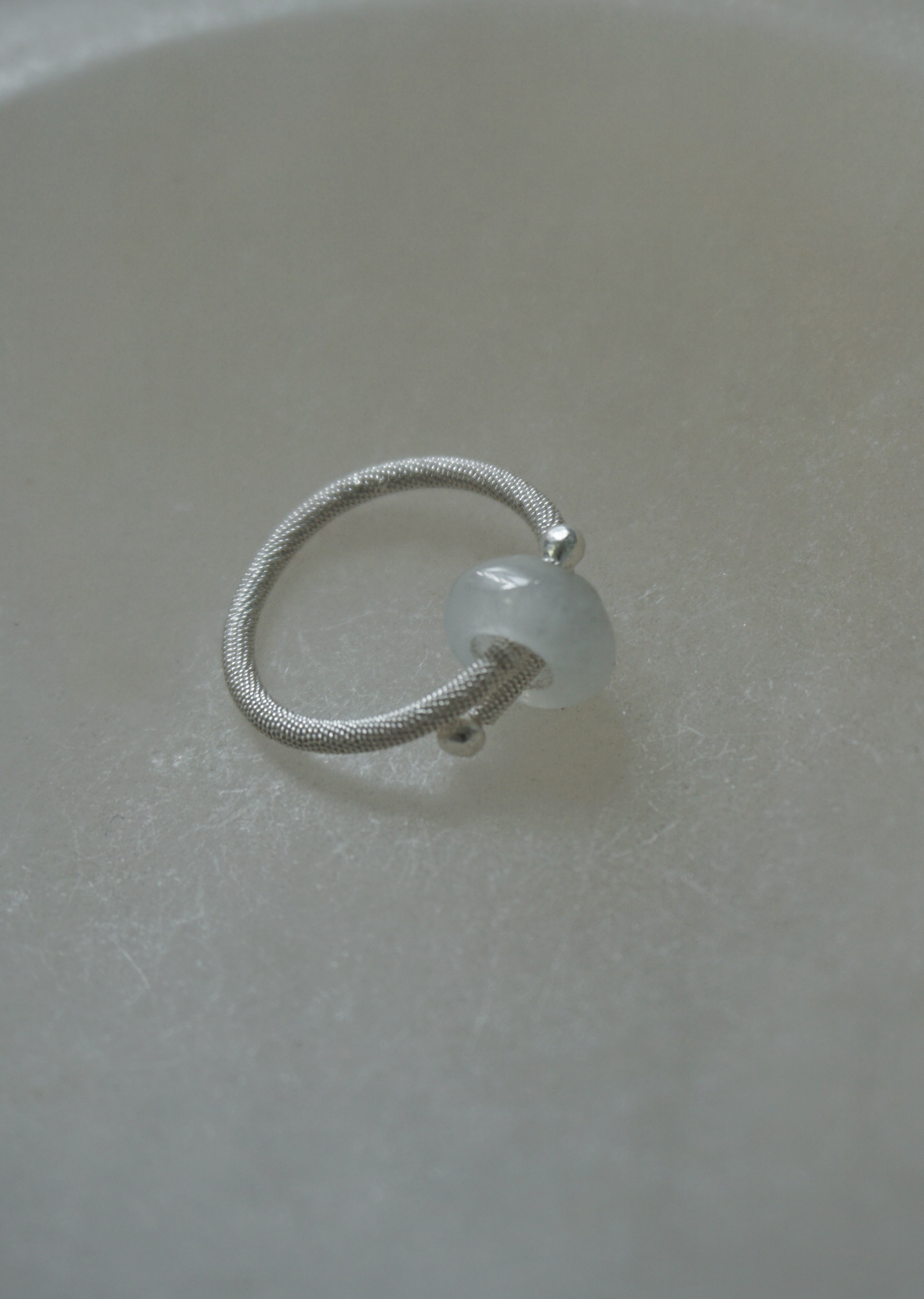 奶奶有一个小玉环,本来是耳坠上挂着的后来奶奶送给了我,被我拆下来卡在初晴素圈的戒指上。
