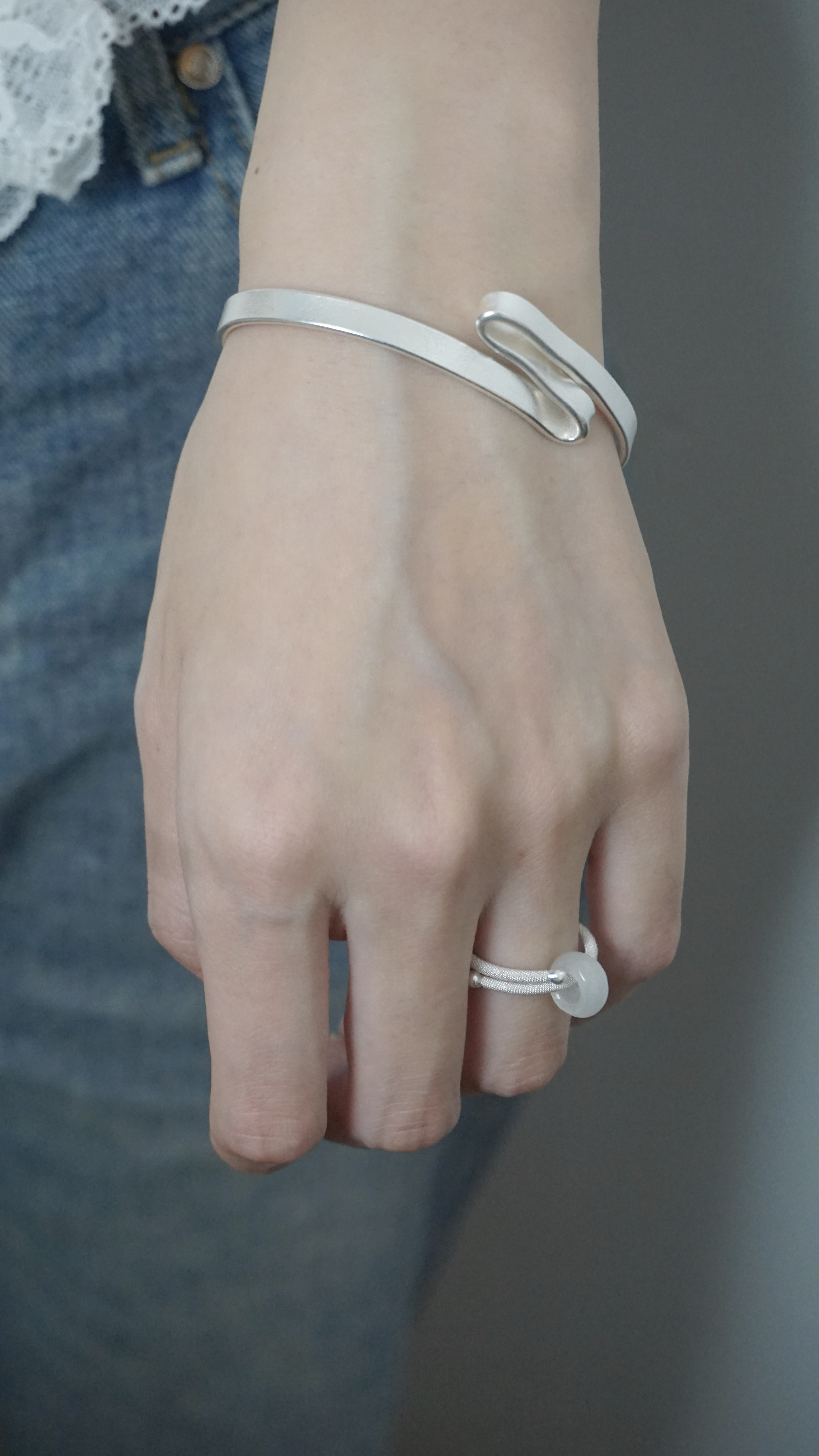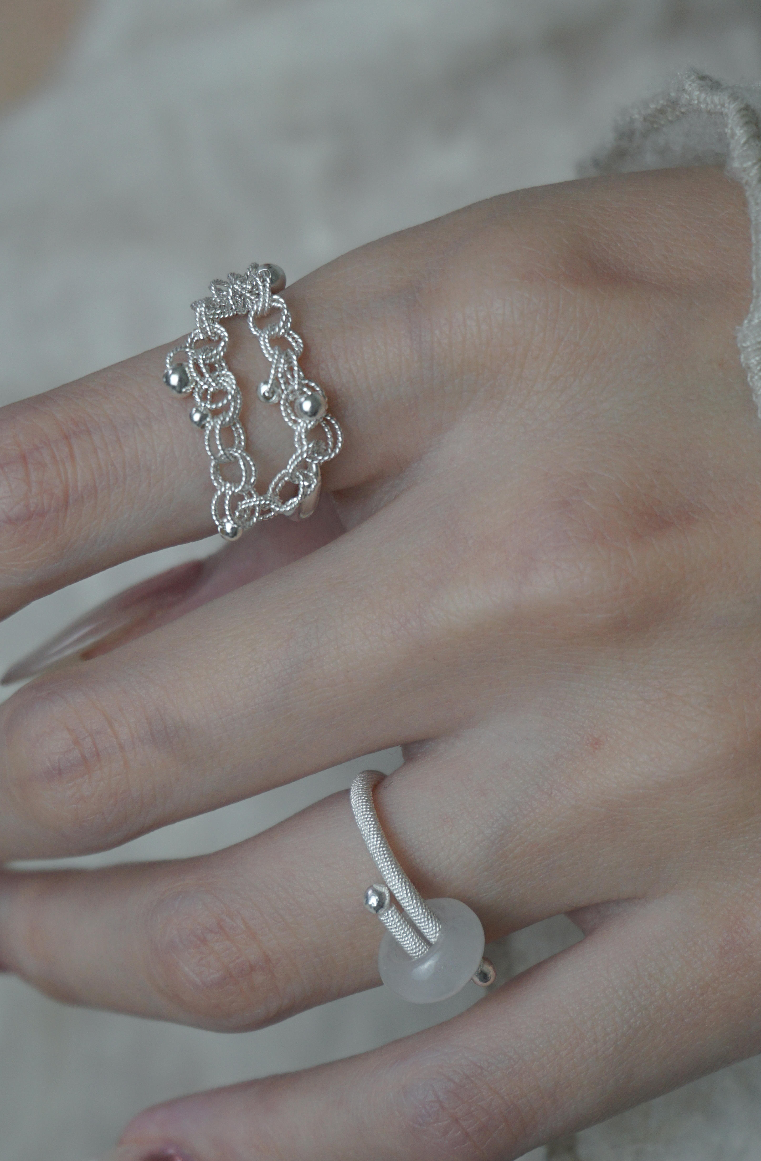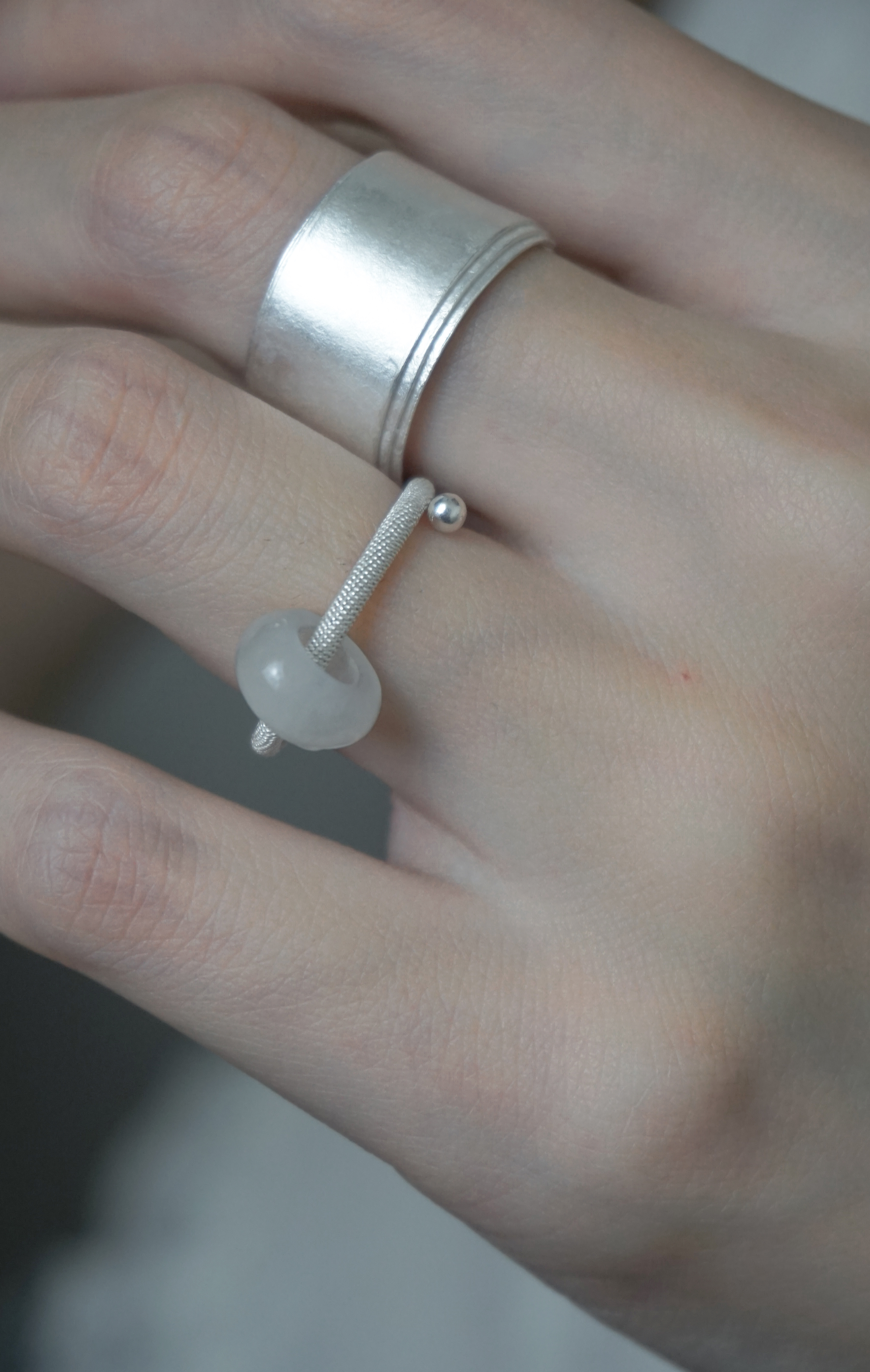 奶奶有一个小玉环,本来是耳坠上挂着的后来奶奶送给了我,被我拆下来卡在初晴素圈的戒指上。