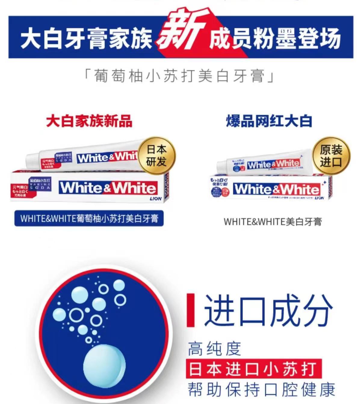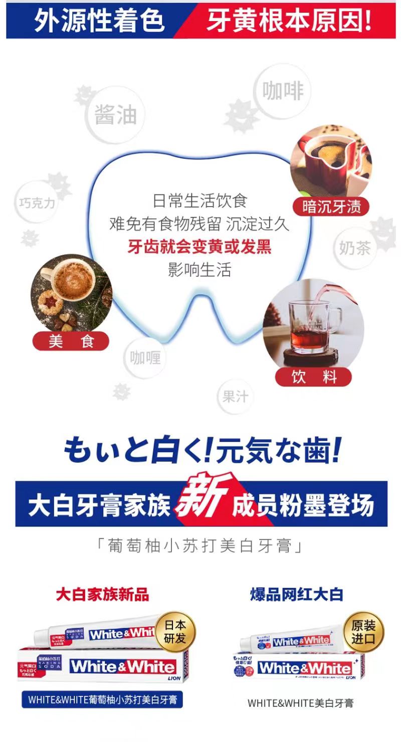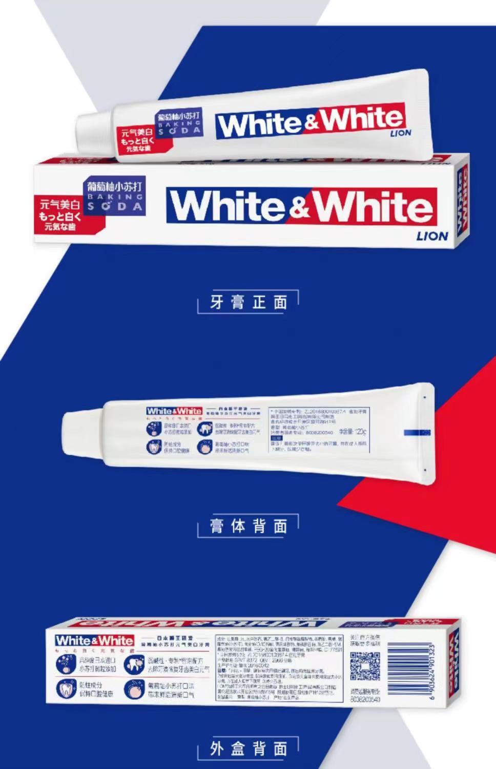 狮王WHITE&WHITE小苏打元气美白牙膏(葡萄柚)120g