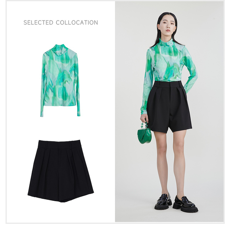 谜底西装短裤女2023春季新款高级质感A字型宽松短西裤女231MK0038