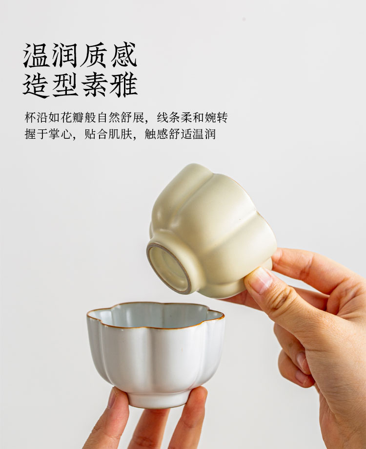 2、茶悟涤心茶叶礼盒·水仙套组(月白汝窑梅花杯*1+米黄汝窑梅花杯*1+水仙8g/罐*8小罐+礼盒+手提礼袋)