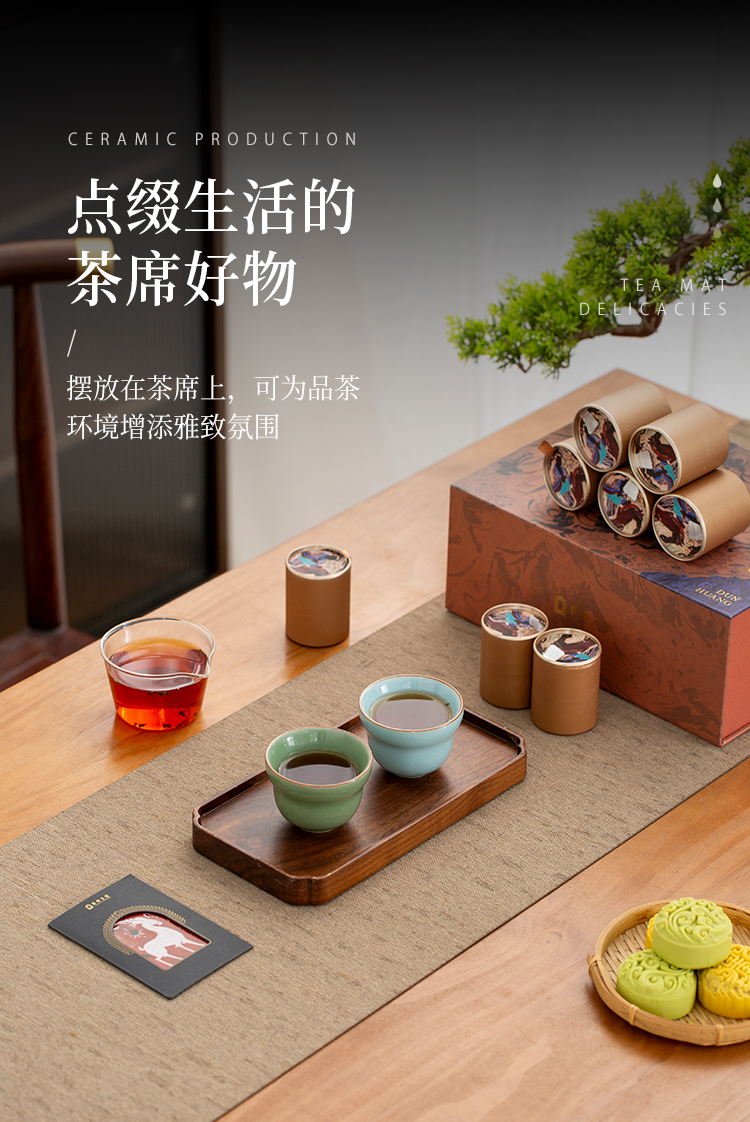 4、茶悟涤心茶叶礼盒·妃子笑套组(天青汝窑福禄杯*1+豆绿汝窑福禄杯*1+妃子笑10g/罐*8小罐+礼盒+手提礼袋)