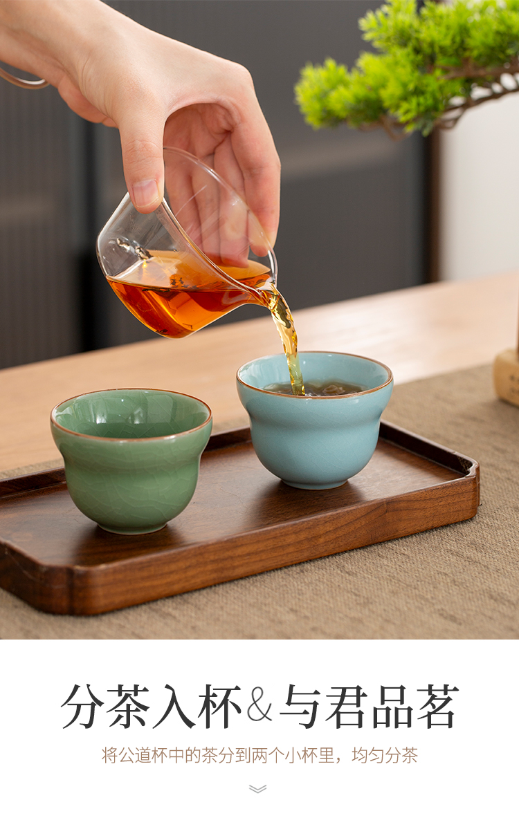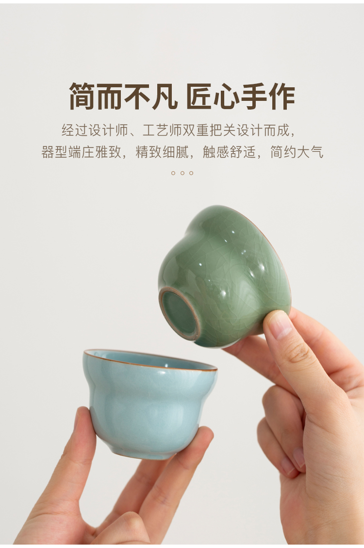 3、茶悟涤心茶叶礼盒·金骏眉套组(天青汝窑福禄杯*1+豆绿汝窑福禄杯*1+金骏眉10g/罐*8小罐+礼盒+手提礼袋)