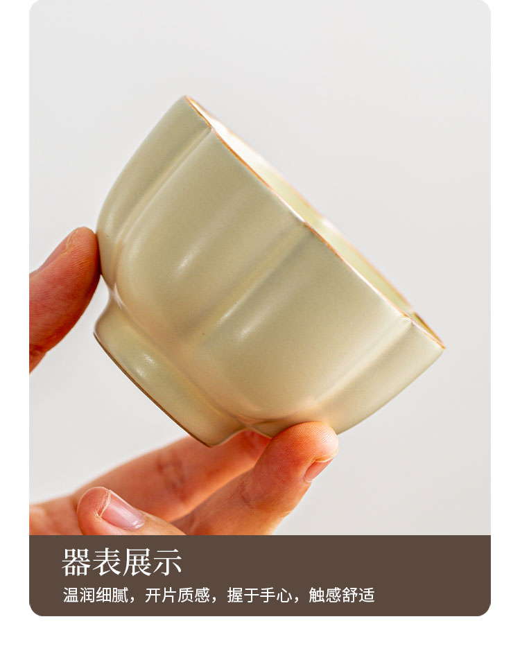 1、茶悟涤心茶叶礼盒·肉桂套组(月白汝窑梅花杯*1+米黄汝窑梅花杯*1+武夷肉桂8g/罐*8小罐+礼盒+手提礼袋)