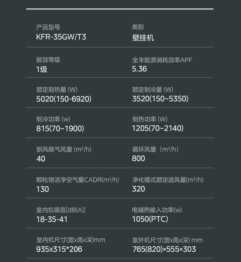 KFR-35GW/T3 变频 分体套机 极地白 美的