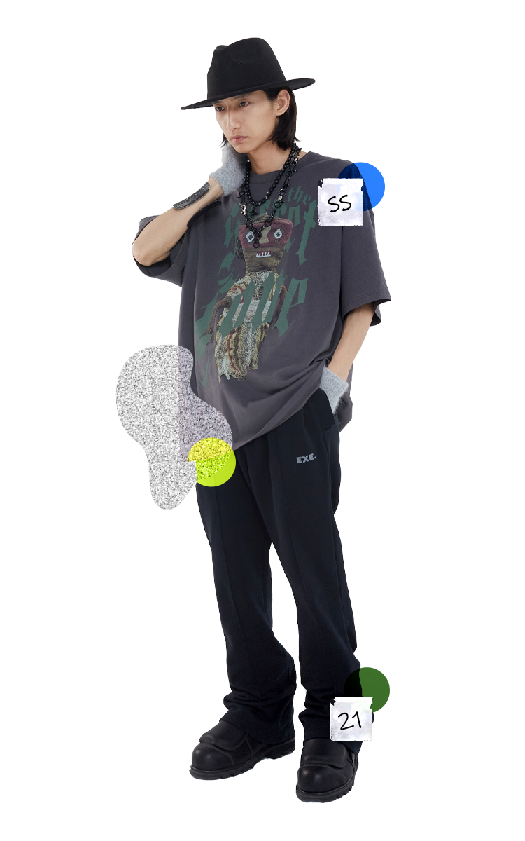 EAFINETAL.21SS新款双面穿印花设计做旧纯棉宽松休闲套头上衣卫衣