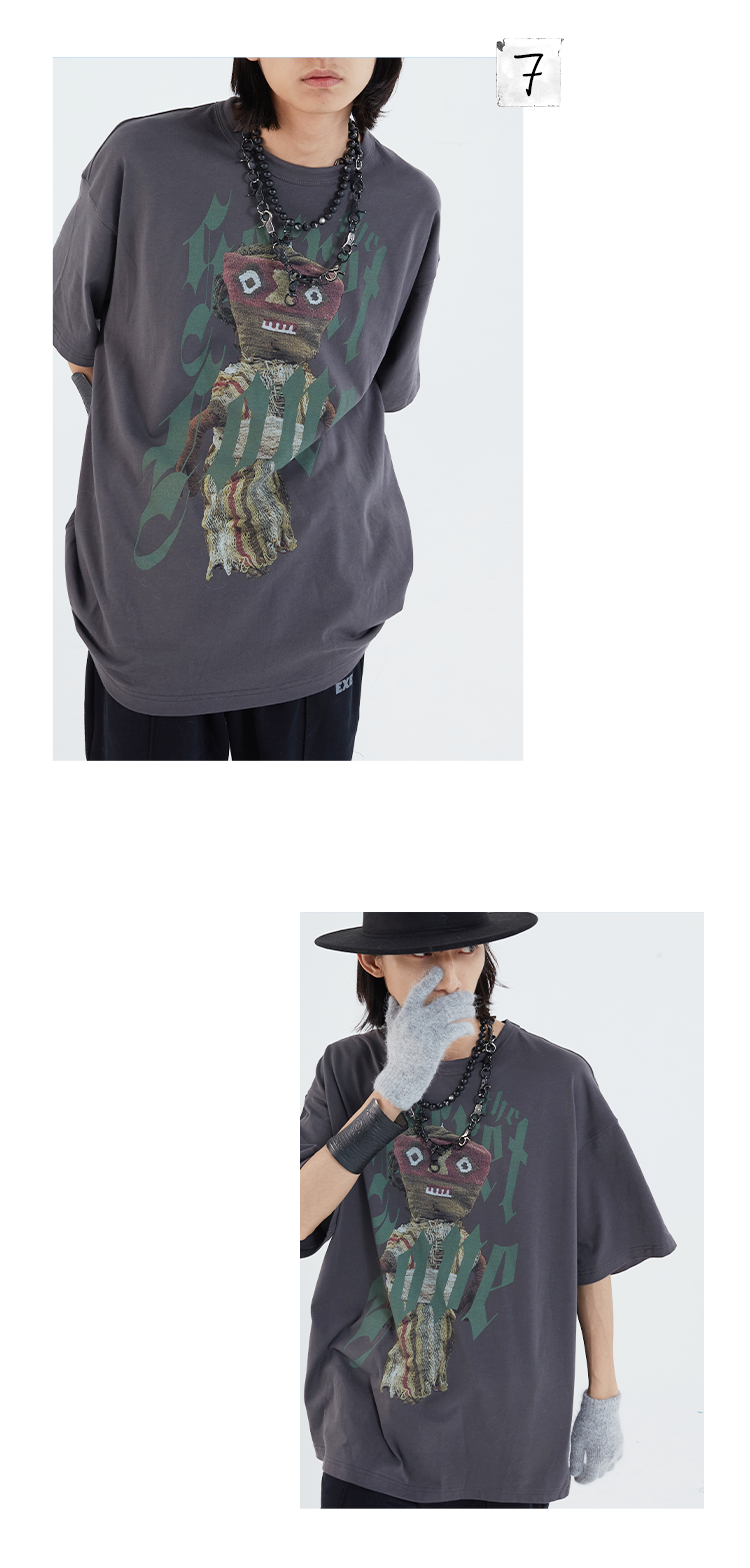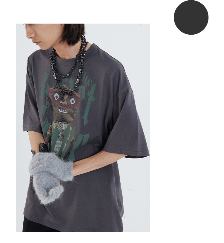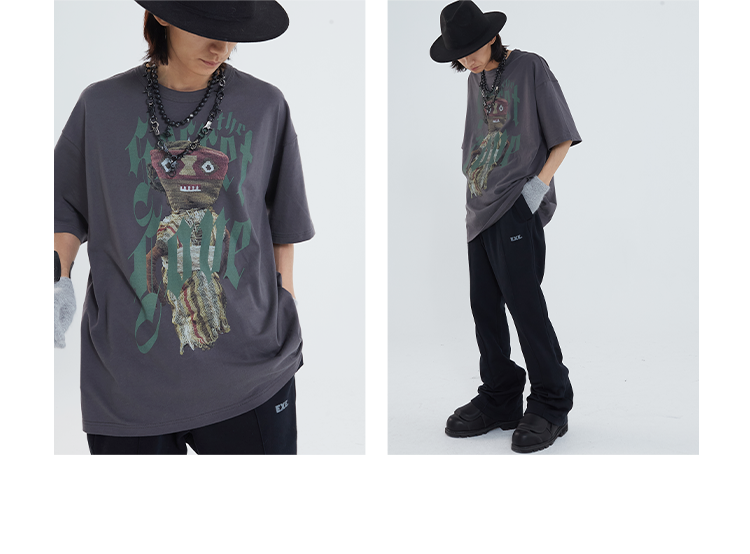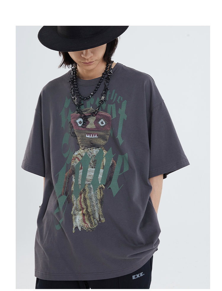 POH「巫毒娃娃」印花宽松休闲短袖男夏季潮牌复古国潮街头百搭T恤