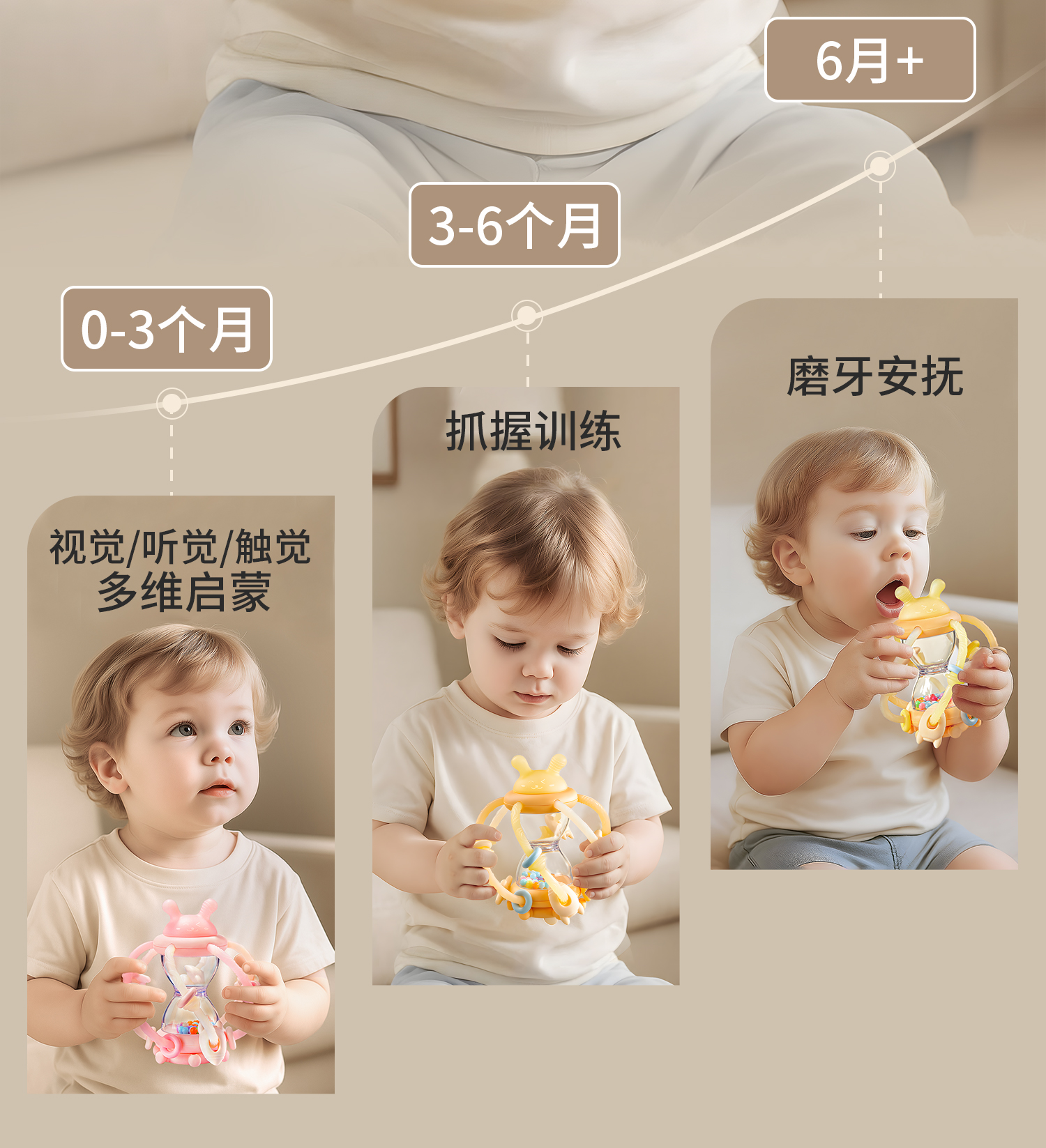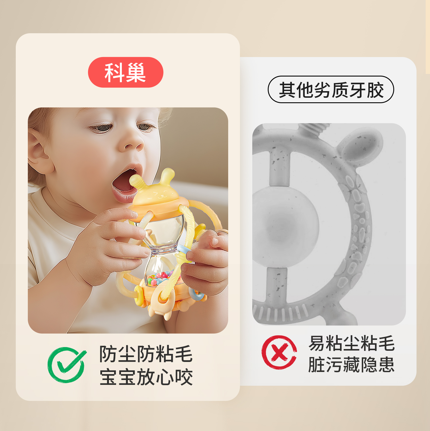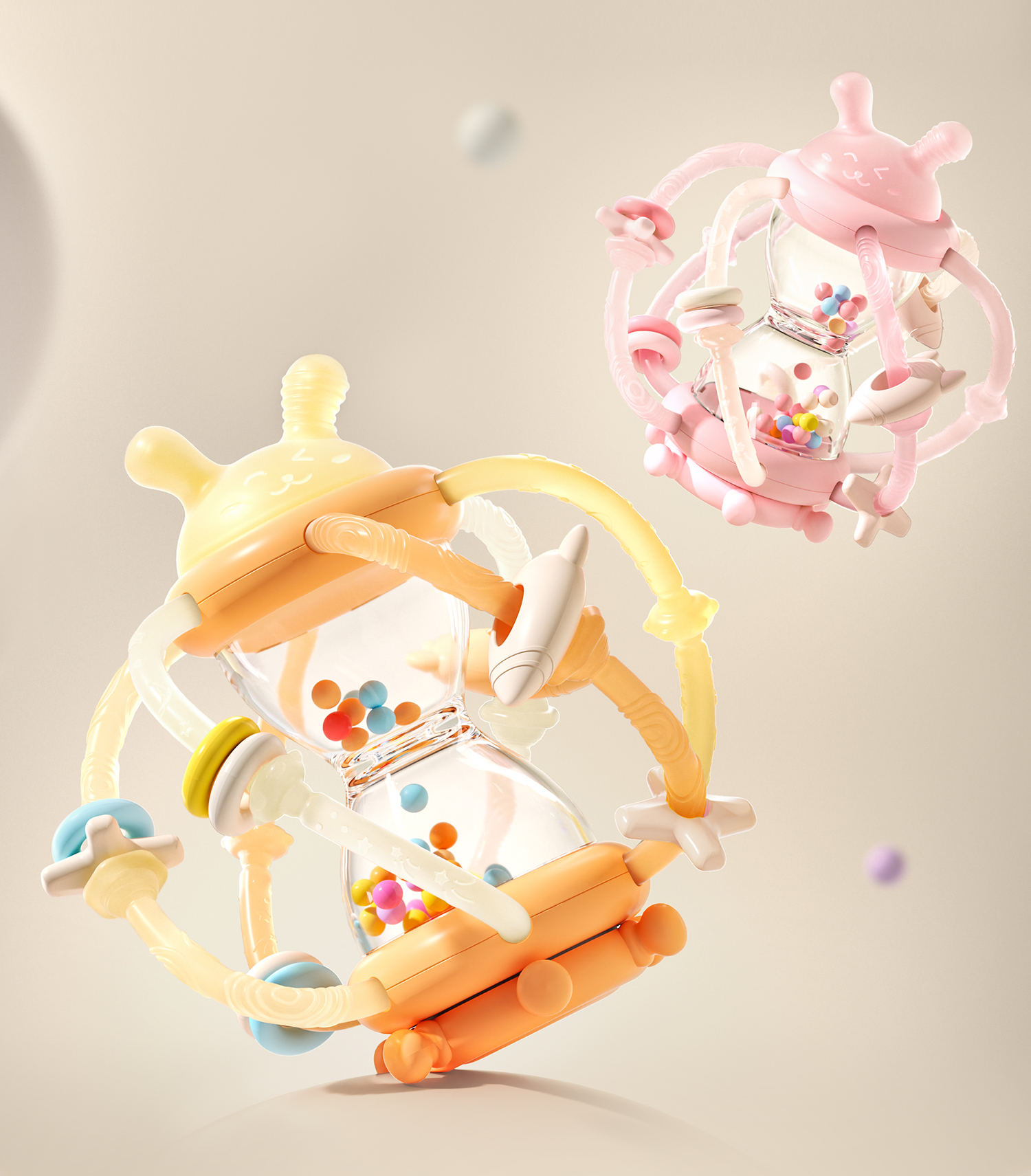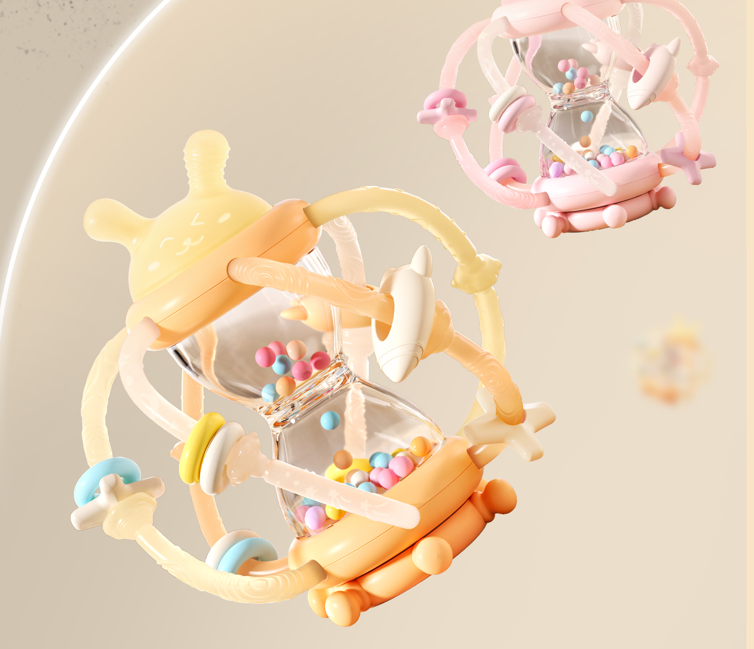 科巢沙漏曼哈顿手抓球婴儿玩具0到1岁牙胶一6个月3以上宝宝手摇铃