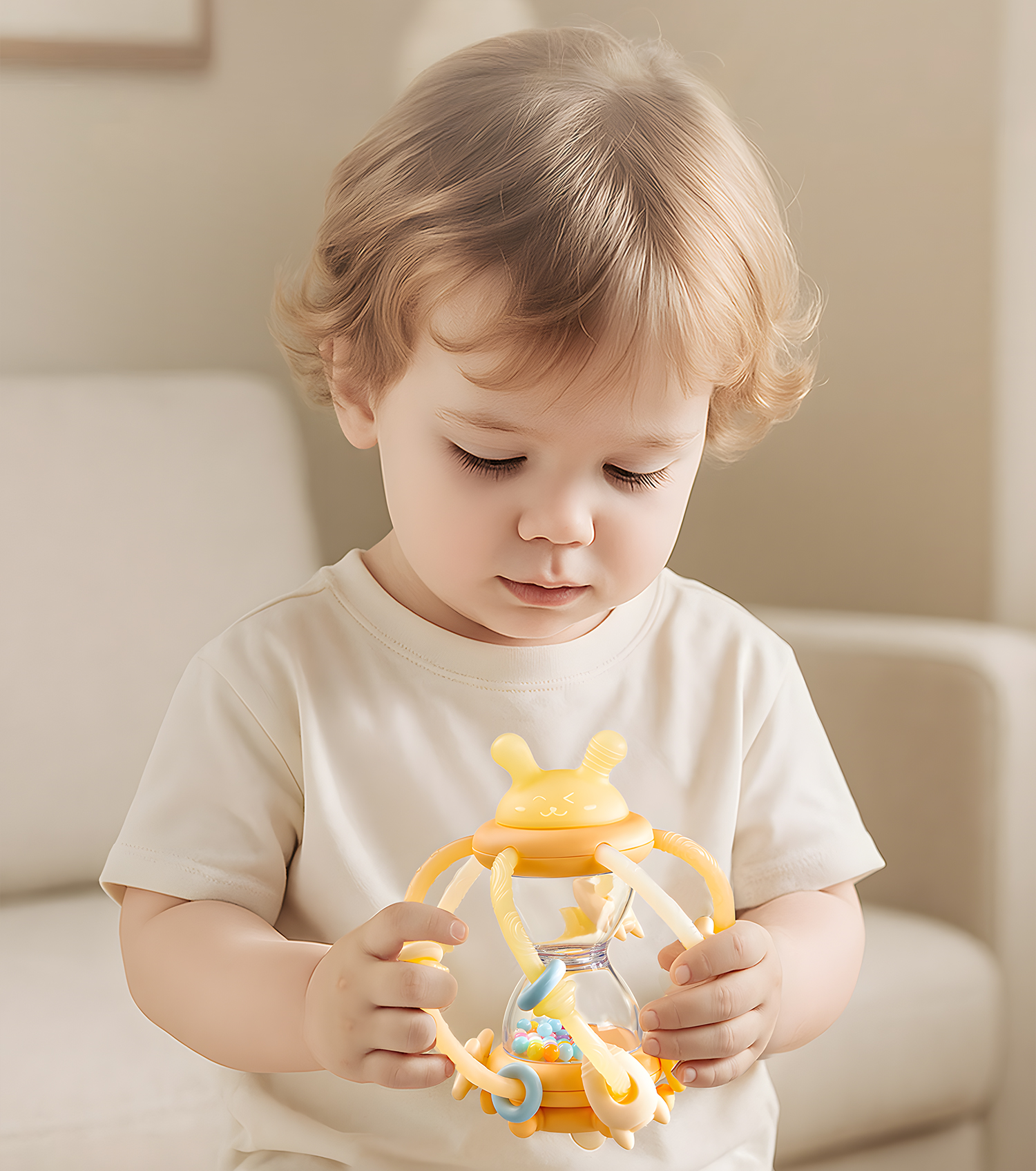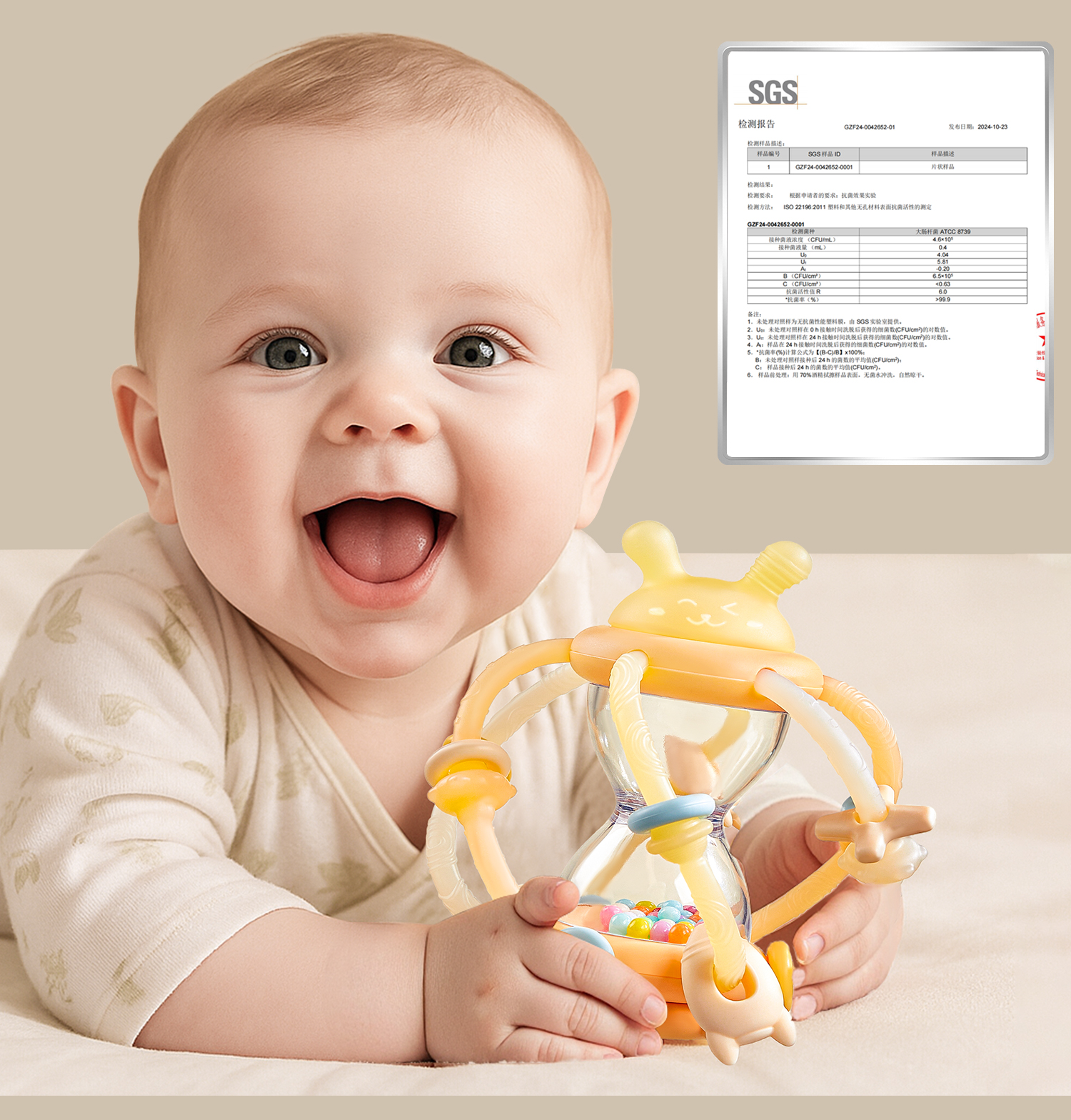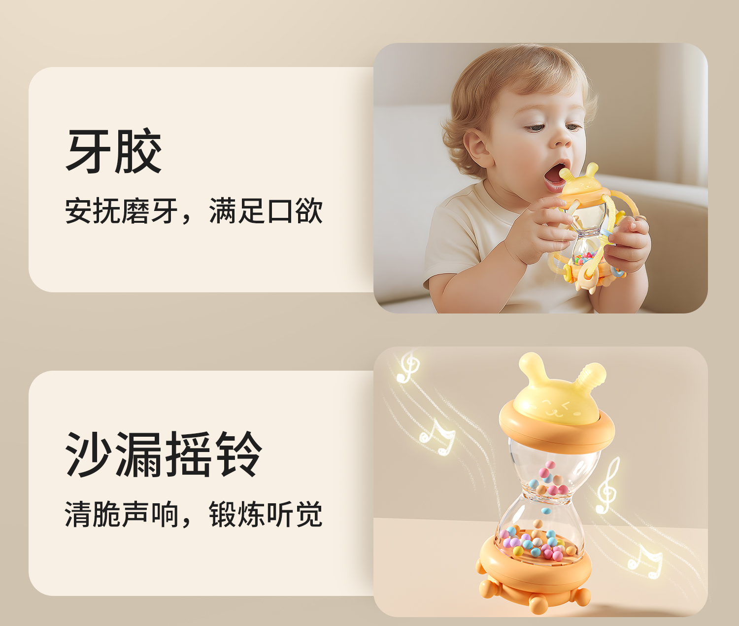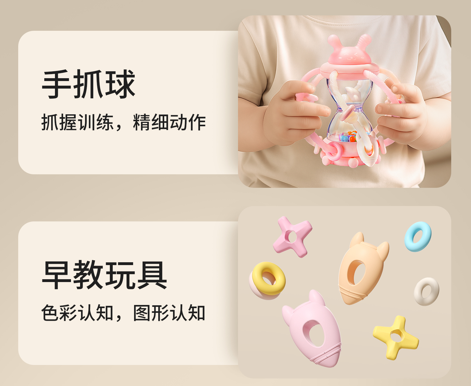 科巢沙漏曼哈顿手抓球婴儿玩具0到1岁牙胶一6个月3以上宝宝手摇铃