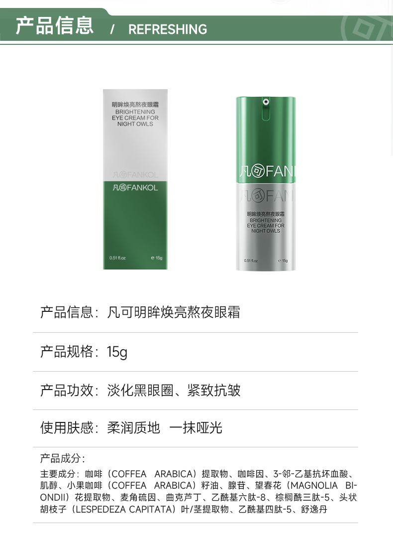 【社群专属】凡可咖啡因熬夜眼霜15g淡化细纹黑眼圈浮肿冰美式