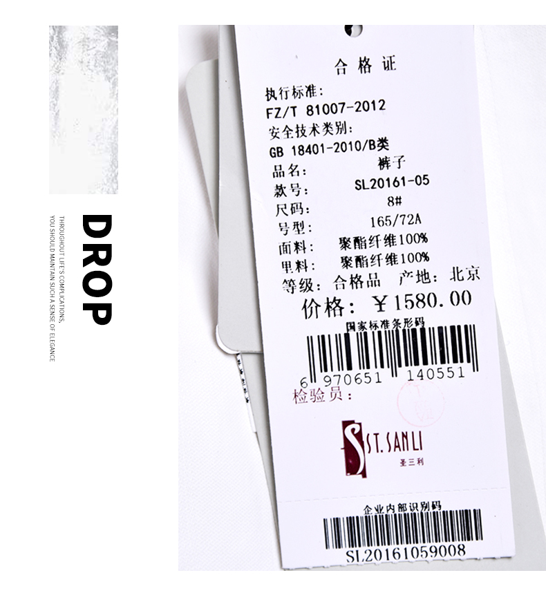 圣三利女装 新款时尚百搭纯色小脚休闲九分女裤SL2016105