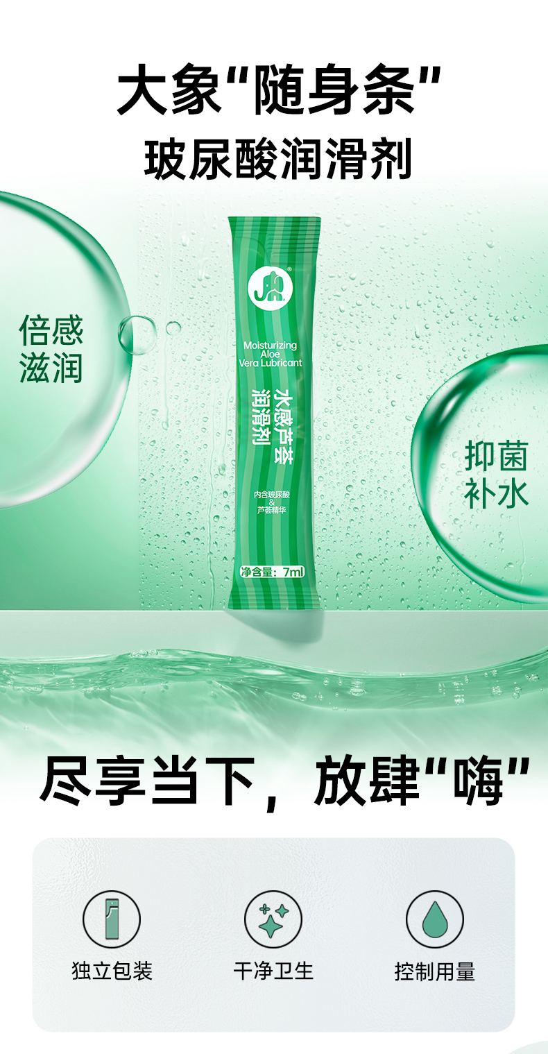 【双旦狂欢·钜惠来袭】大象润滑液 玻尿酸芦荟成本 水溶性润滑(条装)