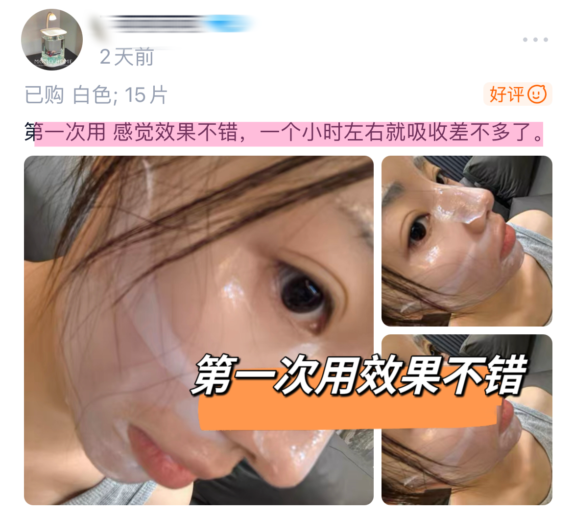 敷30-40min!会变成透明状~感觉胶原蛋白都被皮肤吃掉了!敷完脸蛋子水润嘭弹!