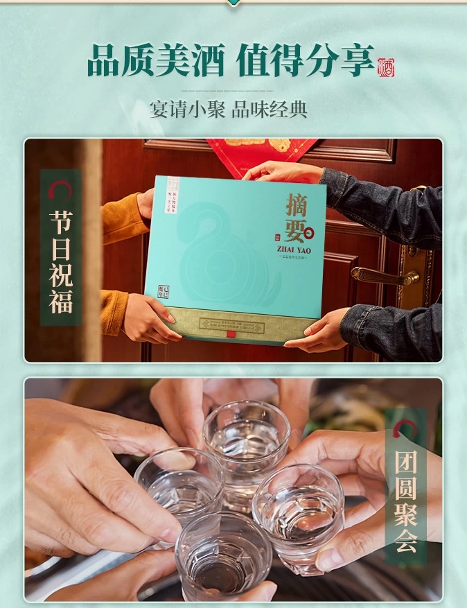 【摘要喜庆 酒厂直发】53度摘要酒(喜庆版)520ml1*4 酱香型白酒 高端礼盒 520ml*4 整箱装 宴请喜宴高端用酒