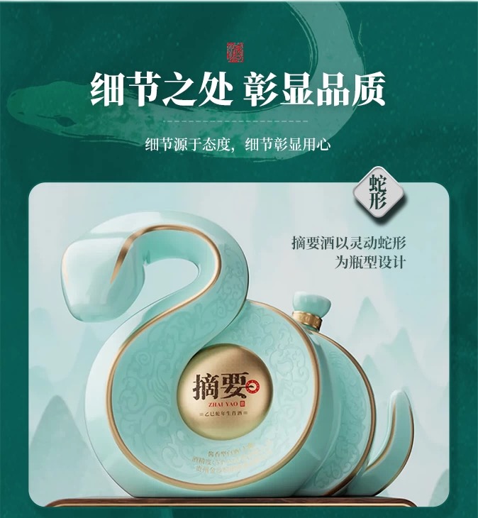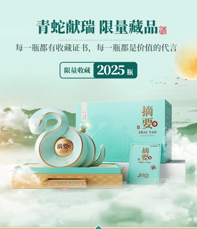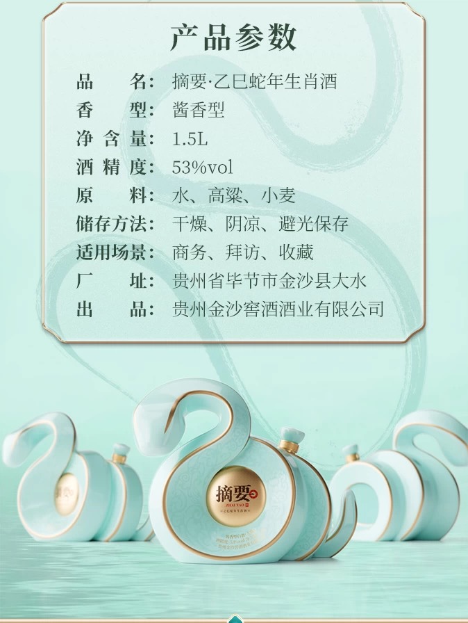 【酒厂自营】摘要酒53度酱香型白酒乙巳蛇年生肖酒1500ml大分量礼盒金沙回沙酒
