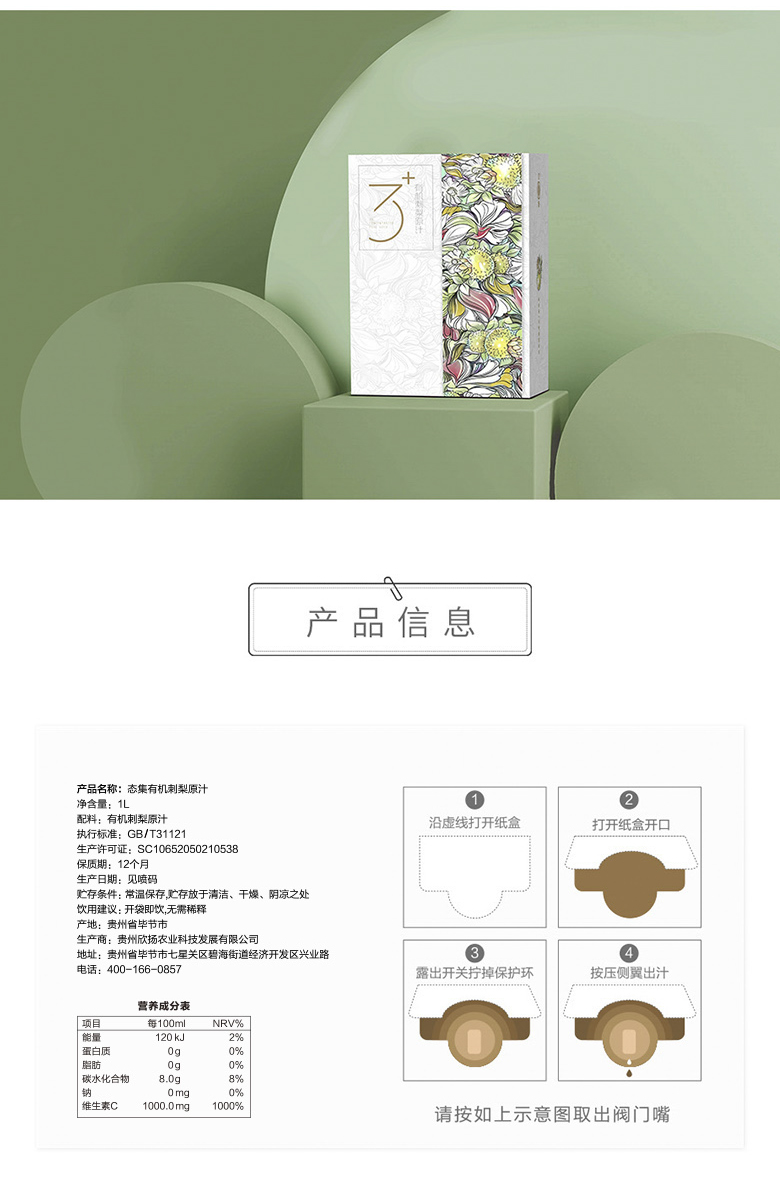 【贵州毕节特产】态集3+刺梨有机原汁贵州毕节刺梨原液原浆纯鲜榨果汁高VC家庭装1L