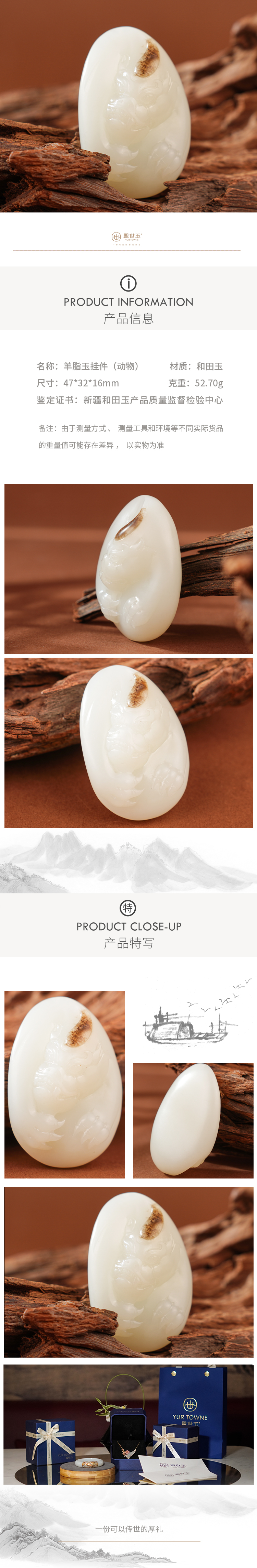 新疆国玉盟世玉【瑞兽潜璧】和田玉挂件白玉牌【带证书·顺丰物流】{新}