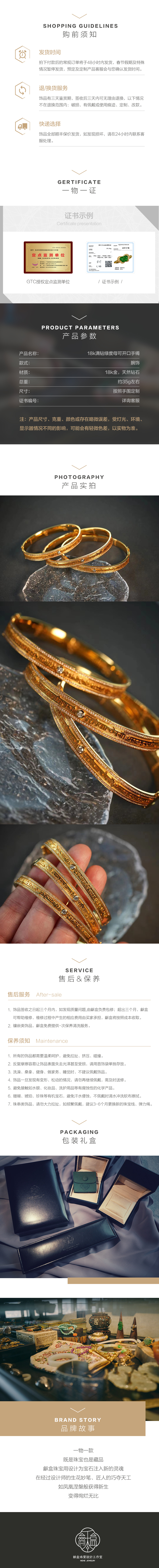 龢盒原创 18k金镶钻绿度母心咒护佑手镯
