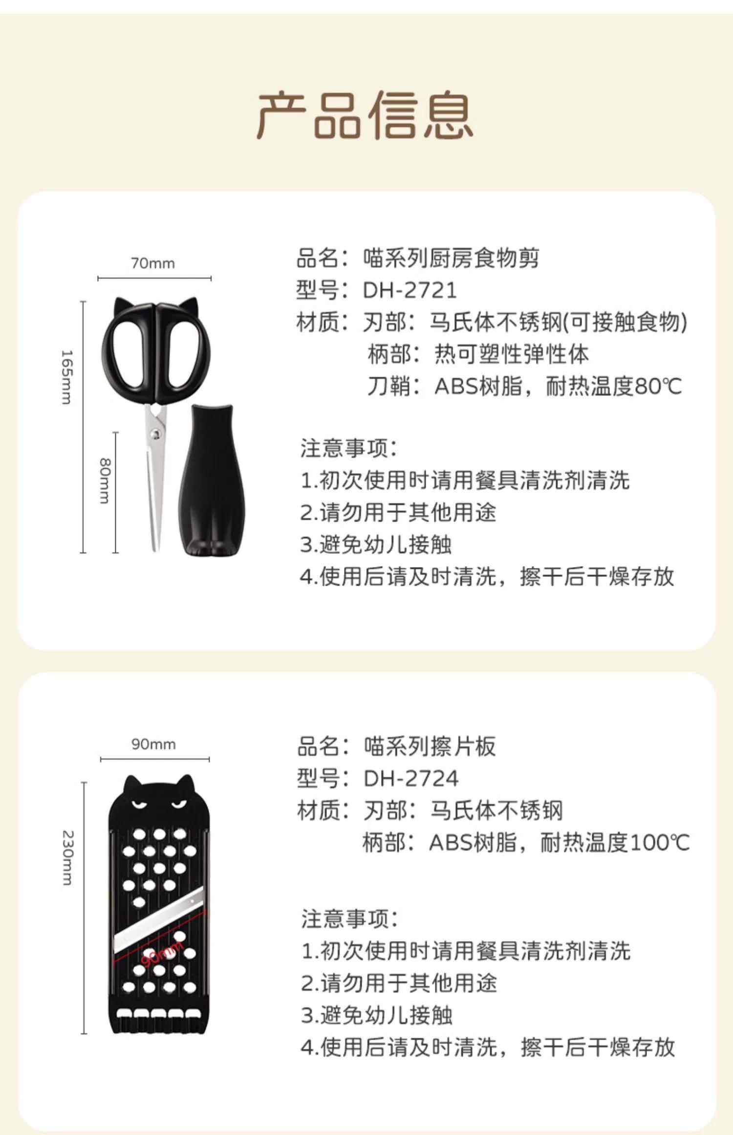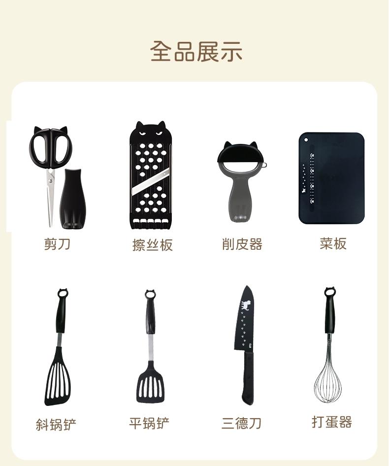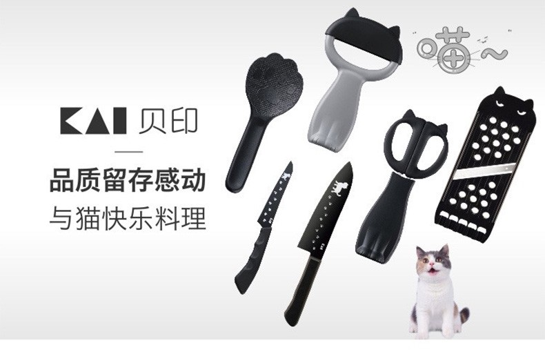 贝印KAI日本进口喵系列翻铲擦丝板水果刀厨房家用打蛋器汤勺铲子【不支持补差,非质量问题不退不换】S