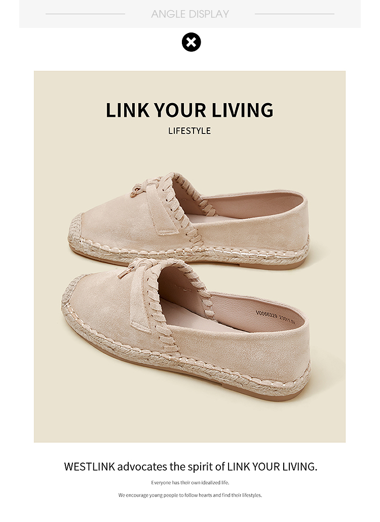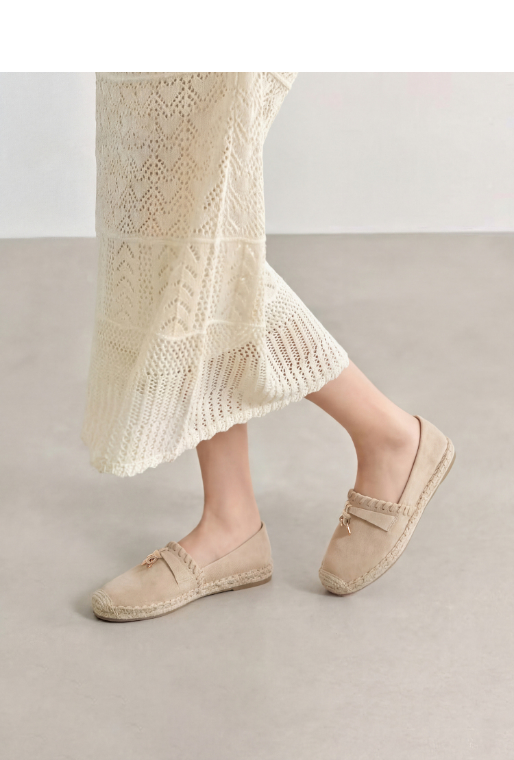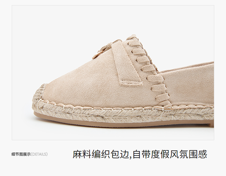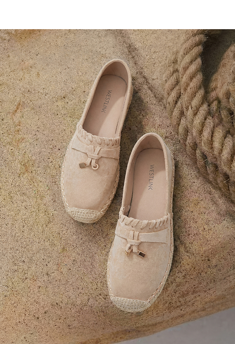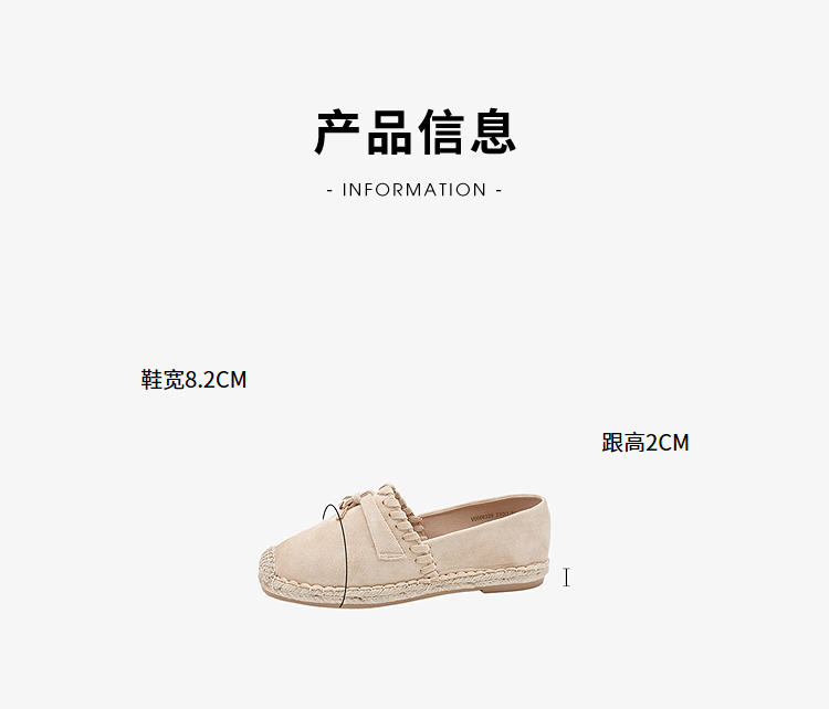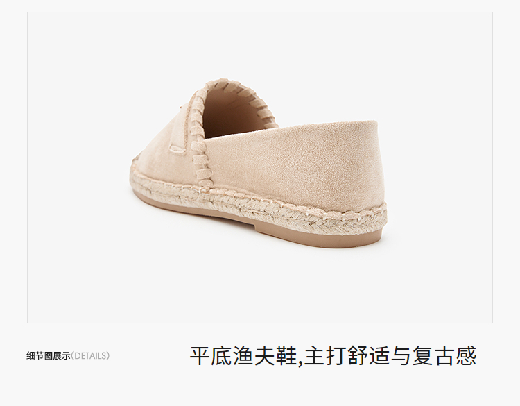 西遇草编渔夫鞋女2026早春季新款平底浅口一脚蹬软底休闲漂亮单鞋V0066329