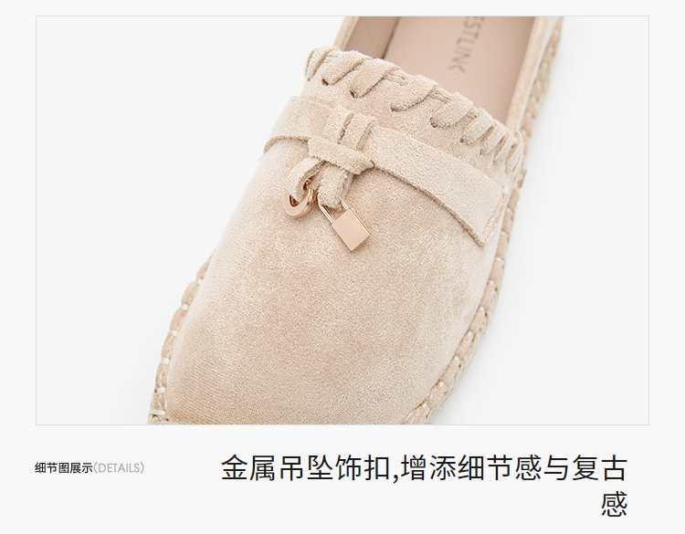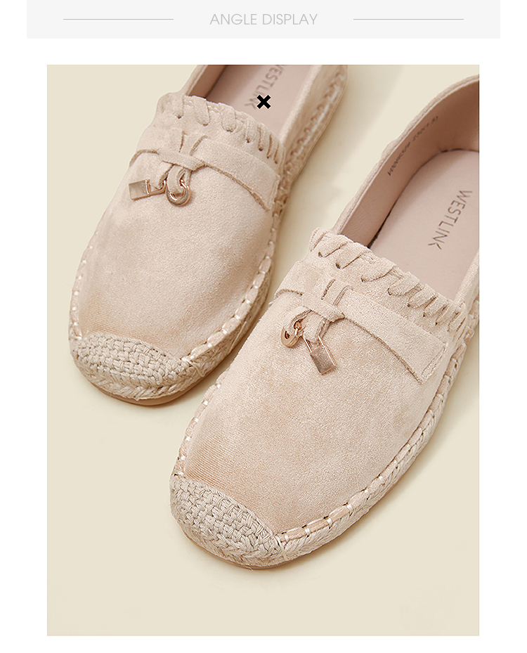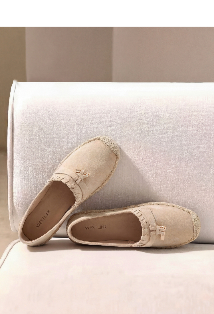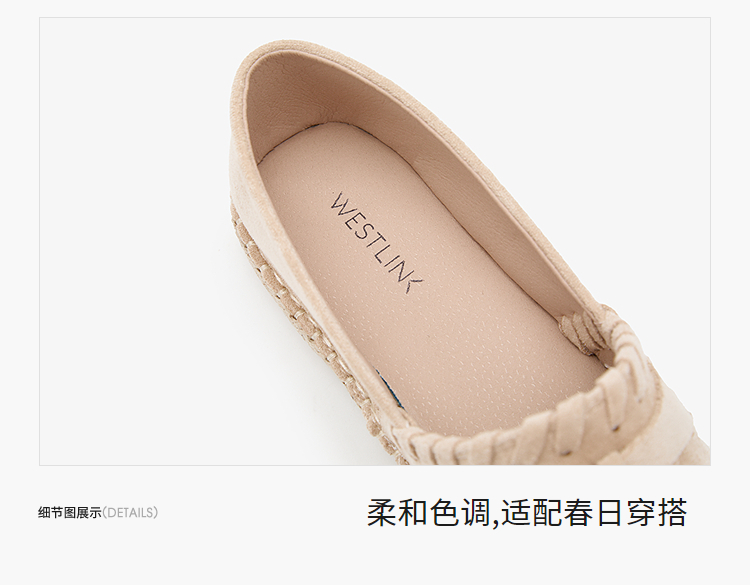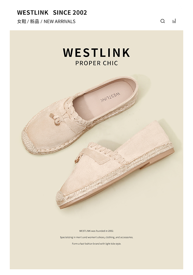 西遇草编渔夫鞋女2026早春季新款平底浅口一脚蹬软底休闲漂亮单鞋V0066329