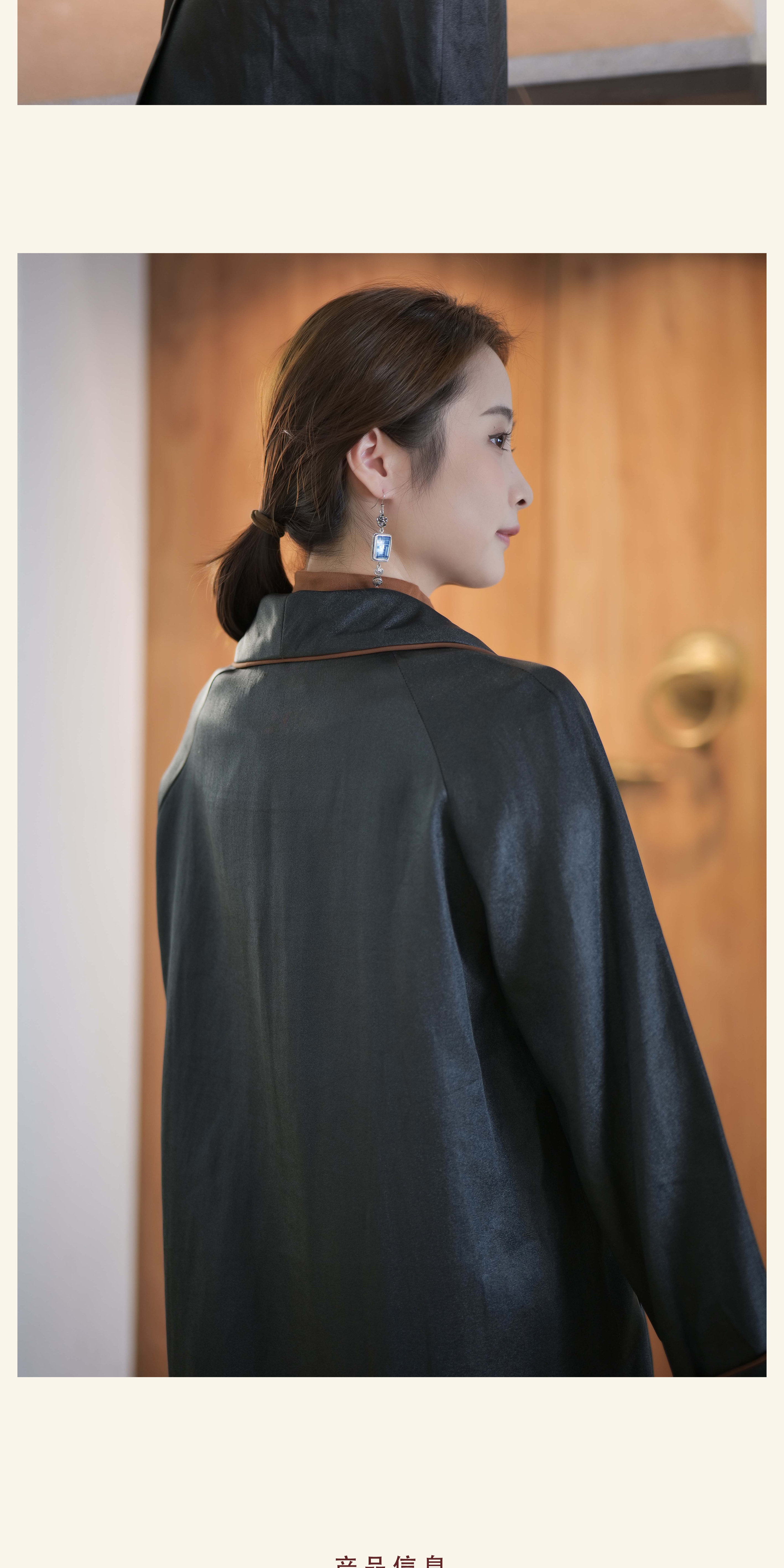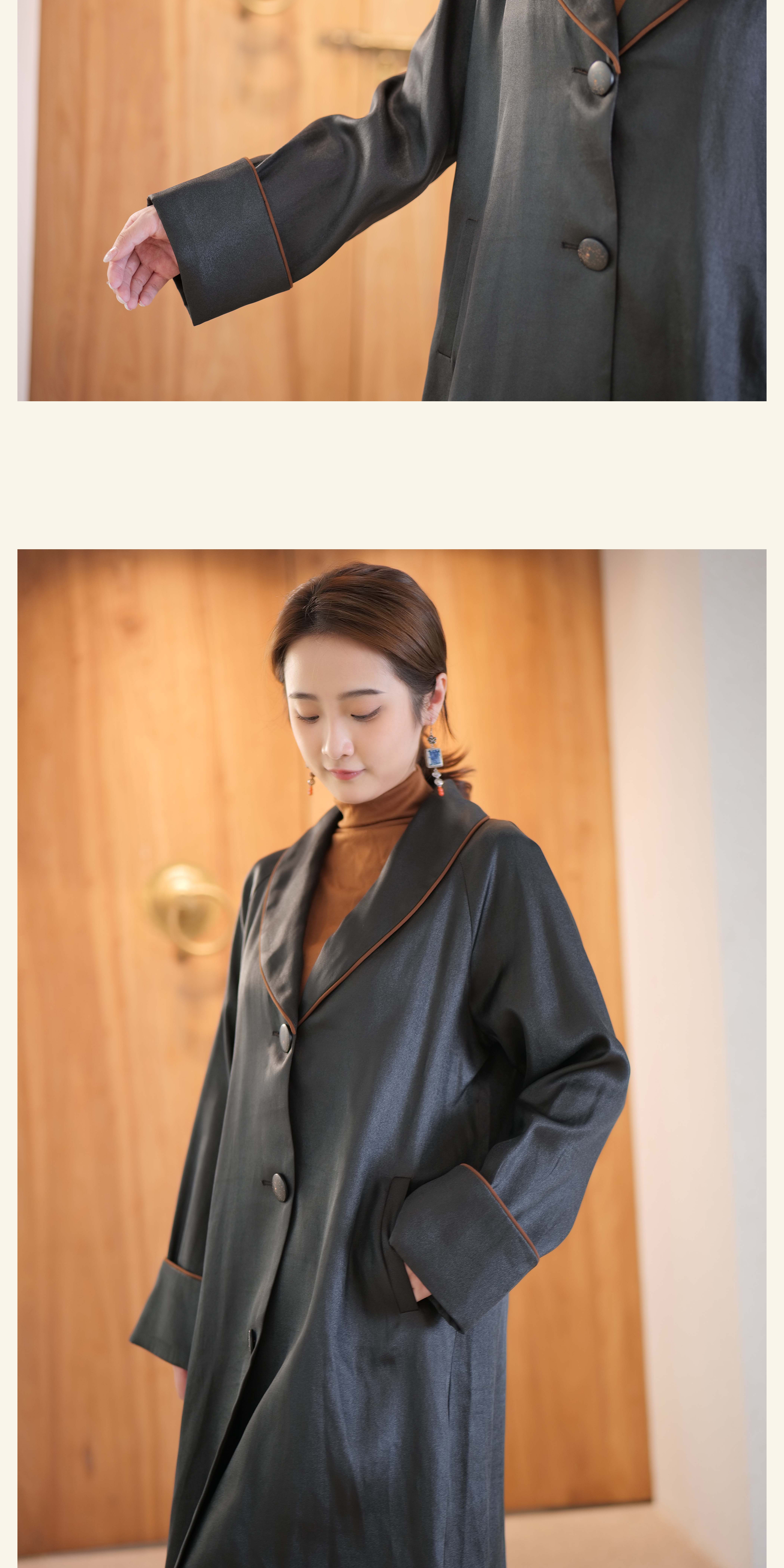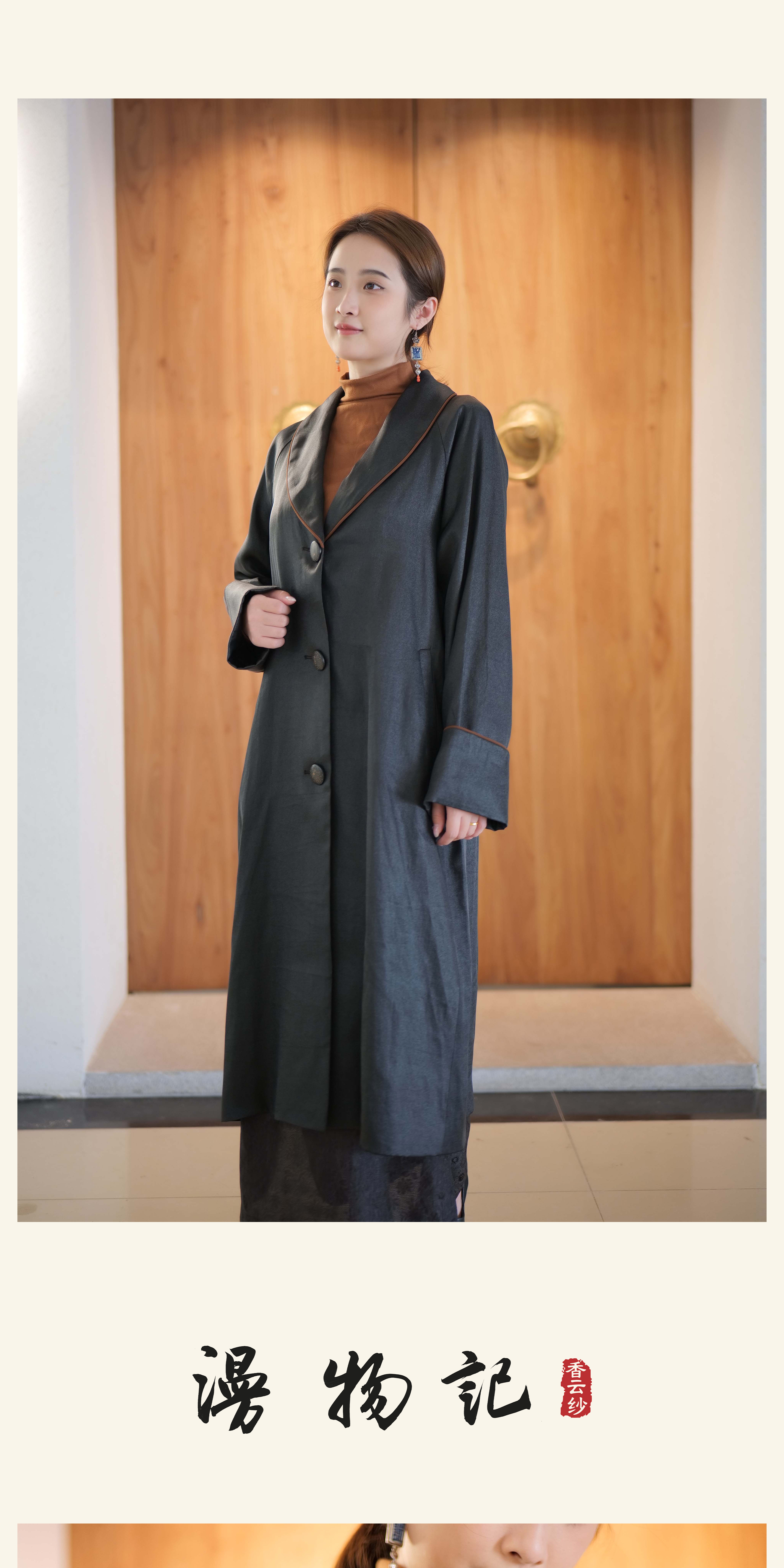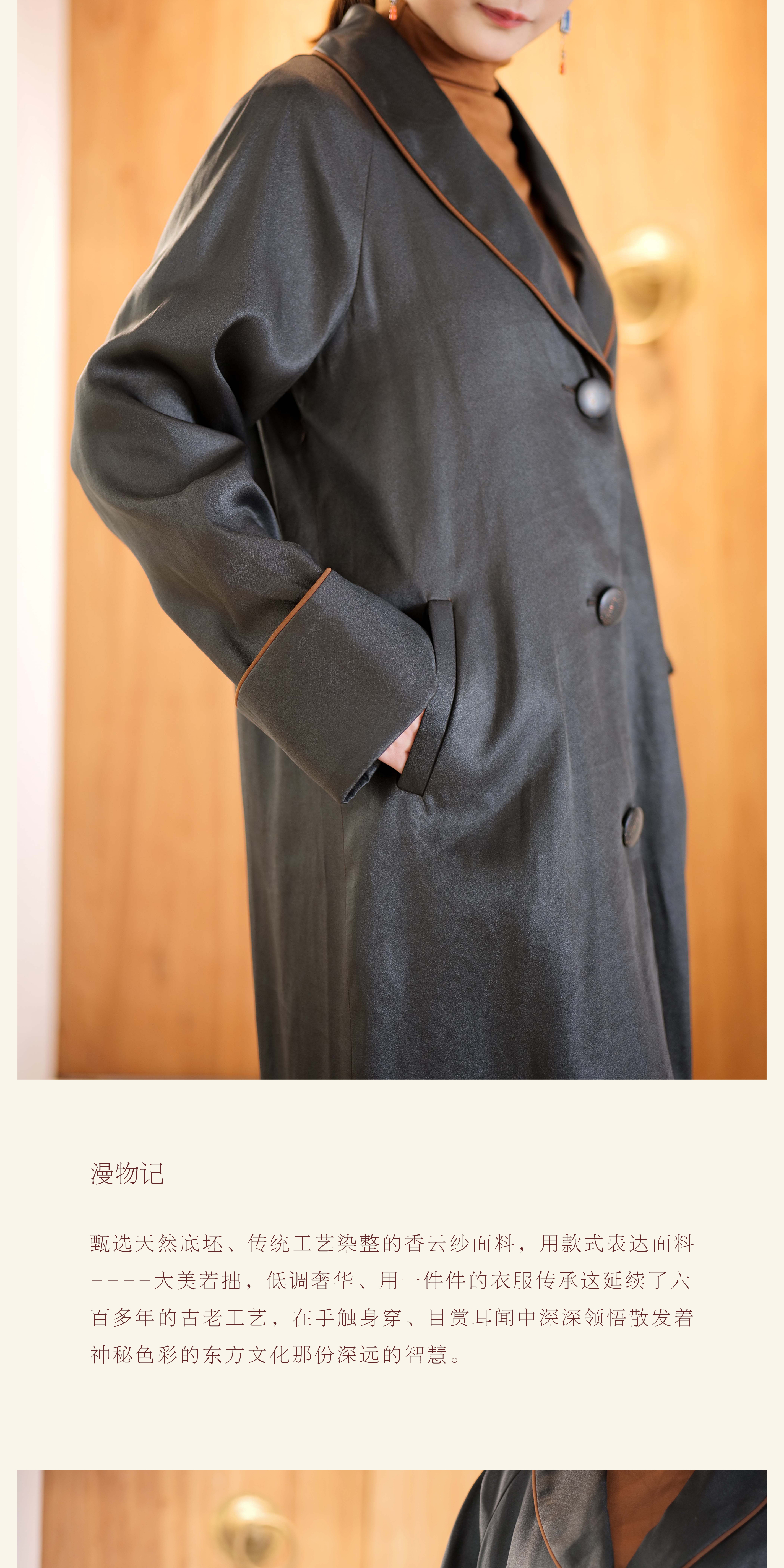 漫物记重磅香云纱滚边翻领大衣XYS-113