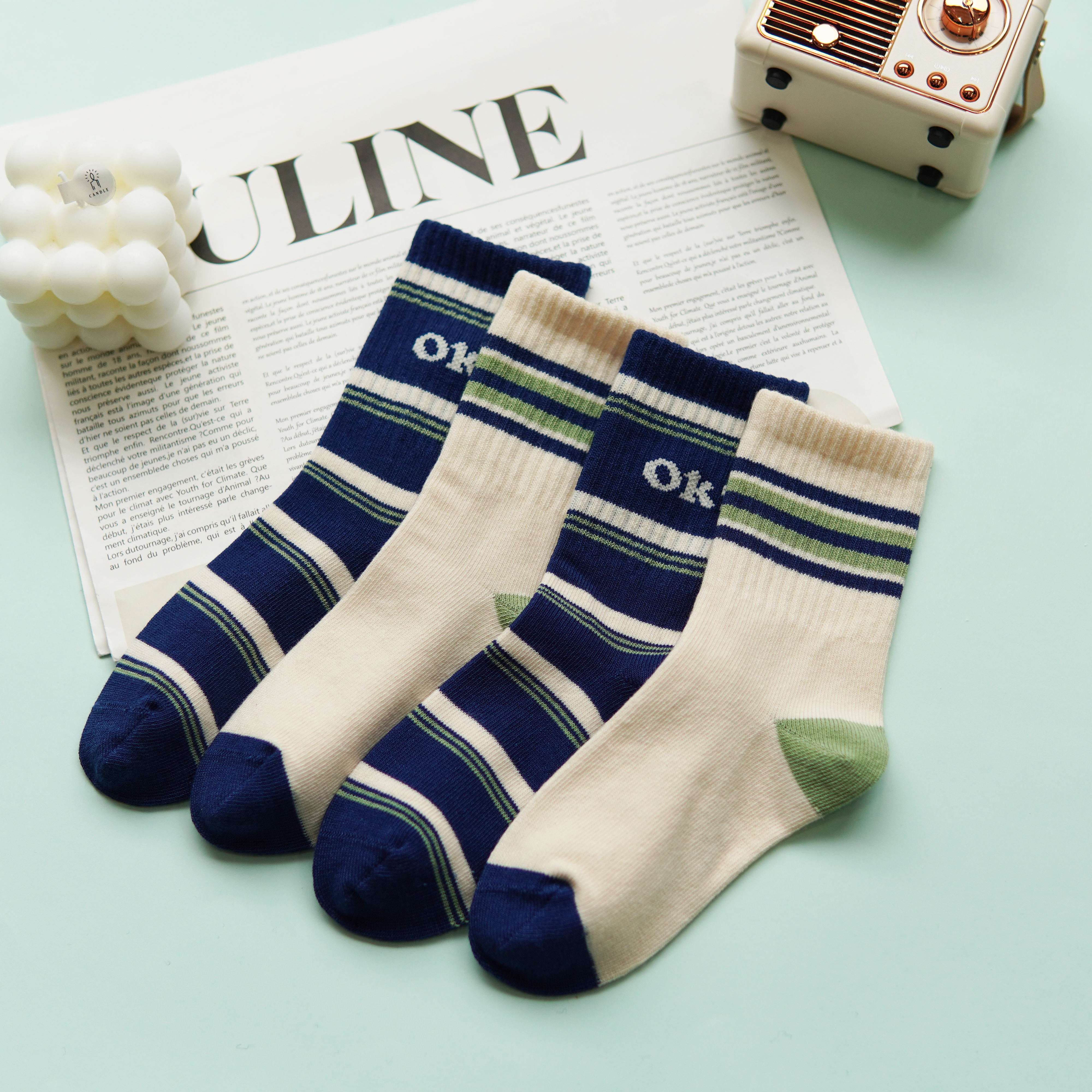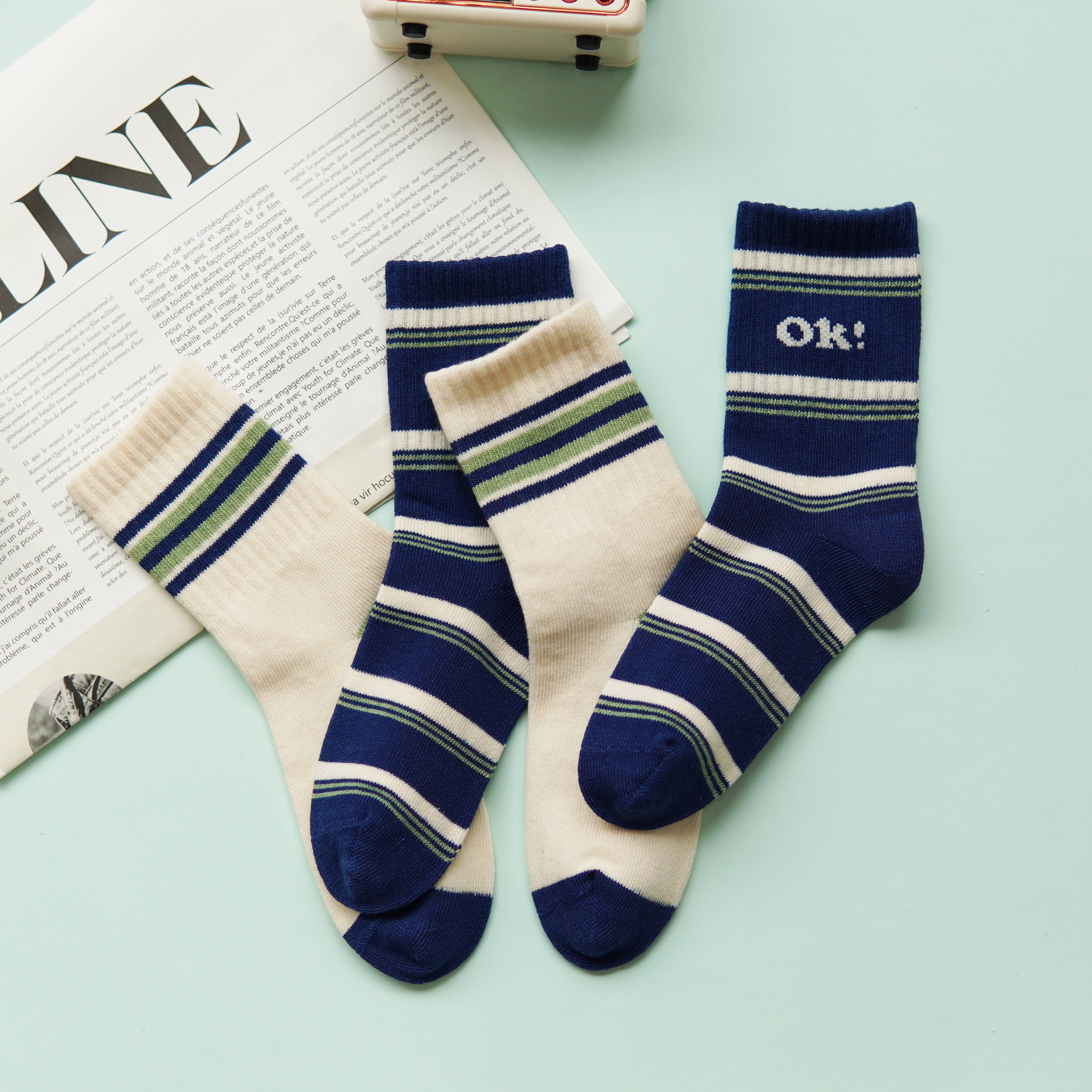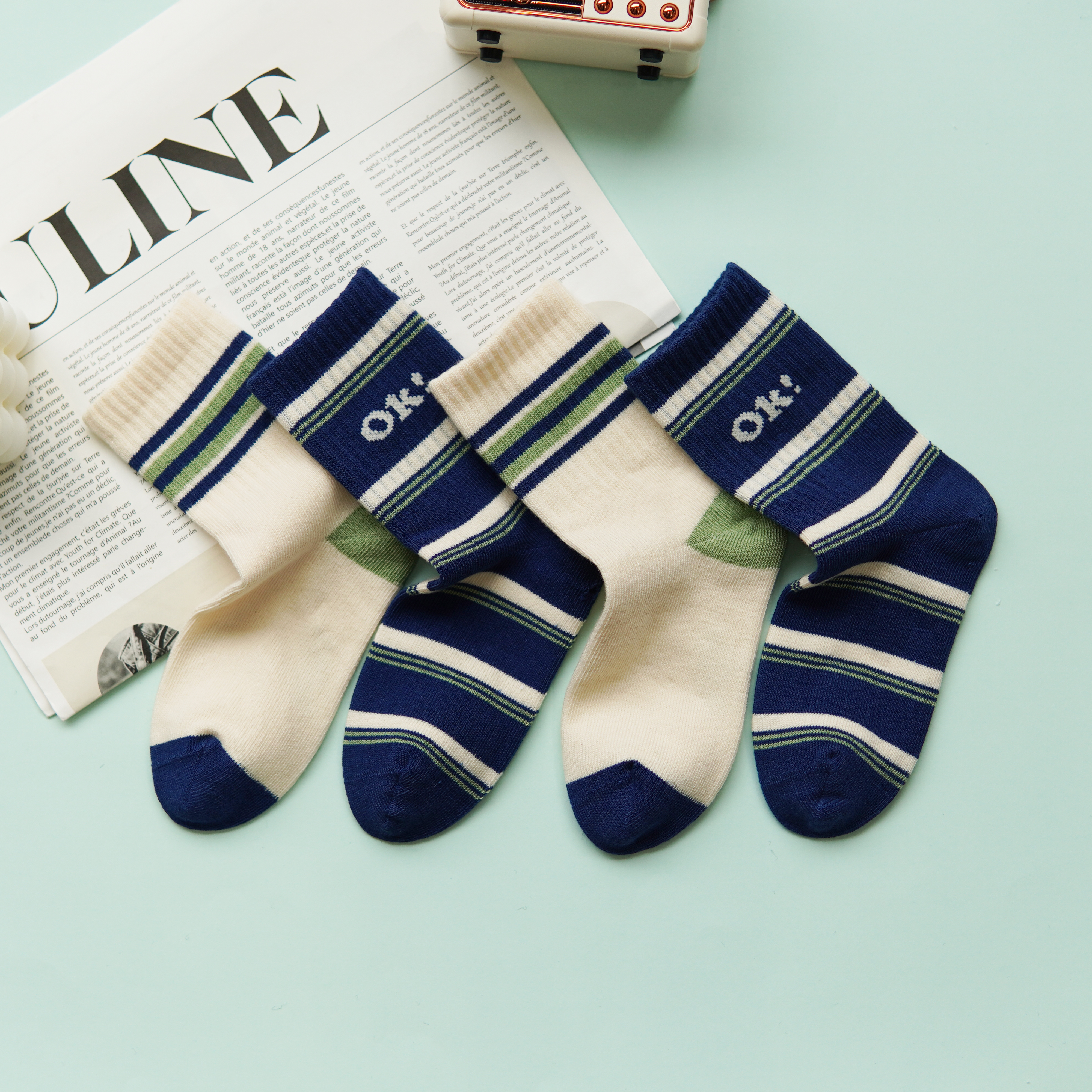 【2双装】【5-7岁】儿童四季棉袜中长筒AB棉袜中童条纹袜子【6双6折 2523205】