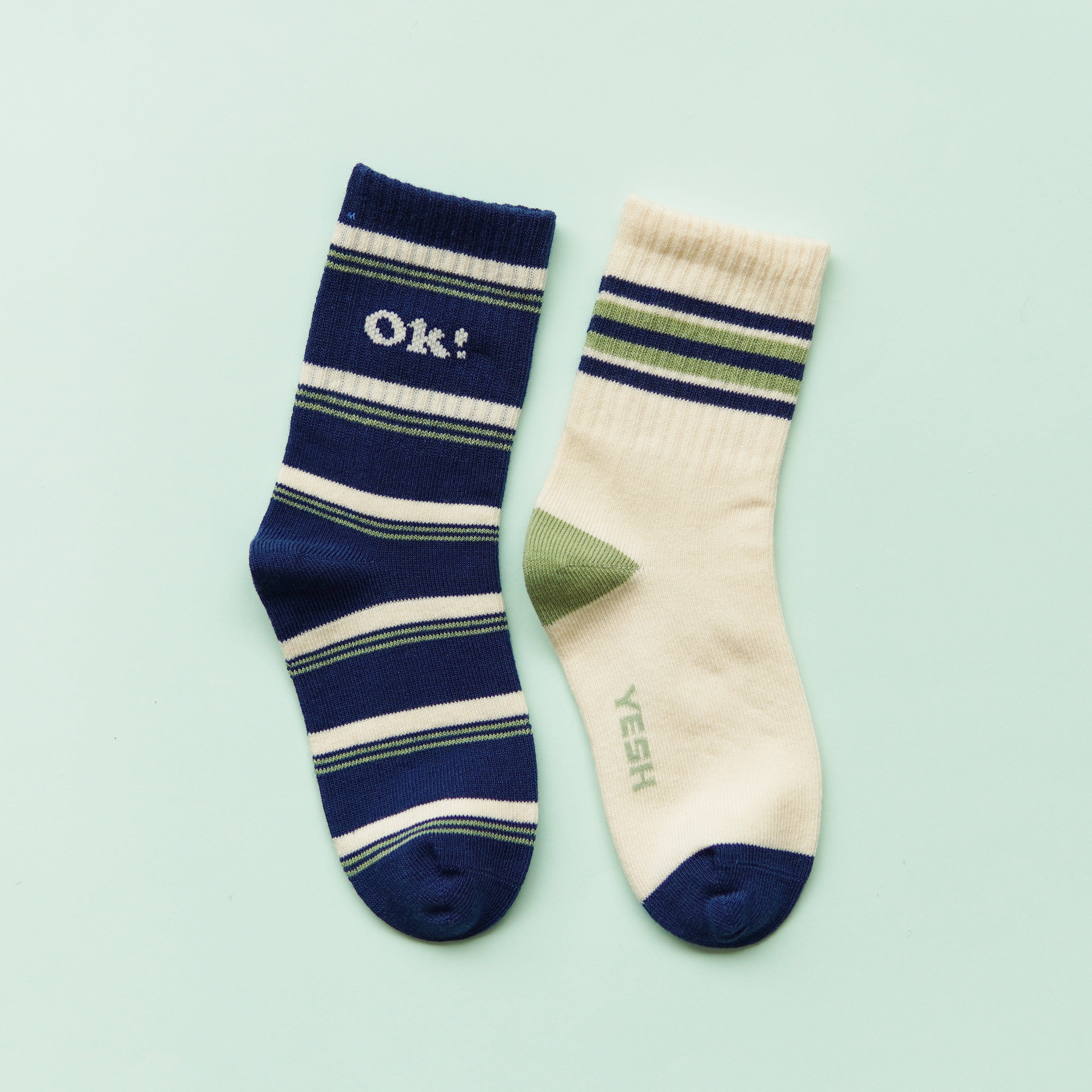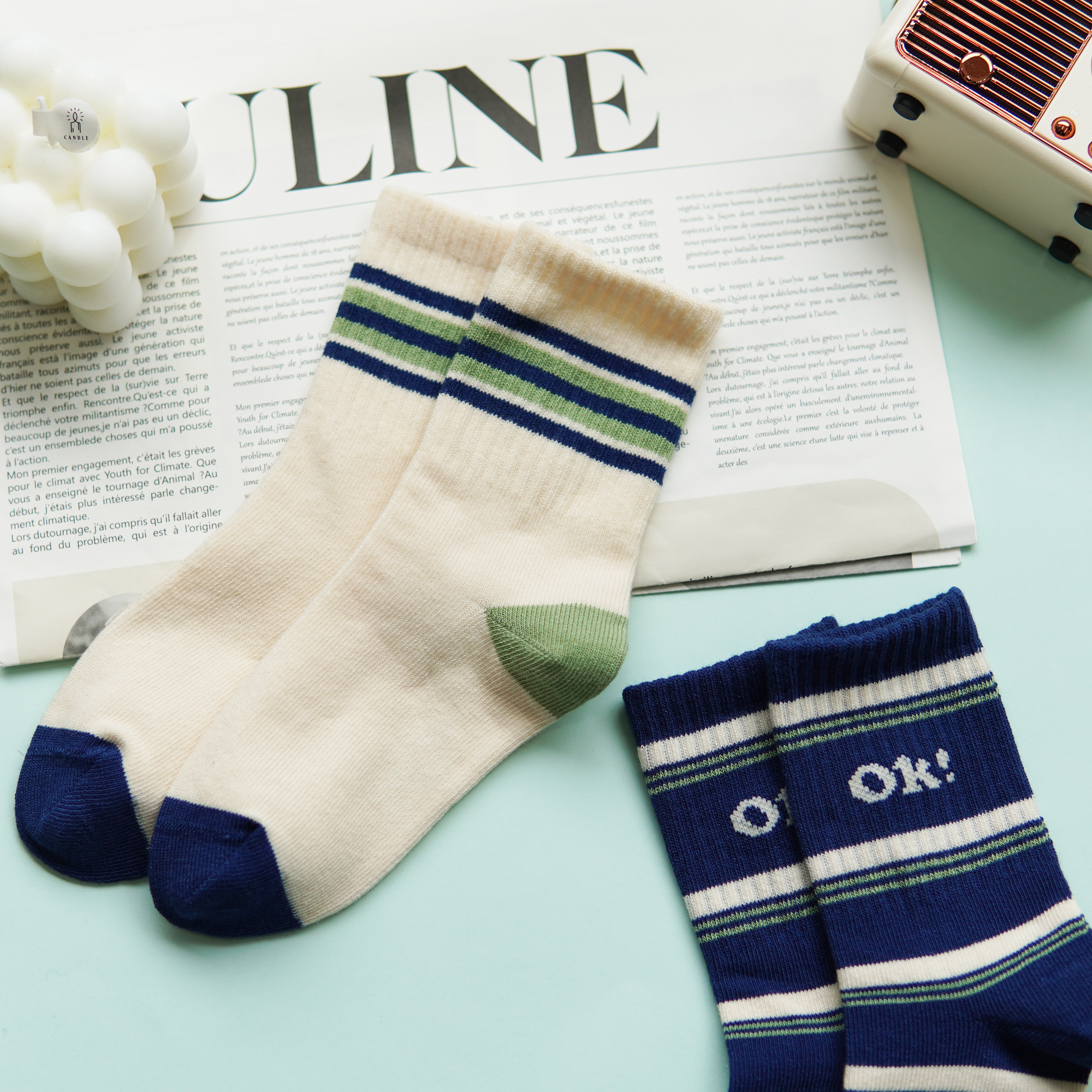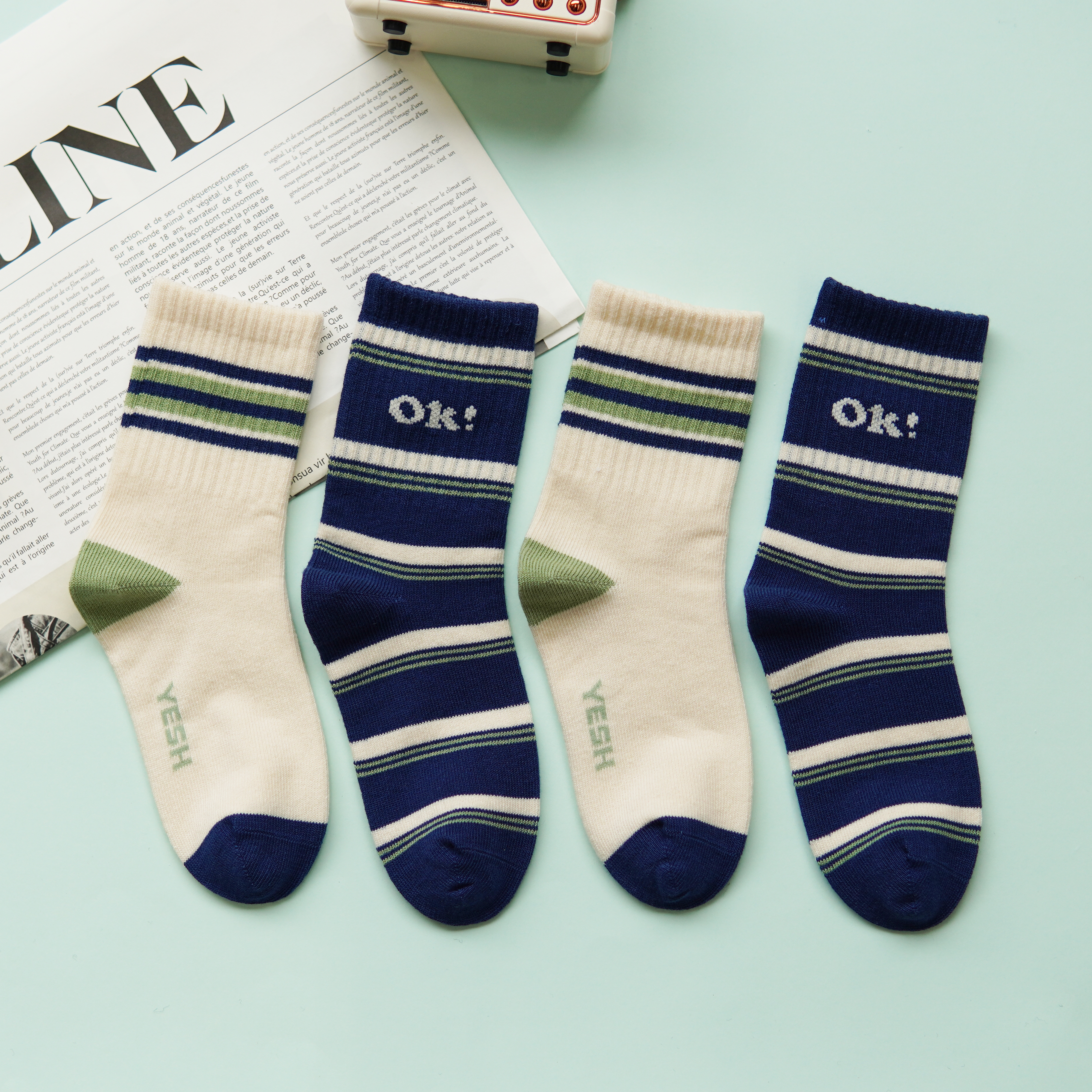 【2双装】【5-7岁】儿童四季棉袜中长筒AB棉袜中童条纹袜子【6双6折 2523205】