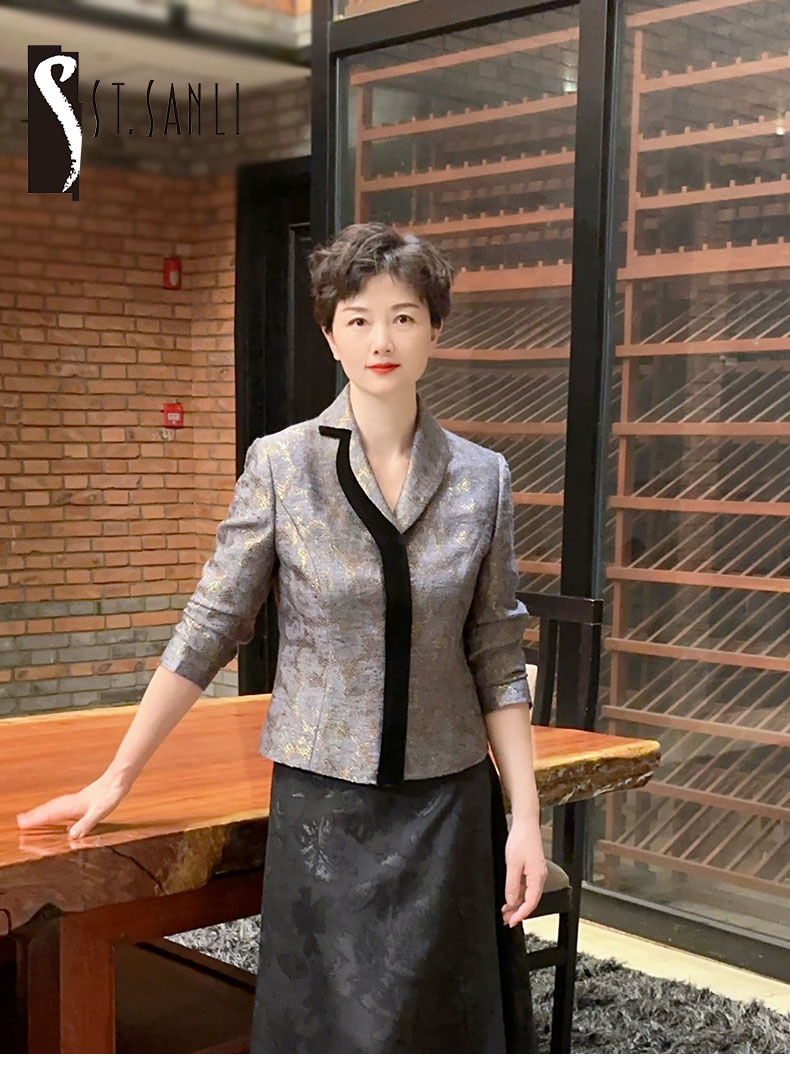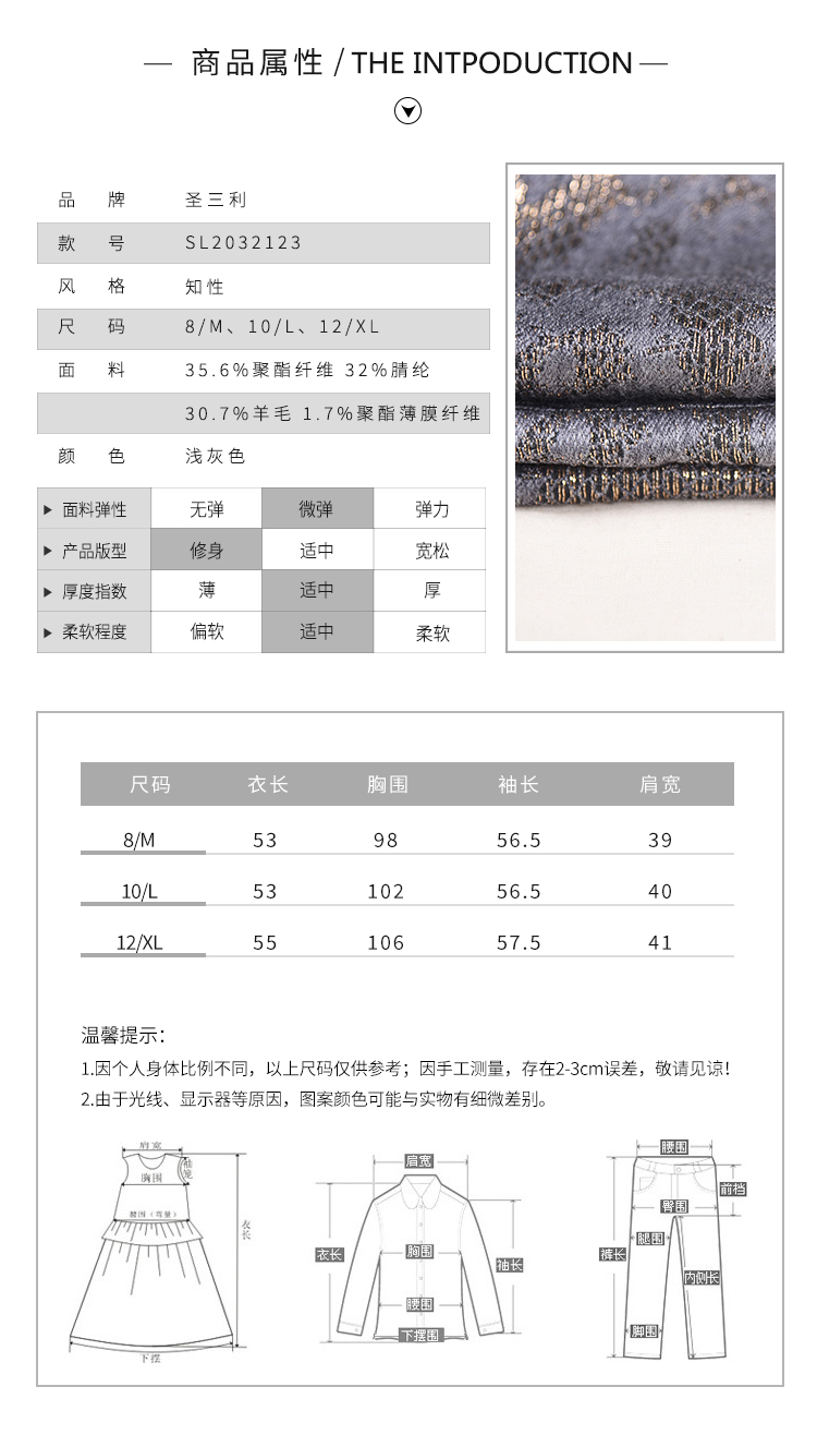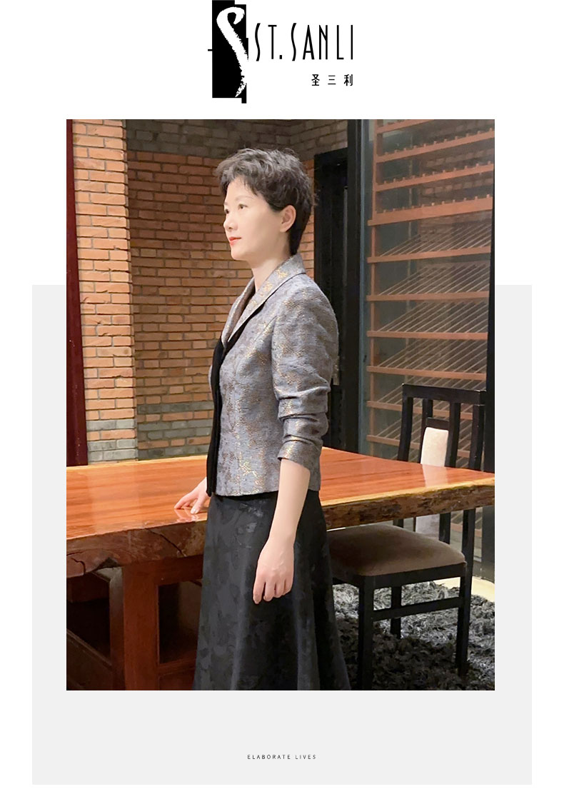 圣三利女装 新款星光金丝羊毛提花短款外套上衣SL2032123