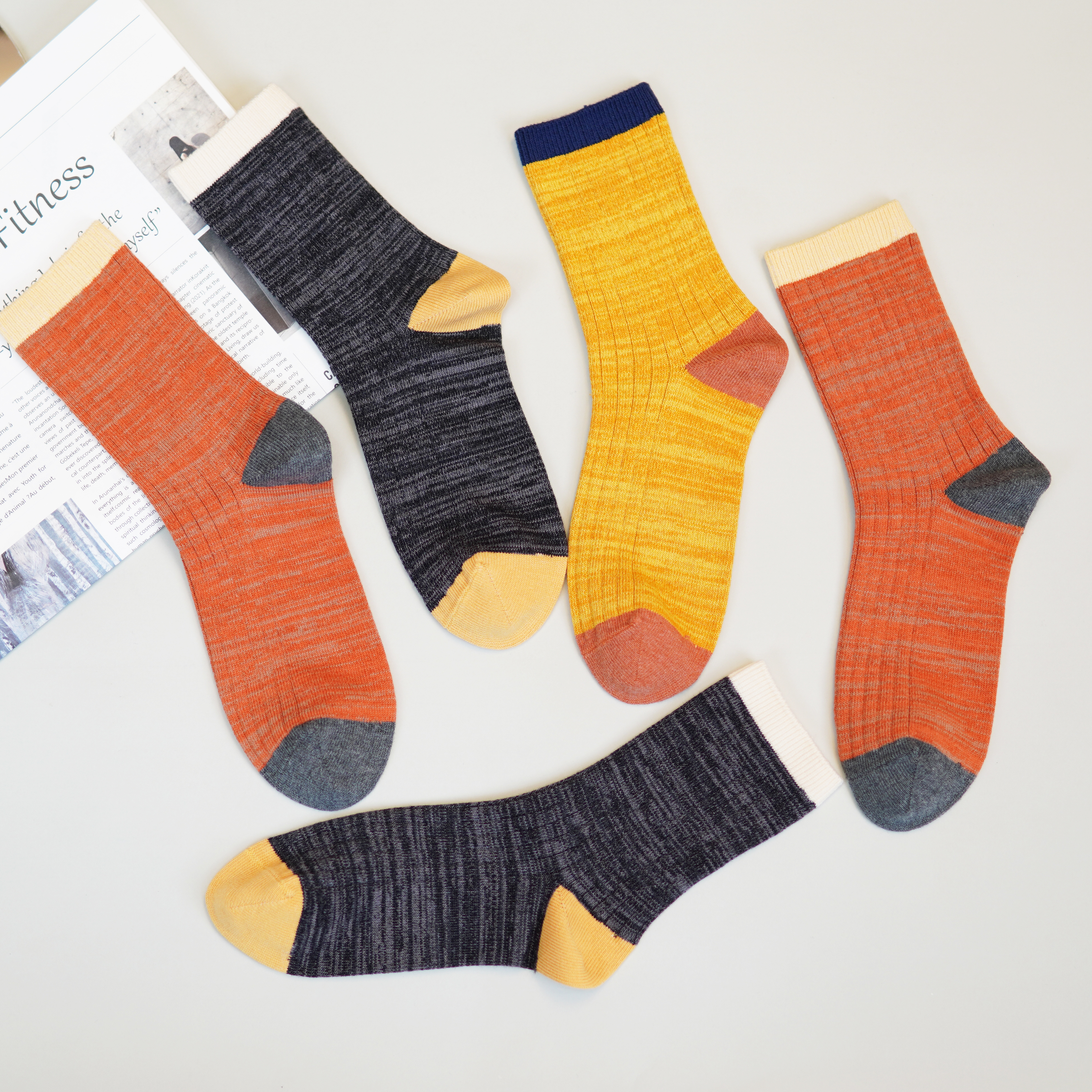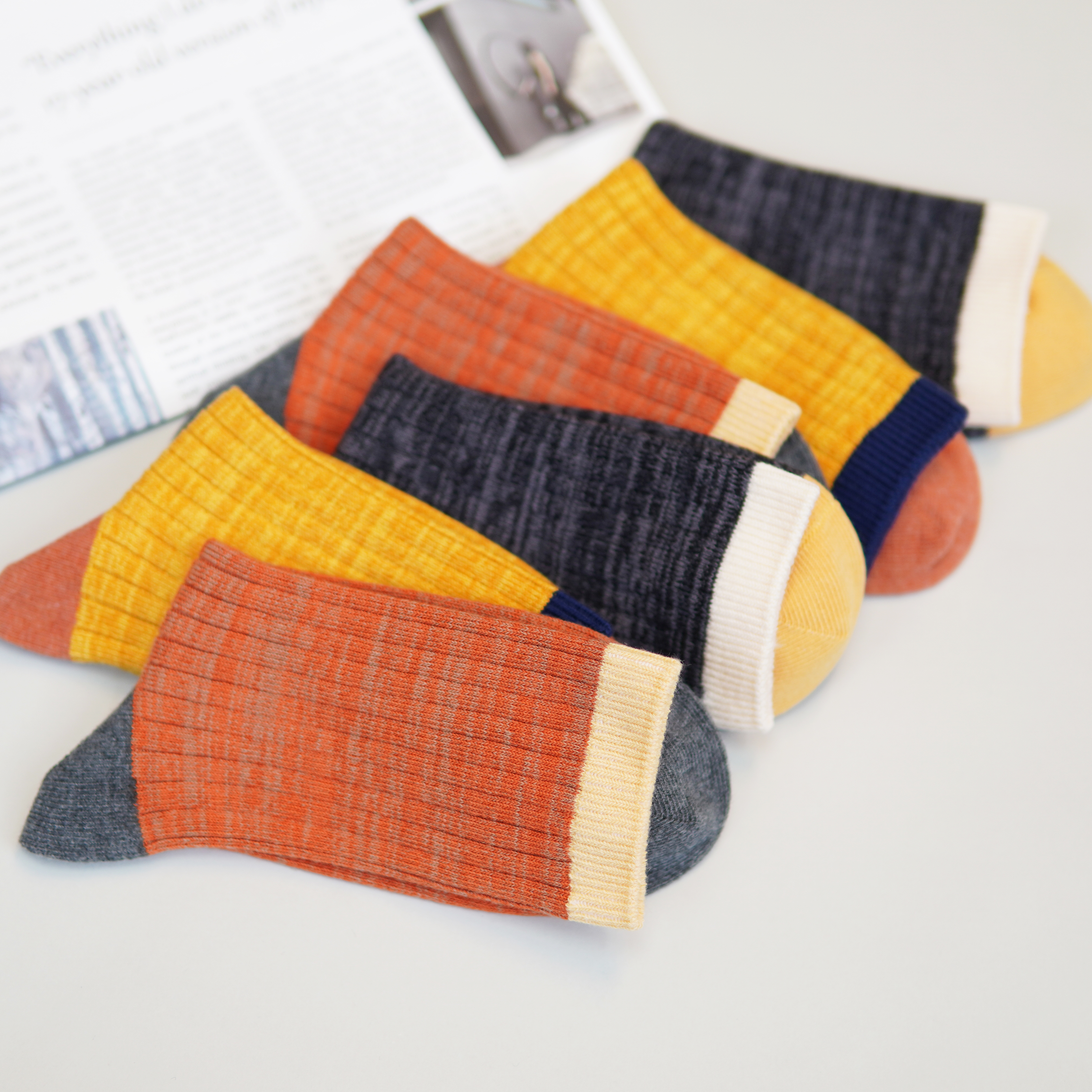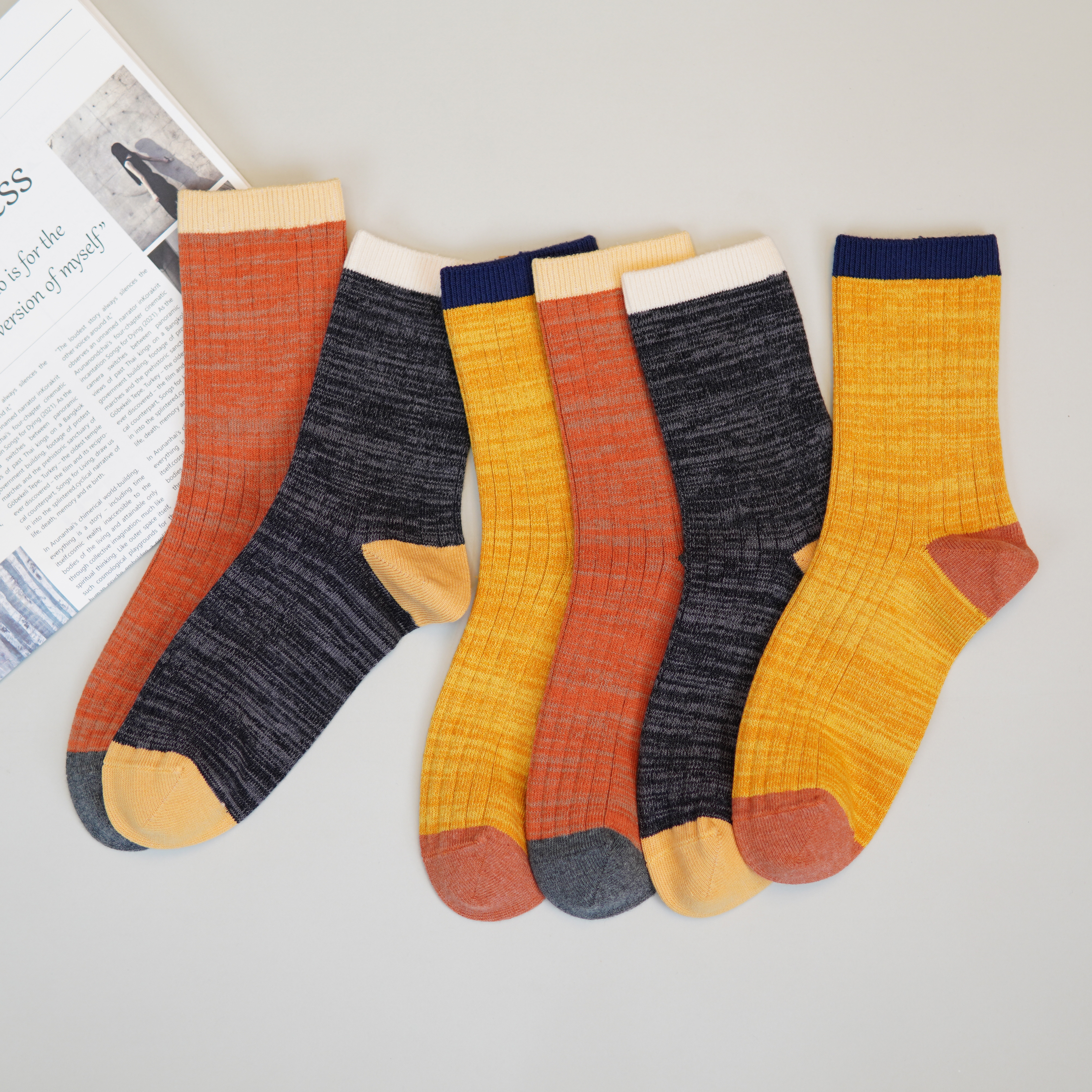 女【6双6折 2双装】丨四季袜子女舒适双针中筒袜棉袜子透气吸汗拼色女袜【2422215】