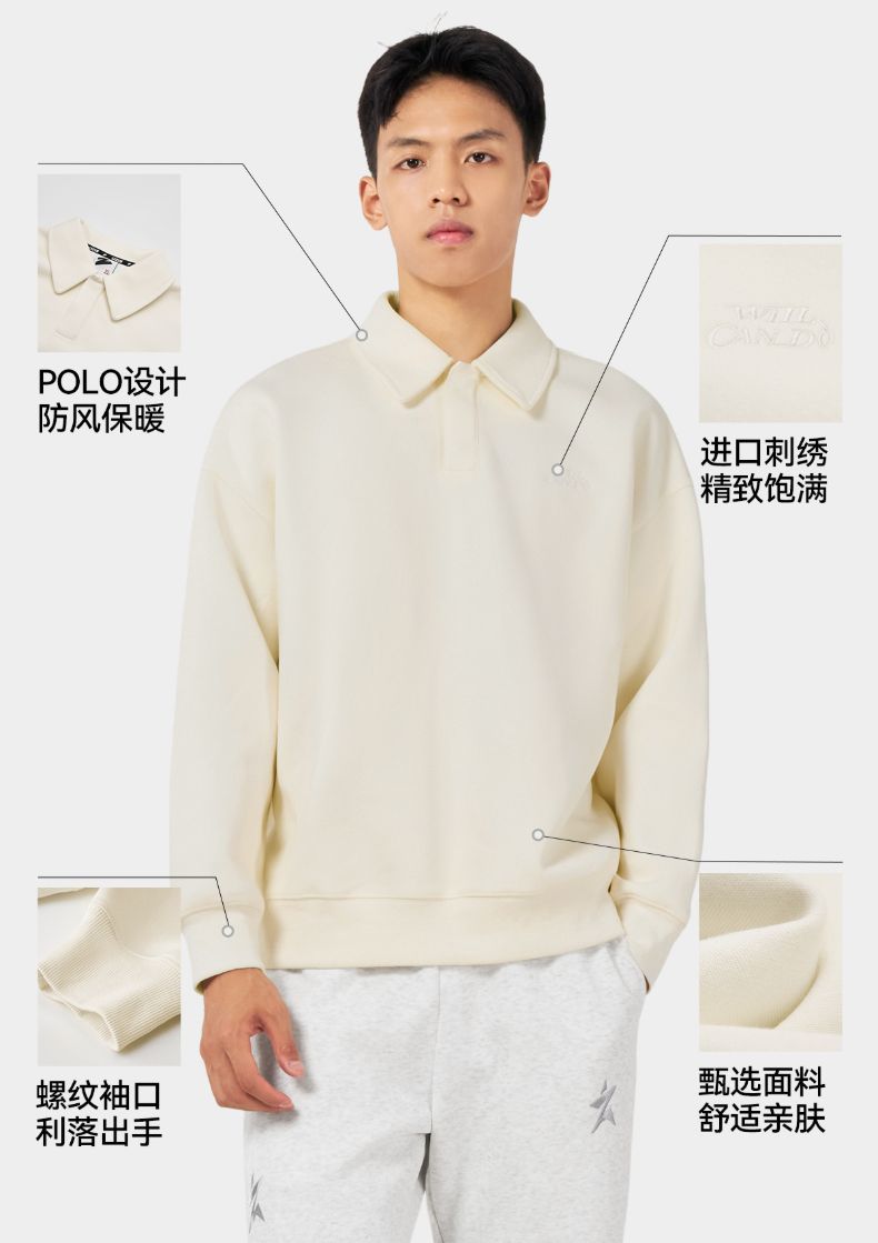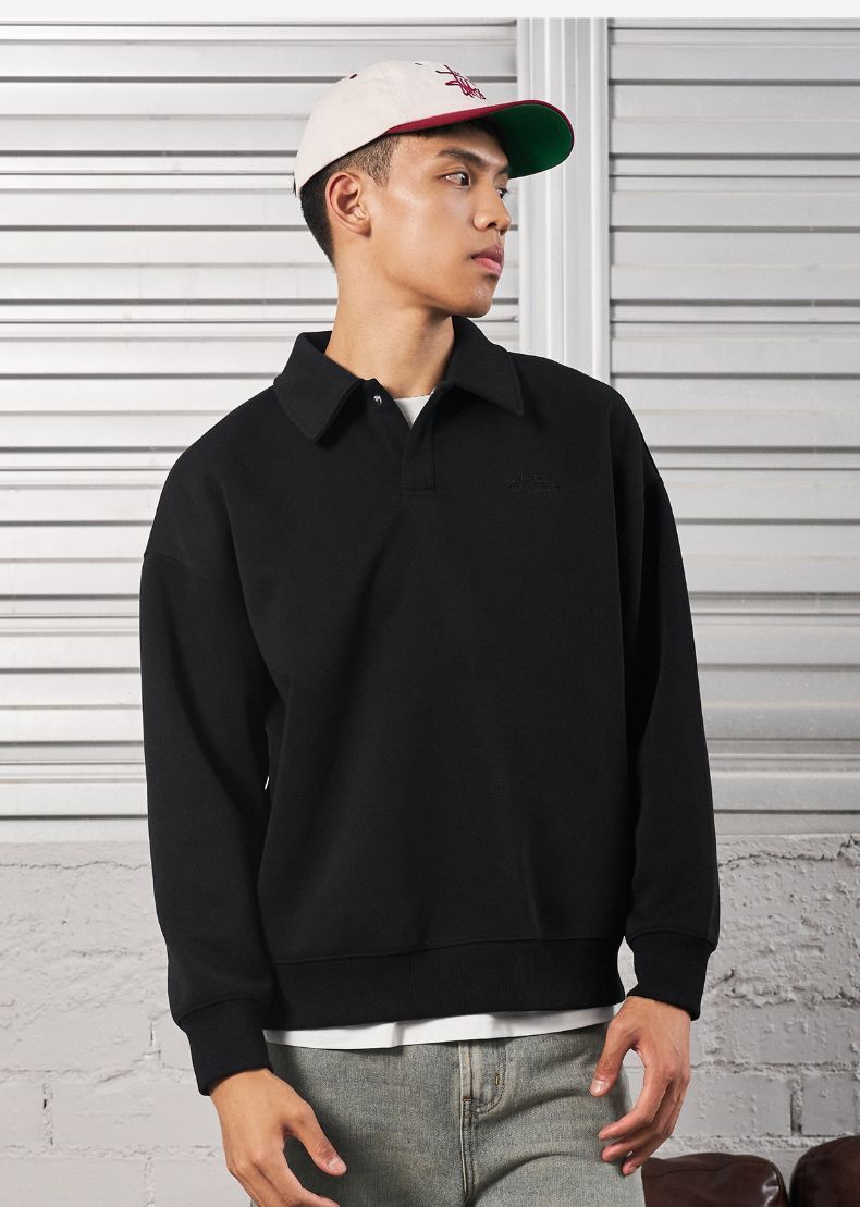 有志者UZIS美式运动卫衣男秋季休闲宽松篮球跑步POLO领上衣云游