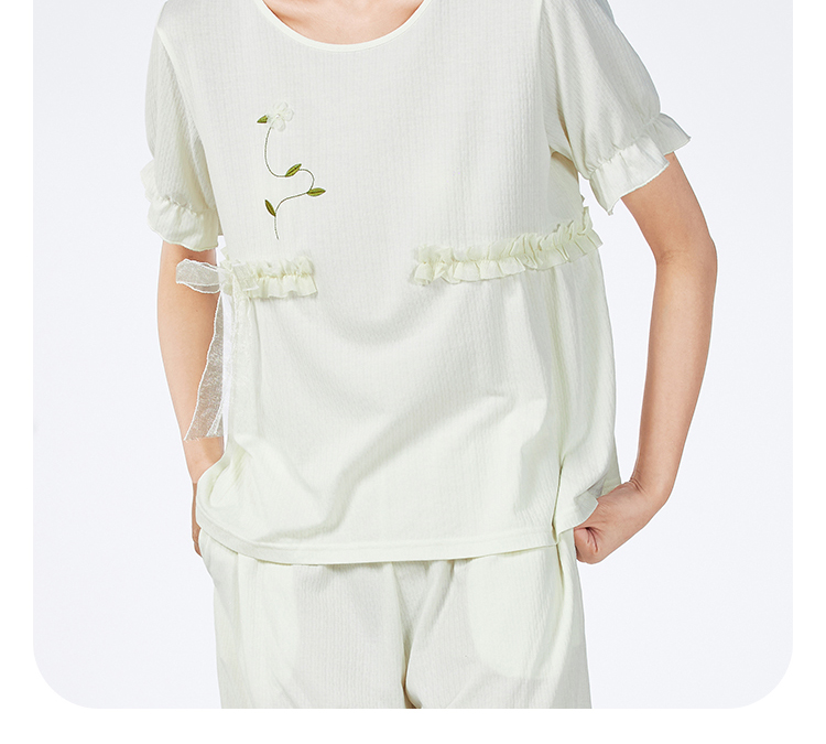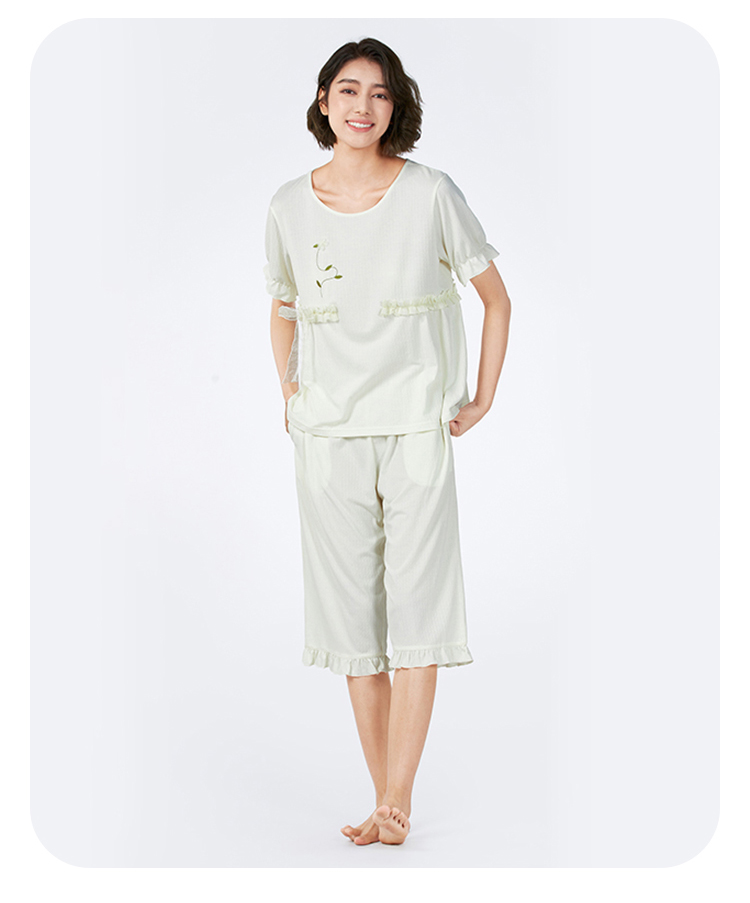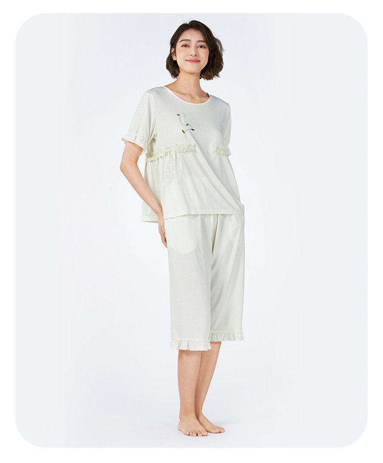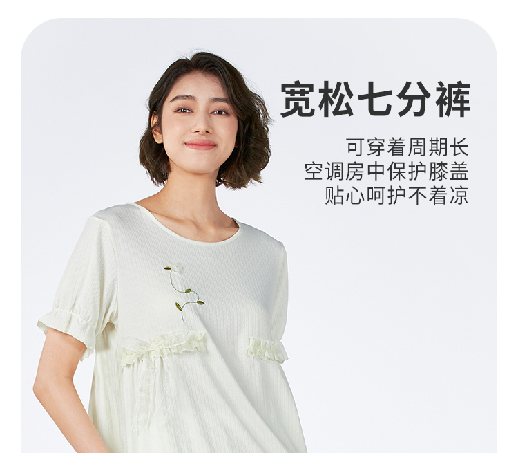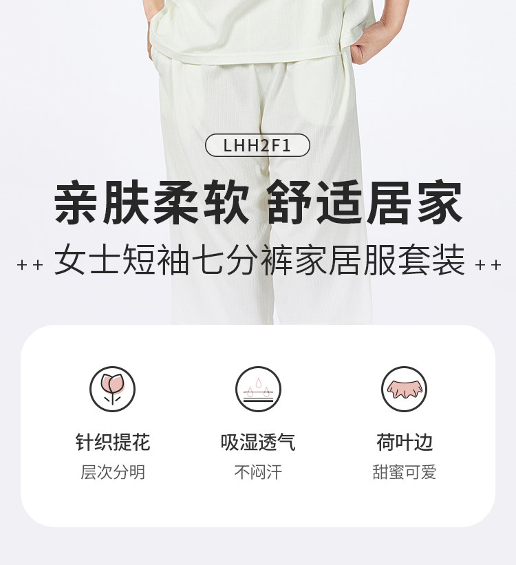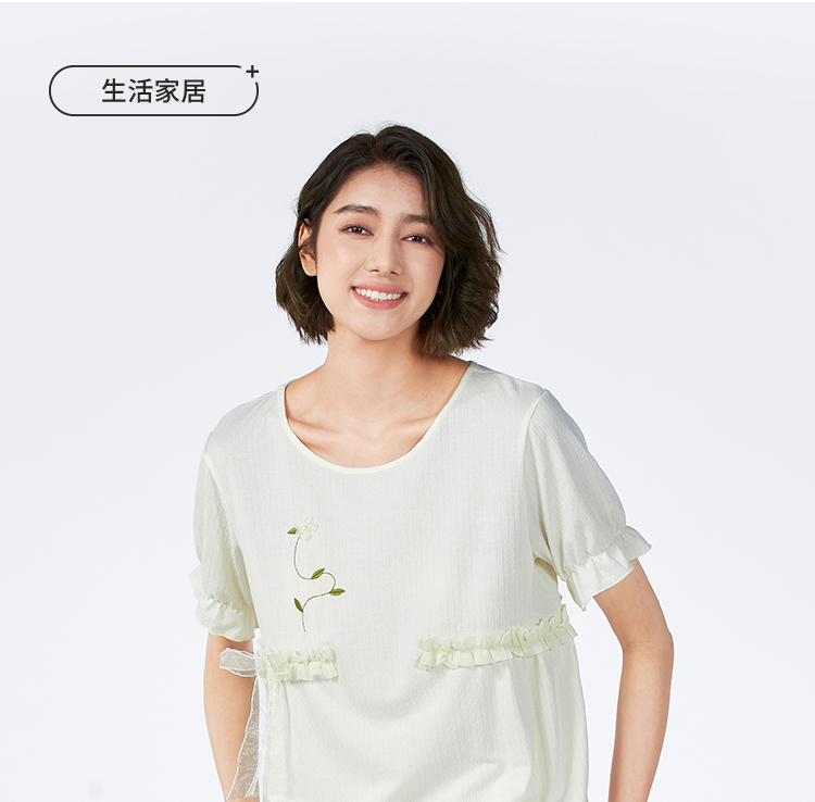 都市丽人女士正价棉质短袖套装薄针织提花生活家居短袖类LHH2F1