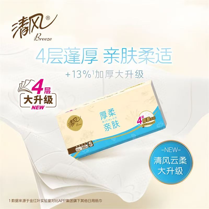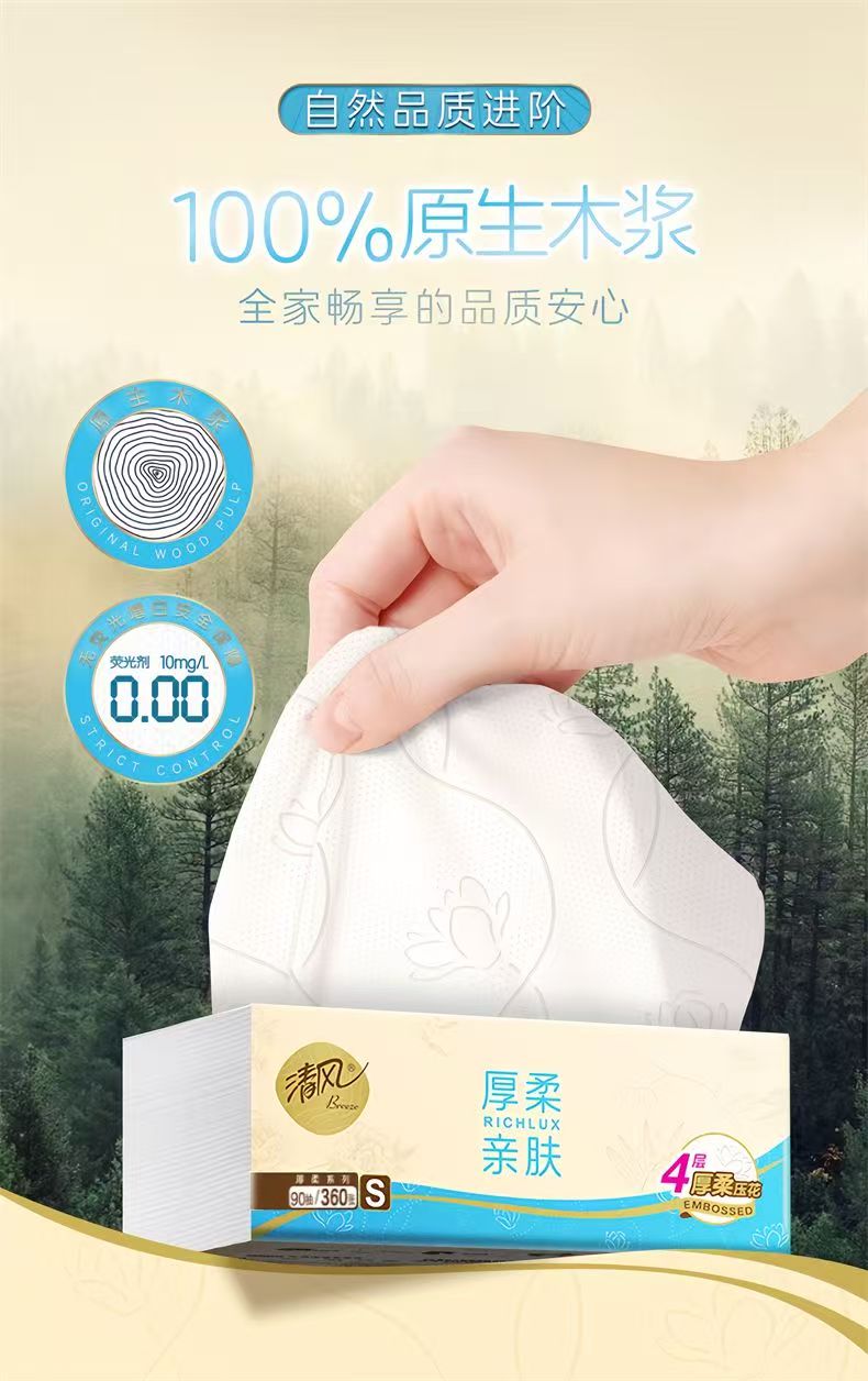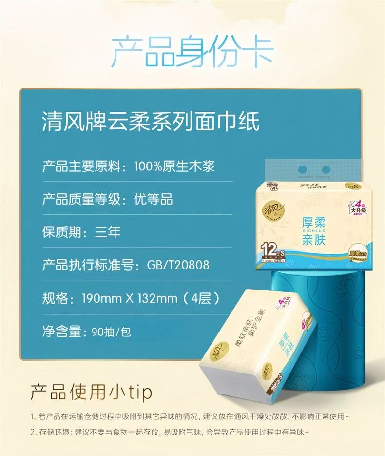 清风抽纸 清风厚柔4层90抽12包软抽(BRC1SYRN)