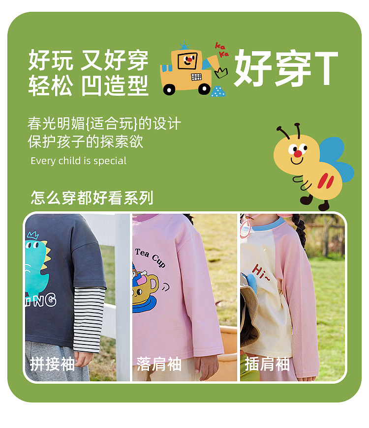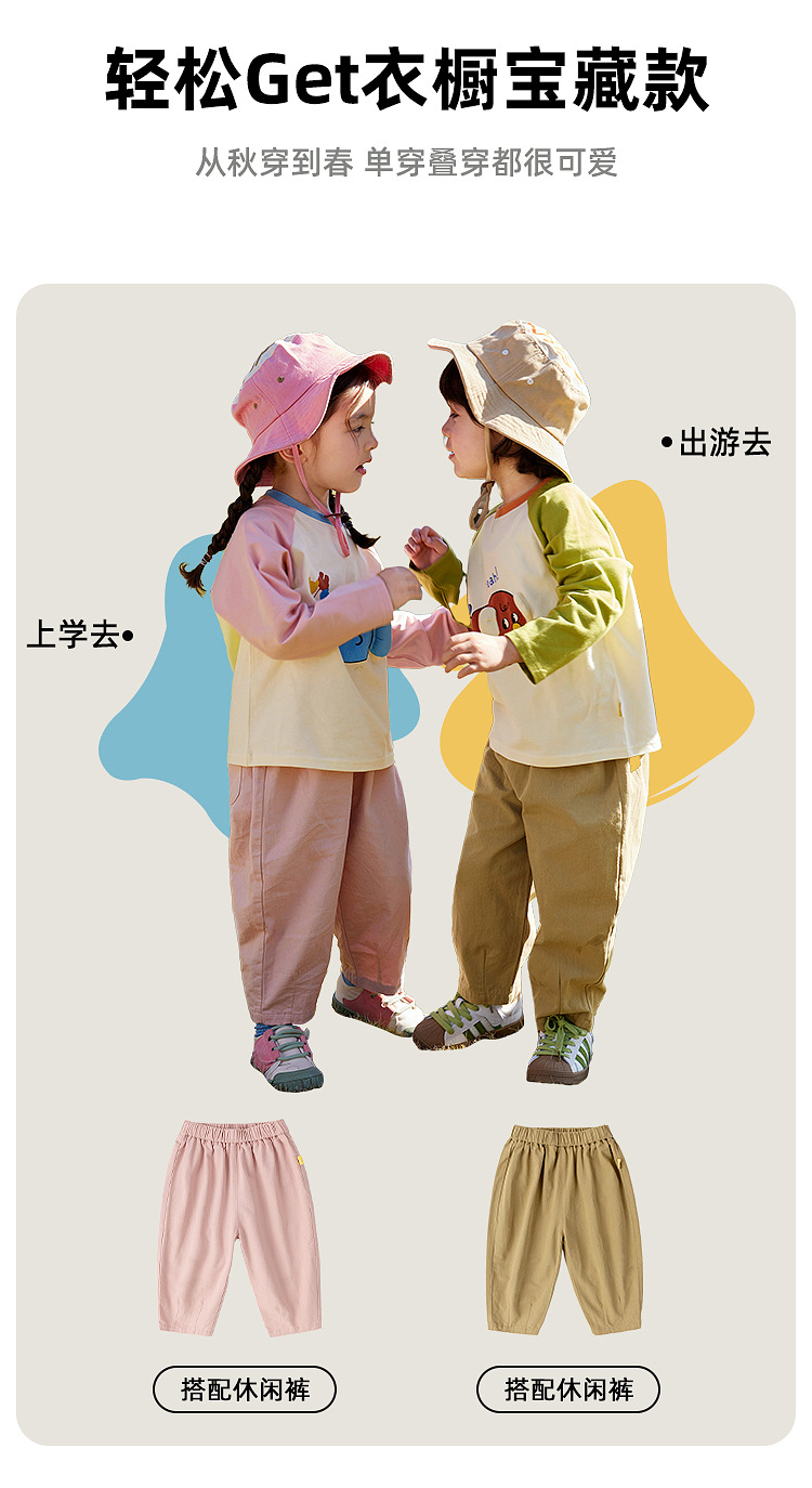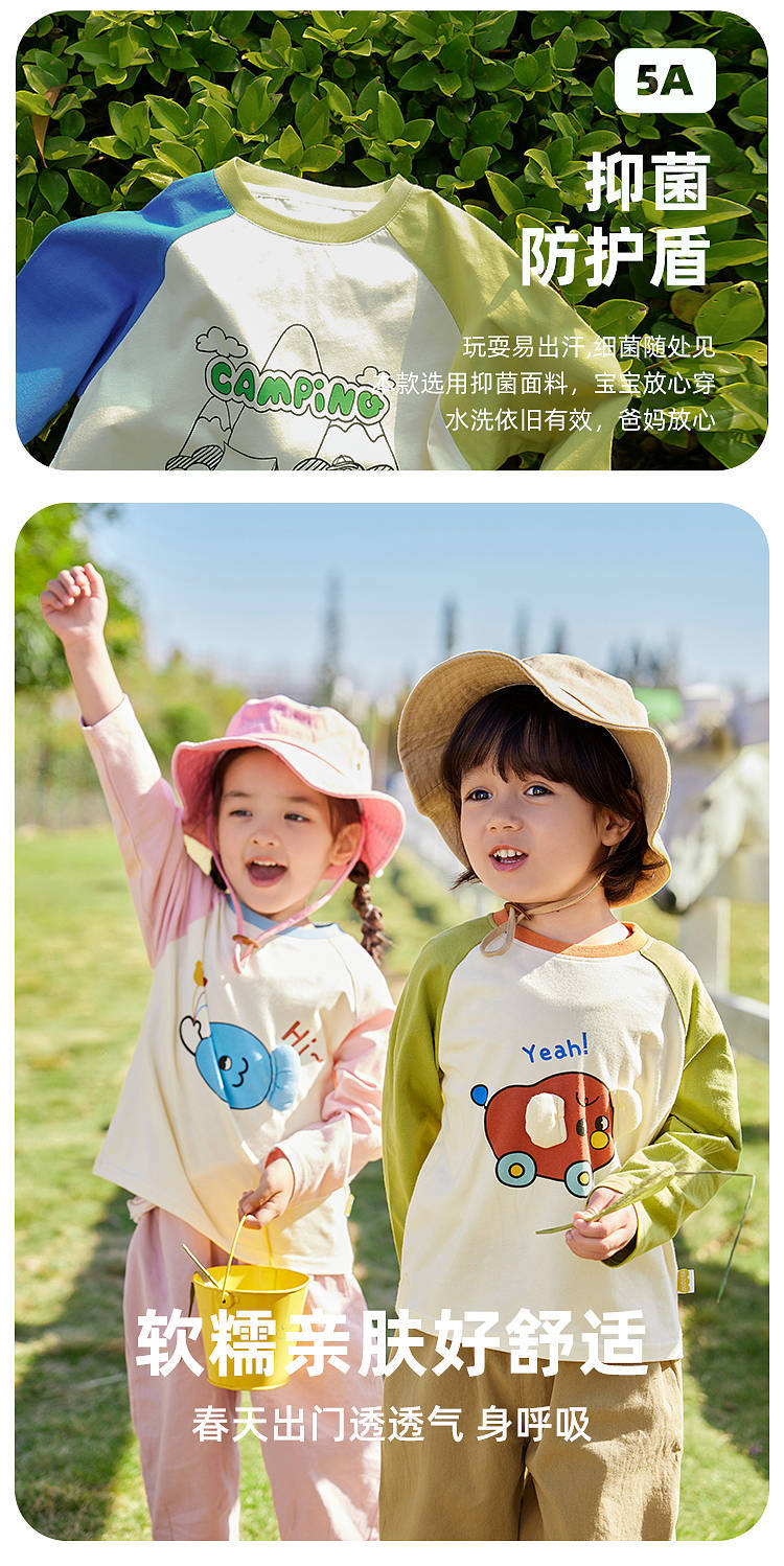 【5A抑菌】嘟嘟家男童长袖T恤秋季女童体恤秋装儿童打底衫童装潮