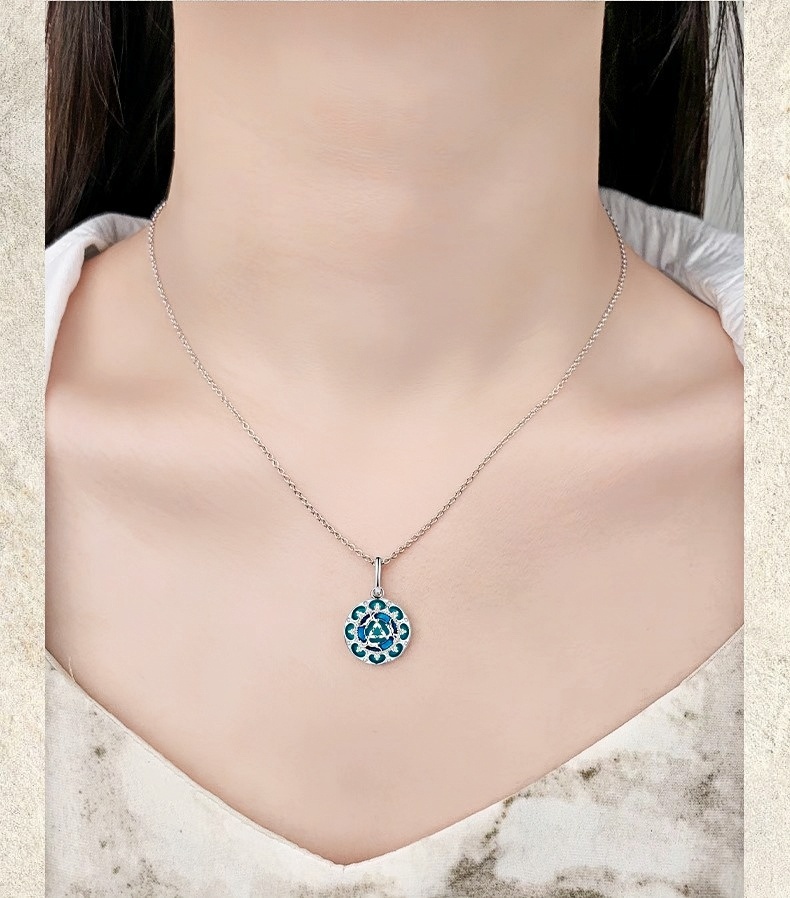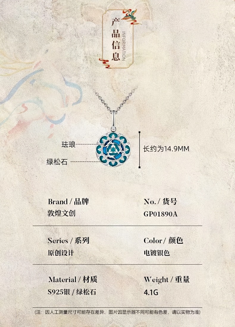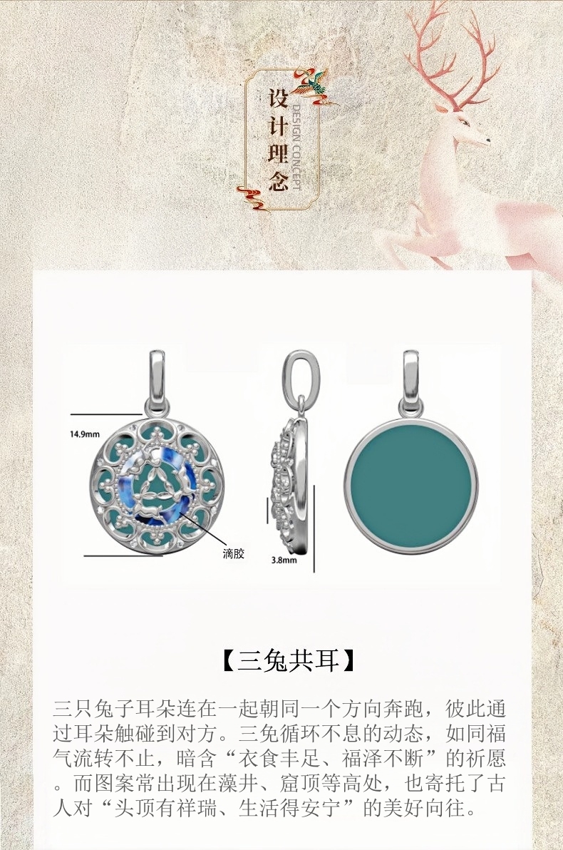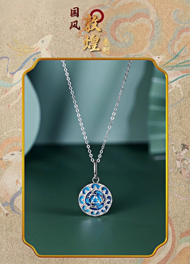 敦煌文创 敦煌三兔纹样纯银项链(绿松石)
