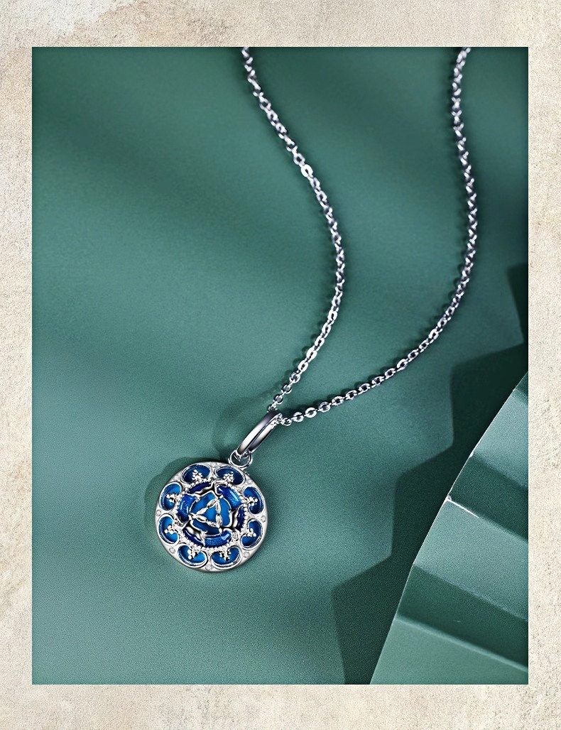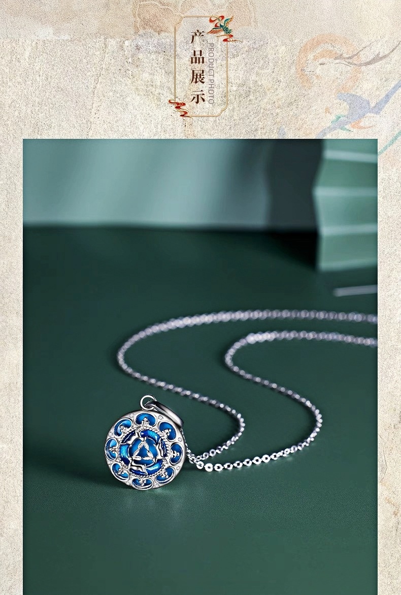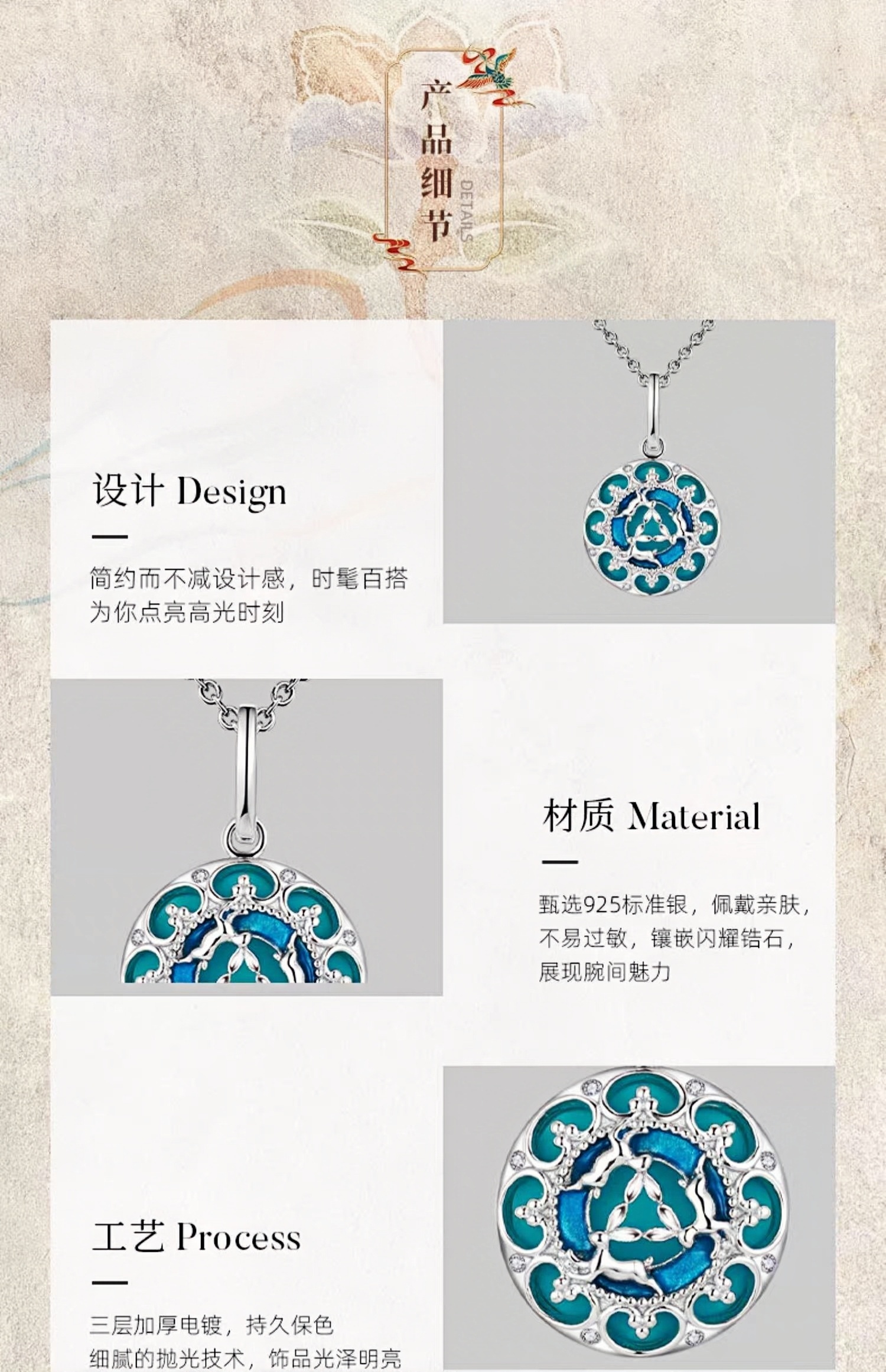 敦煌文创 敦煌三兔纹样纯银项链(绿松石)