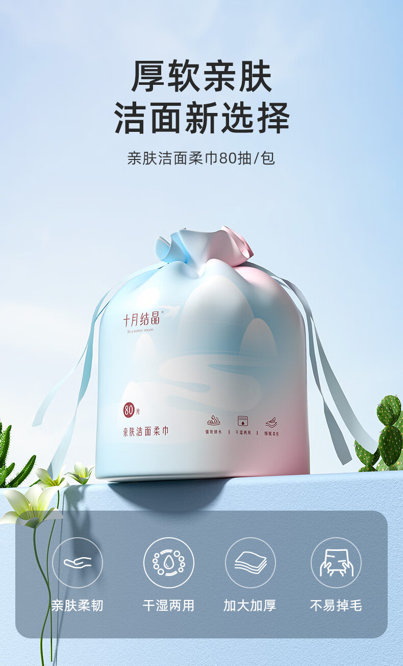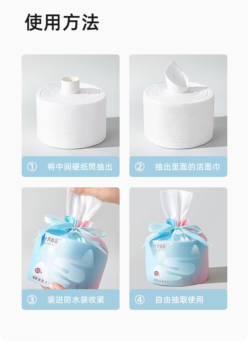 十月结晶一次性洗脸巾 化妆绵干湿两用亲肤洁面巾卷筒巾加厚80抽 100013902020