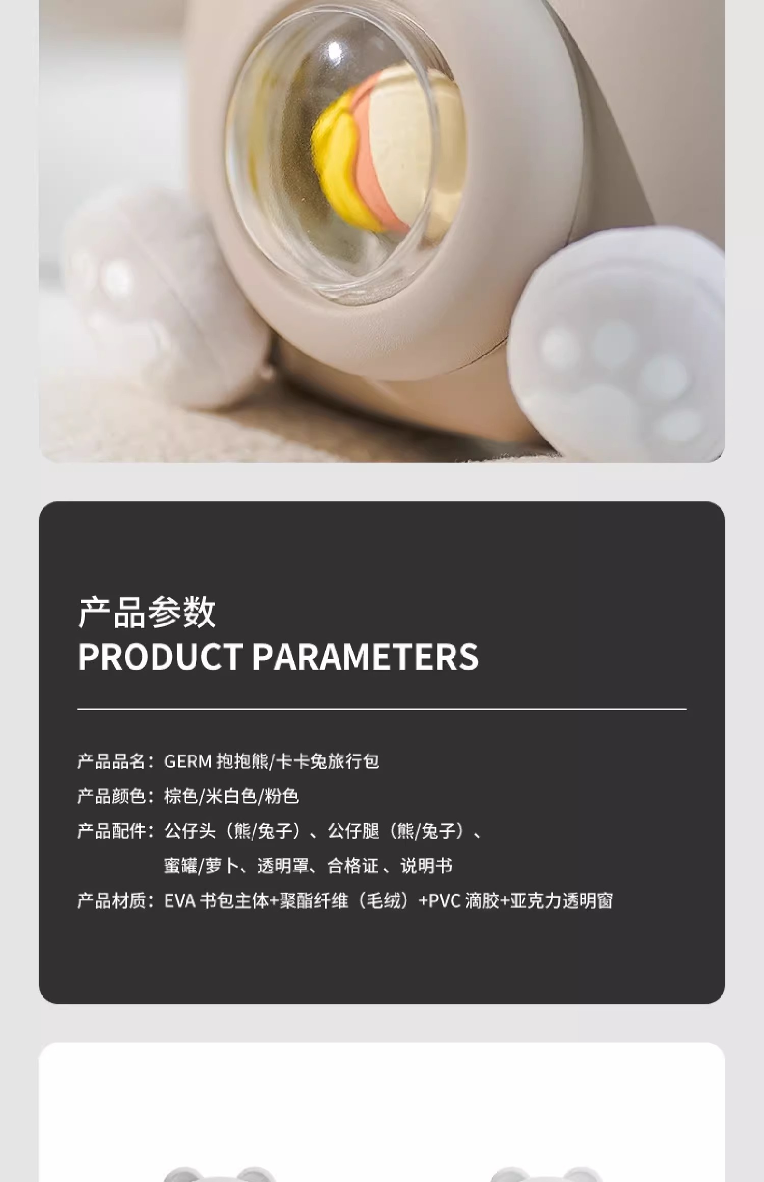 【小家电】GERM格沵卡卡兔抱抱熊旅行包HF