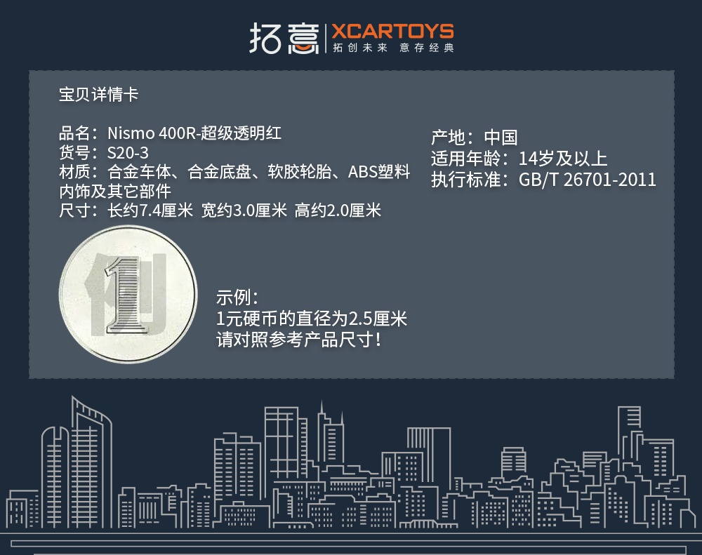 拓意合金车S20-03Nismo 400R-Super Clear red