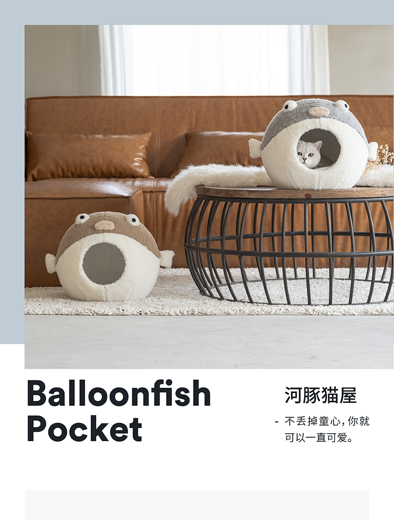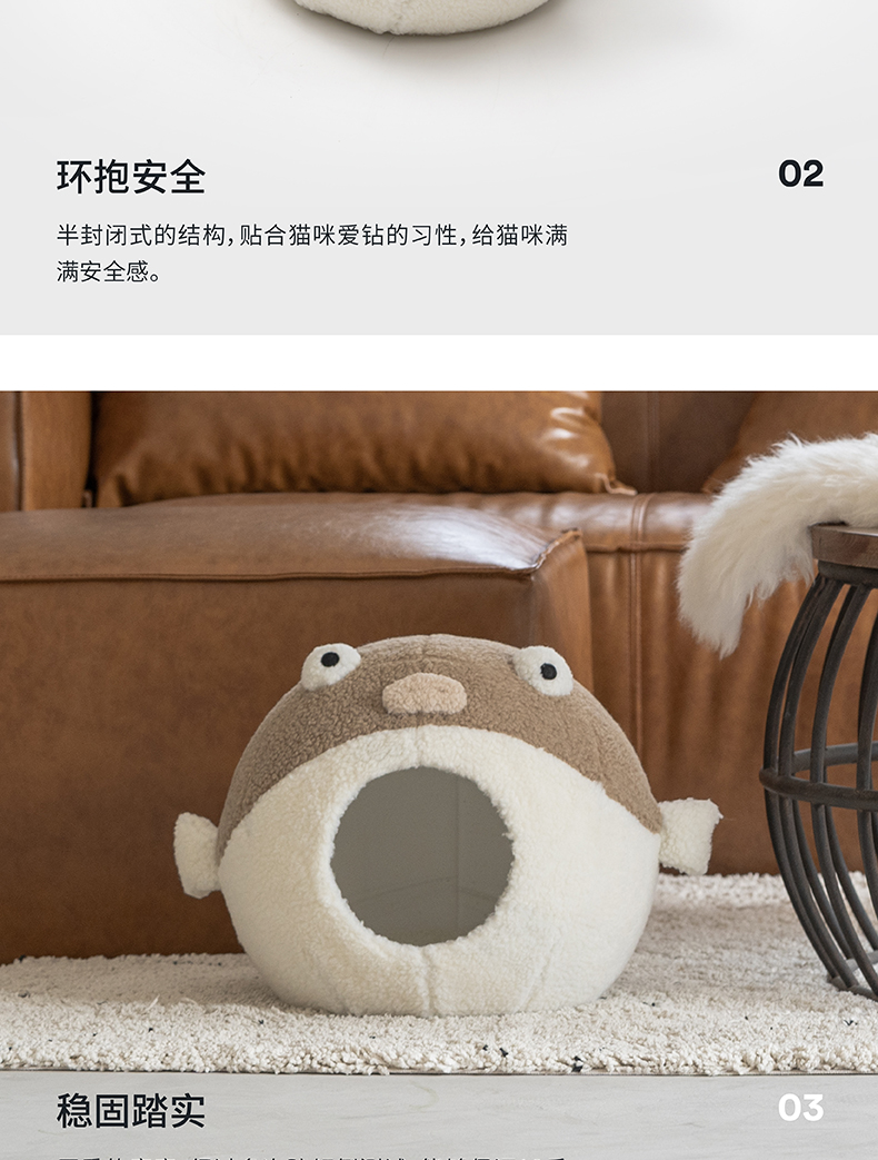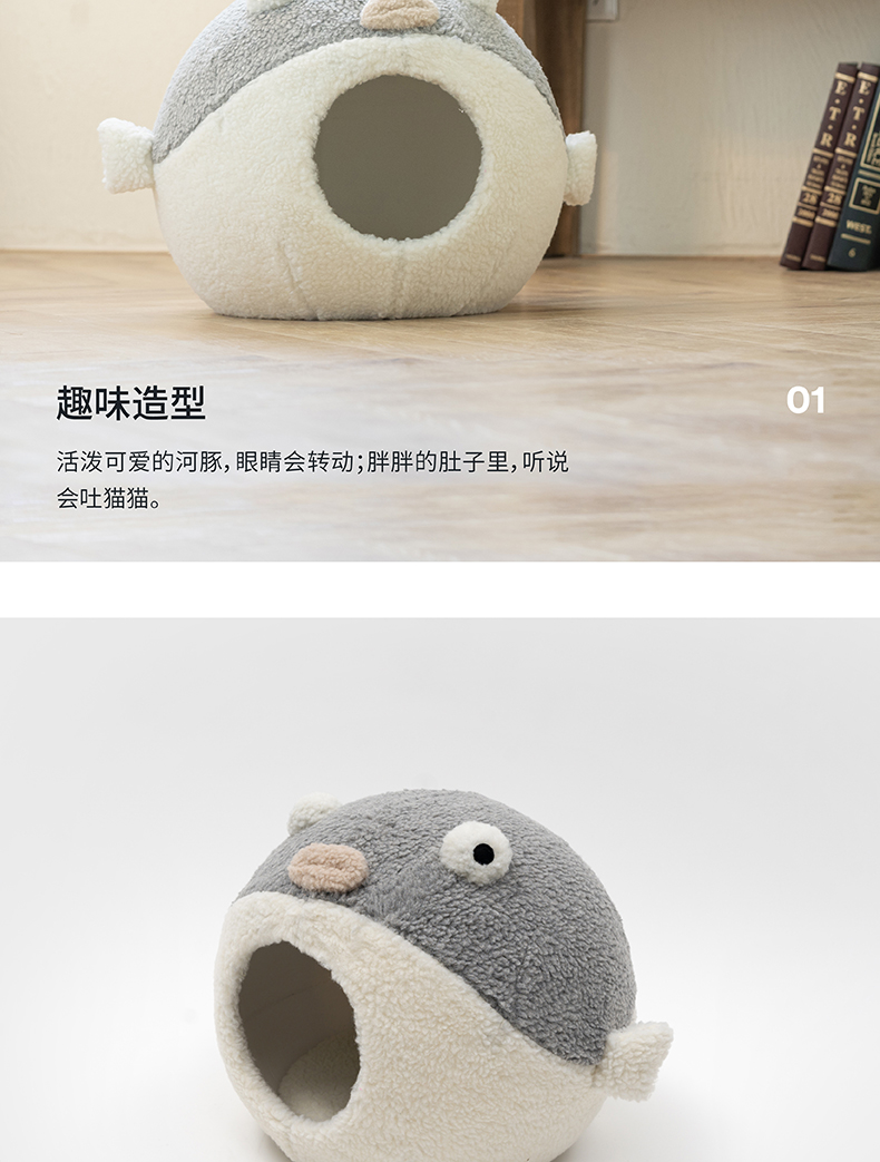 zeze河豚猫窝四季通用半封闭猫咪窝房子别墅猫咪用品【海洋系列】