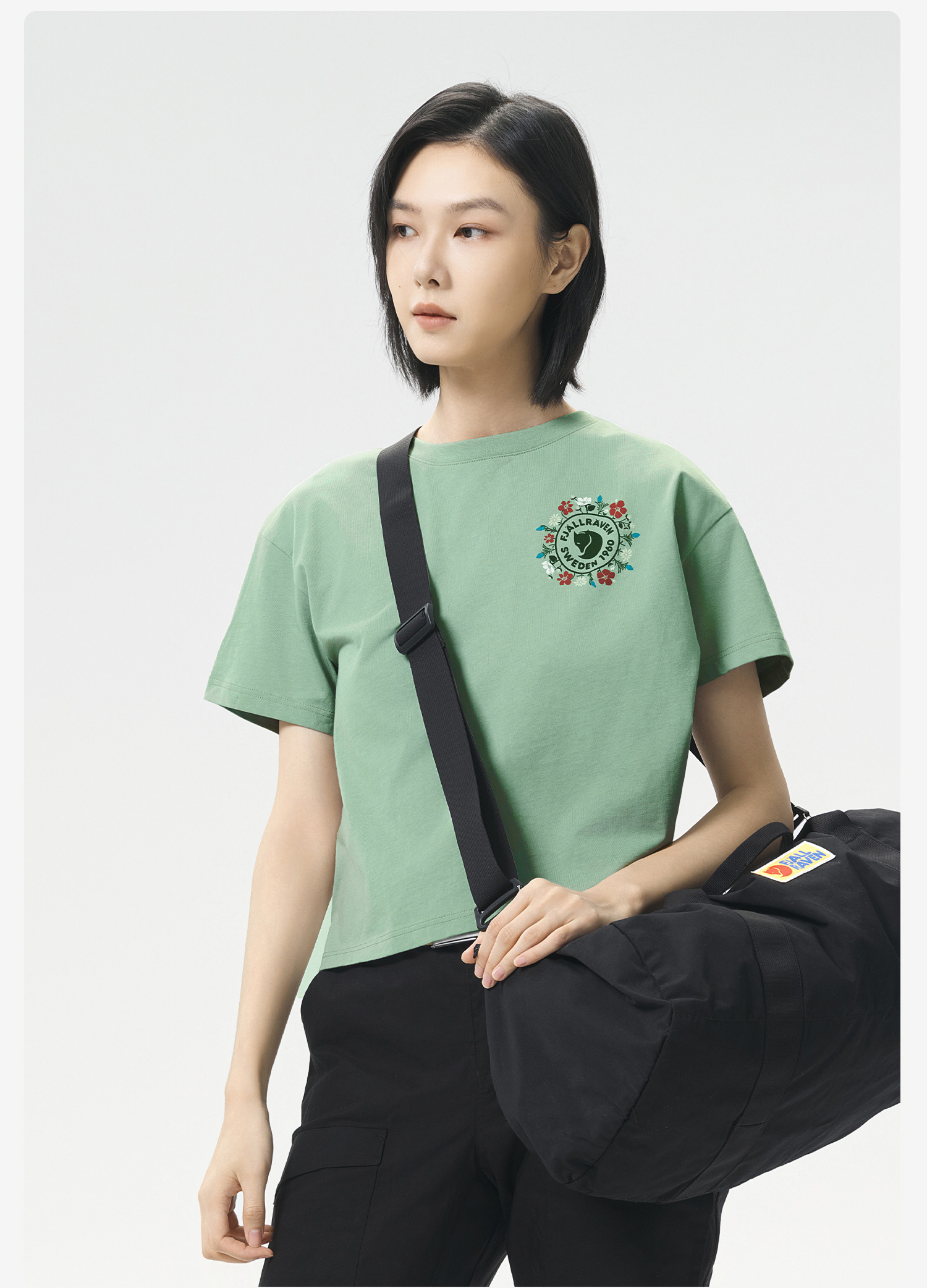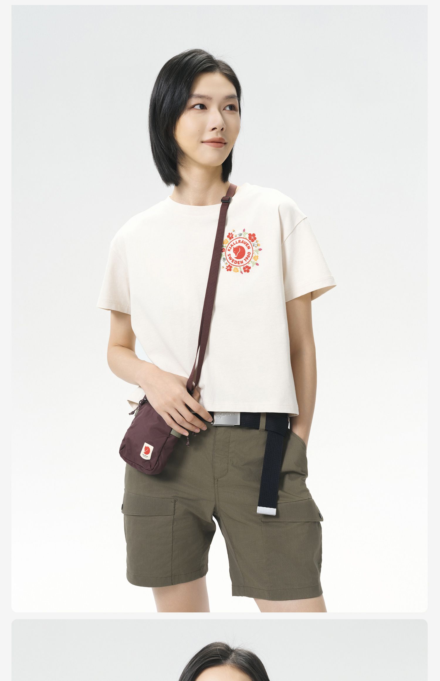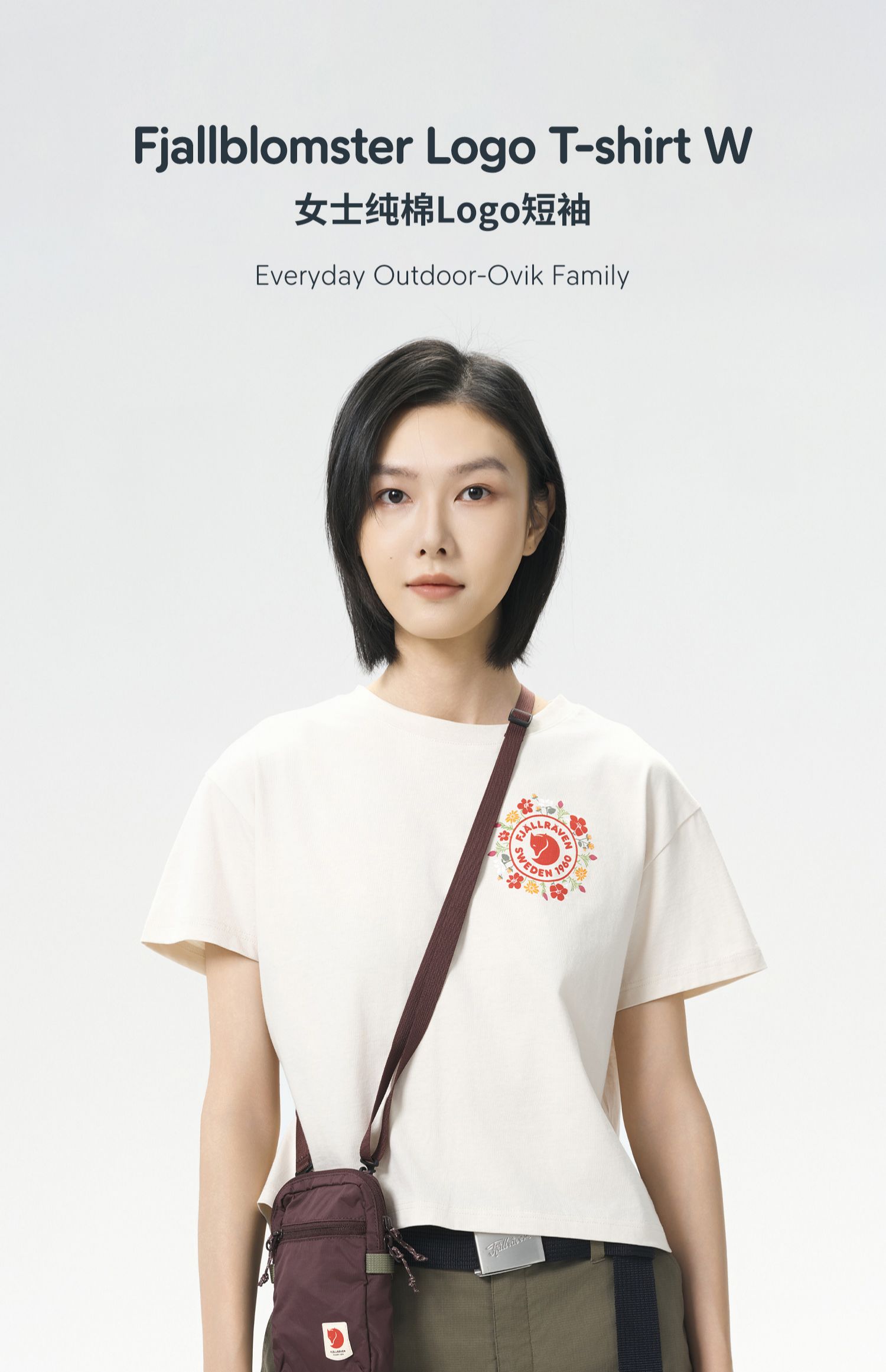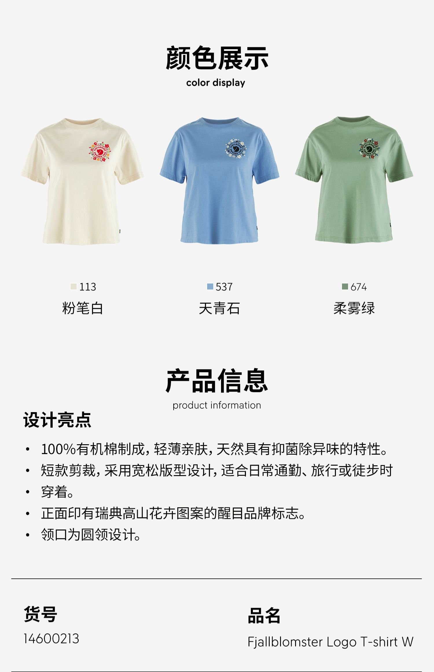 北极狐 女士户外短袖T恤 2025春夏新款短款宽松全棉上衣 14600213