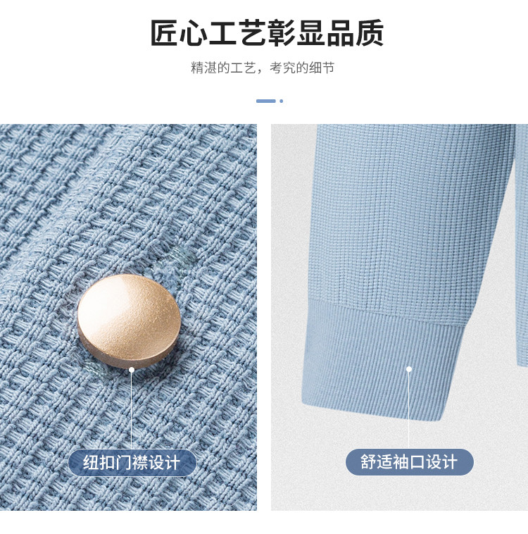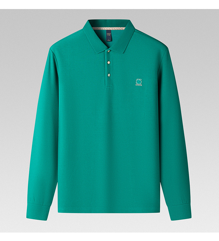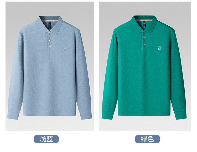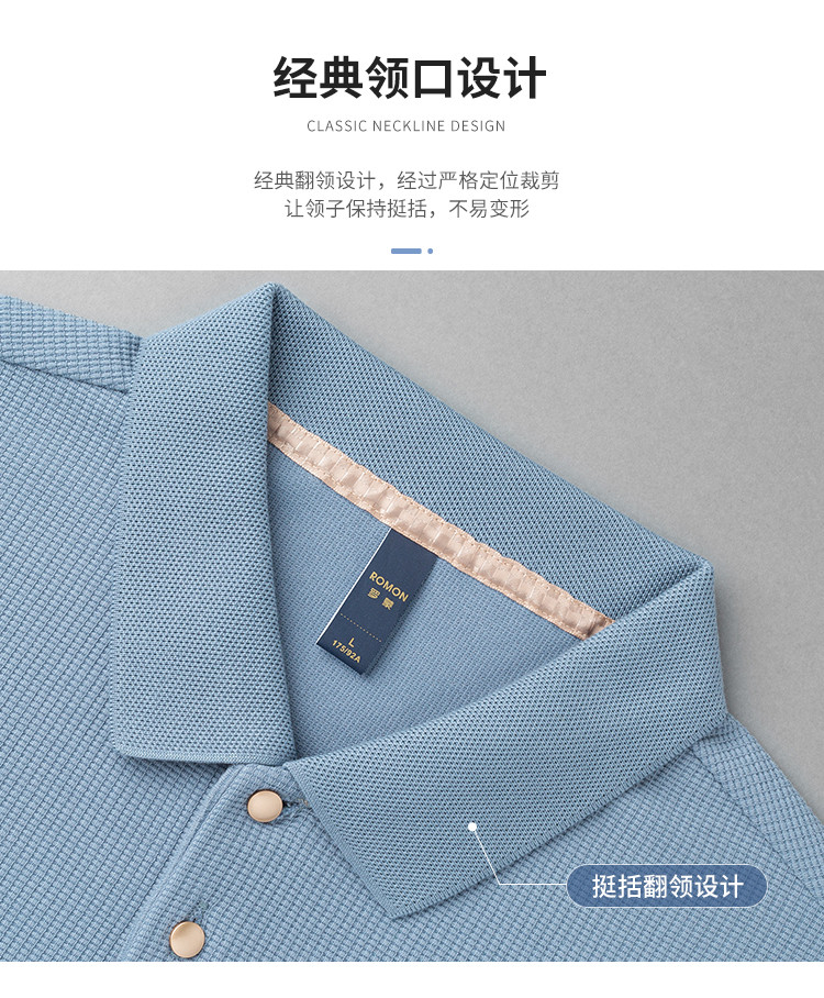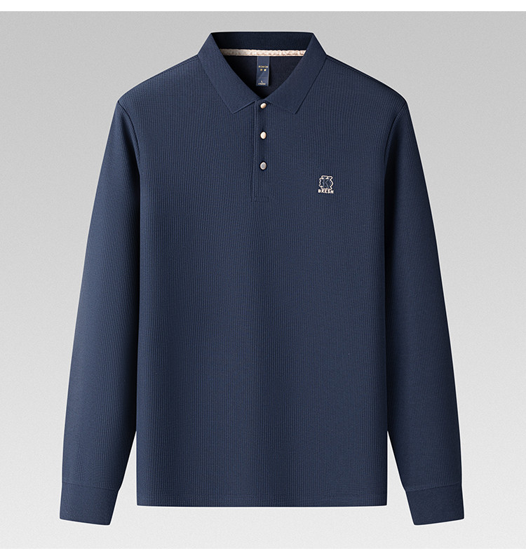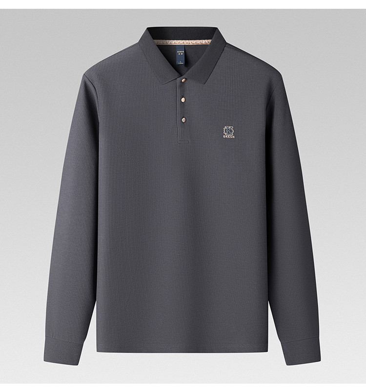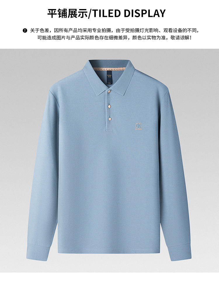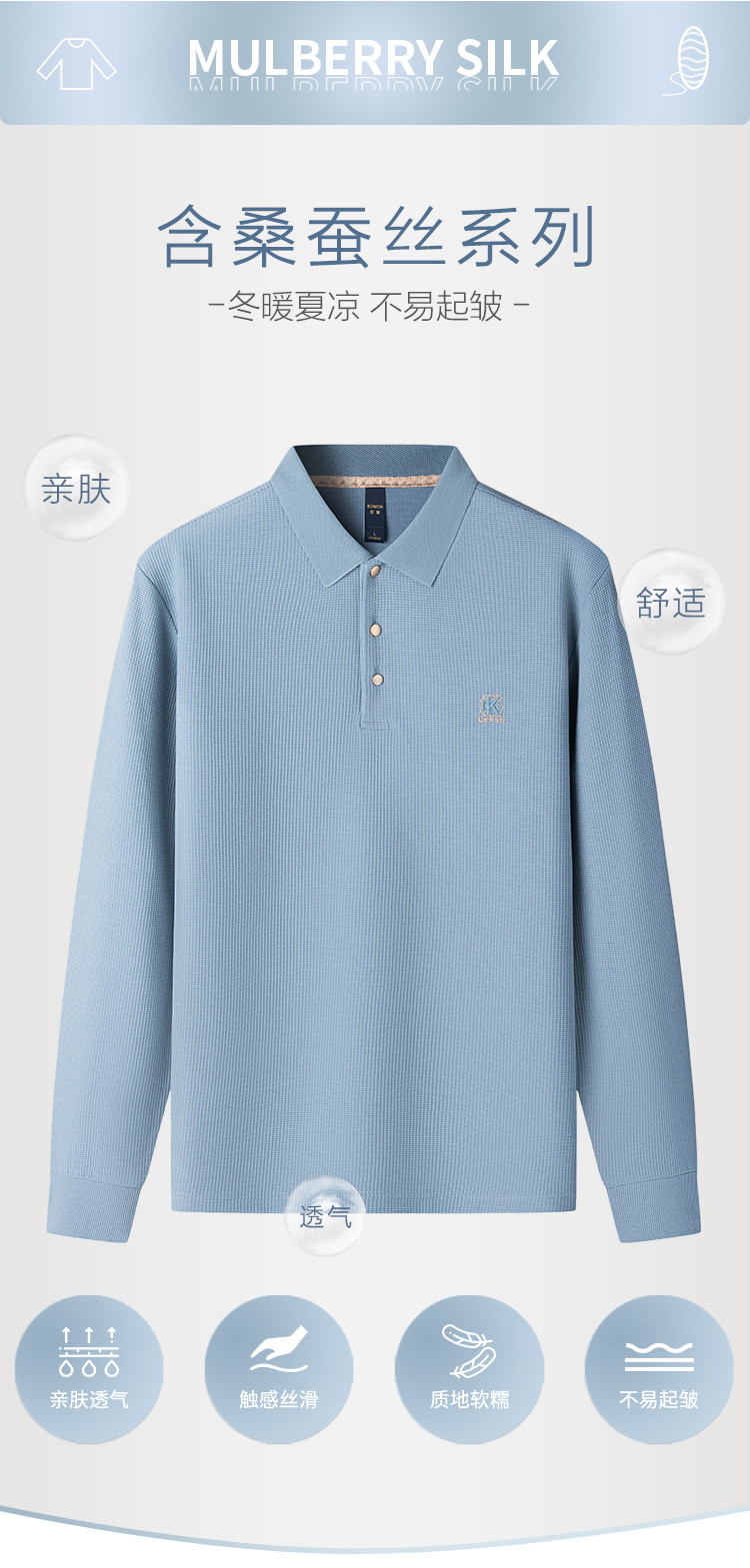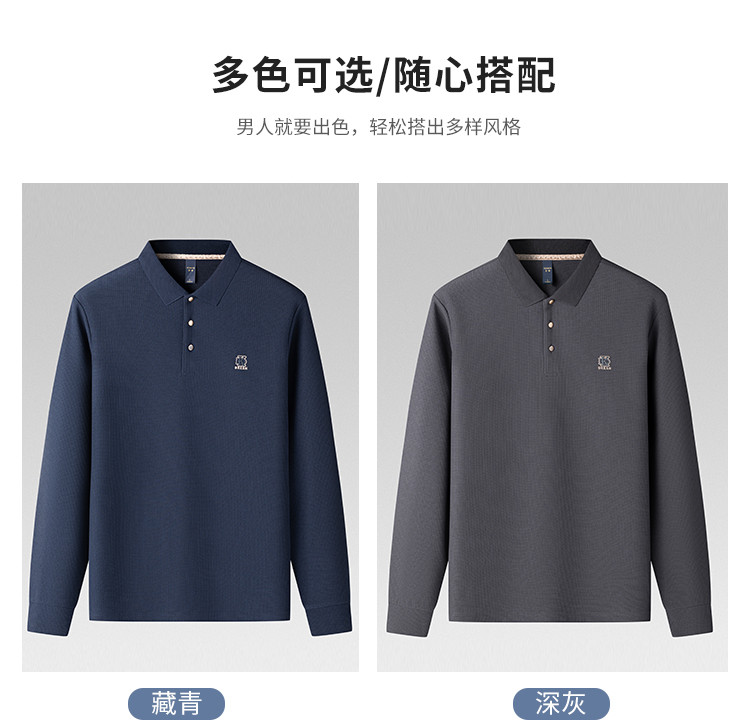 【含桑蚕丝】罗蒙男士春秋华夫格加厚polo衫男长袖t恤男舒适男polo衫