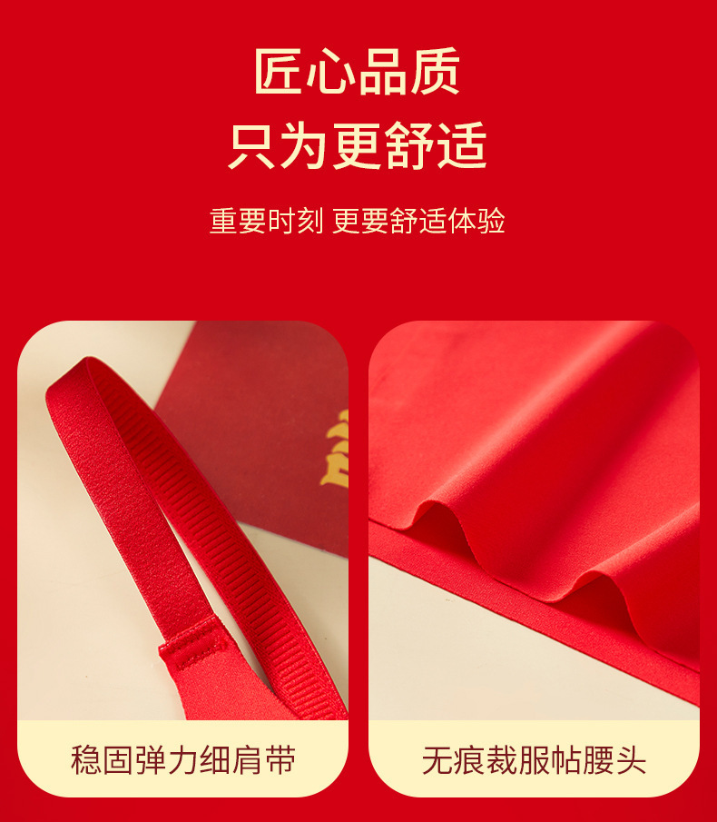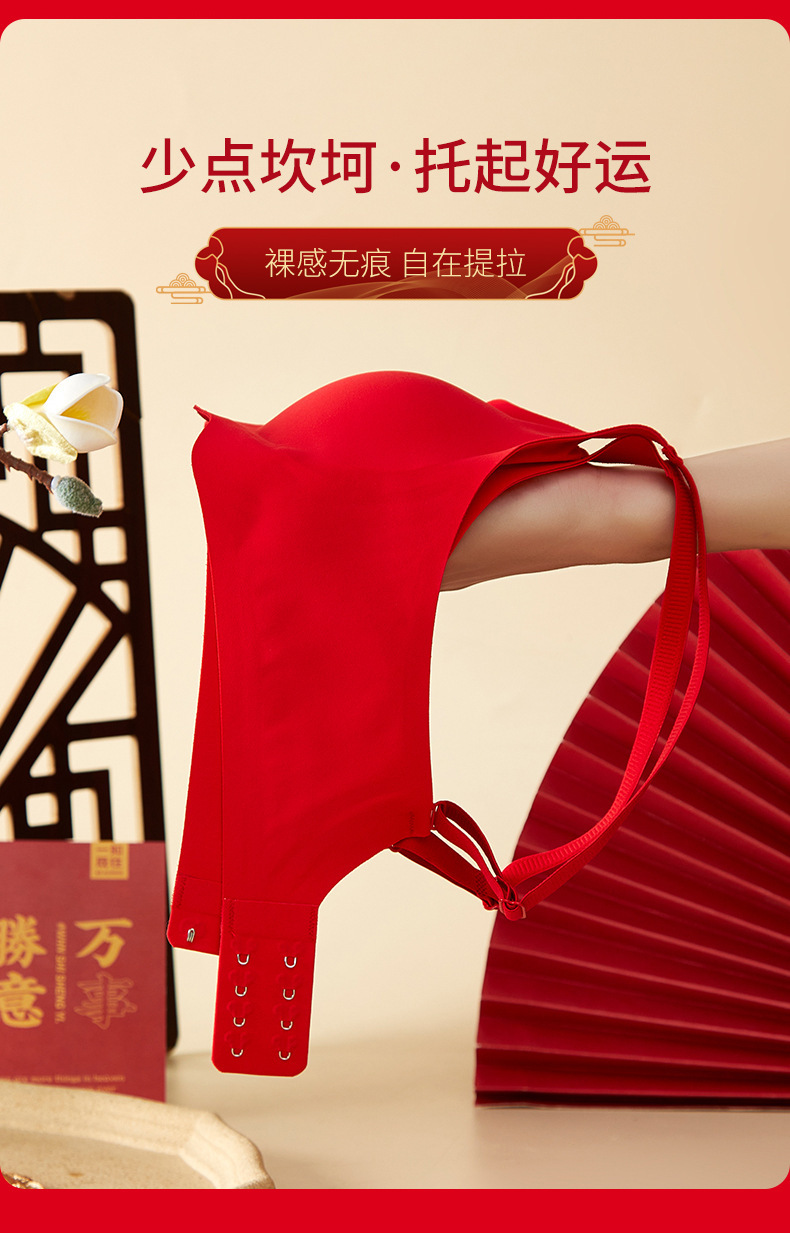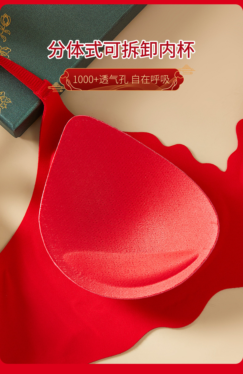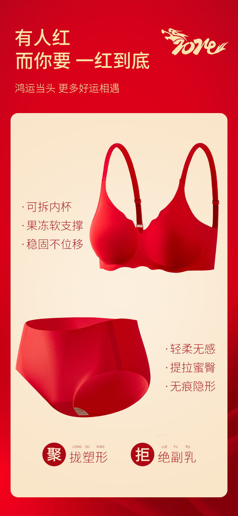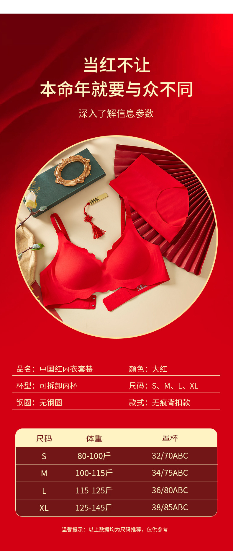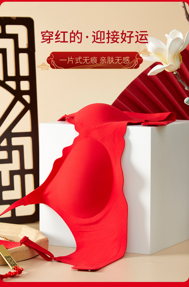 【本命年内衣!把好运穿身上】本命红无痕内衣,你的结婚喜庆内衣选择。聚拢文胸女士,大胸显小,小胸专用,无钢圈胸罩薄款。反叛平凡,引领时尚潮流!