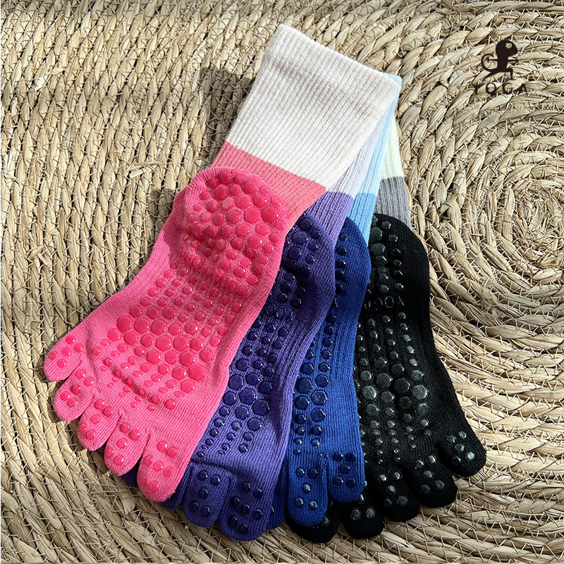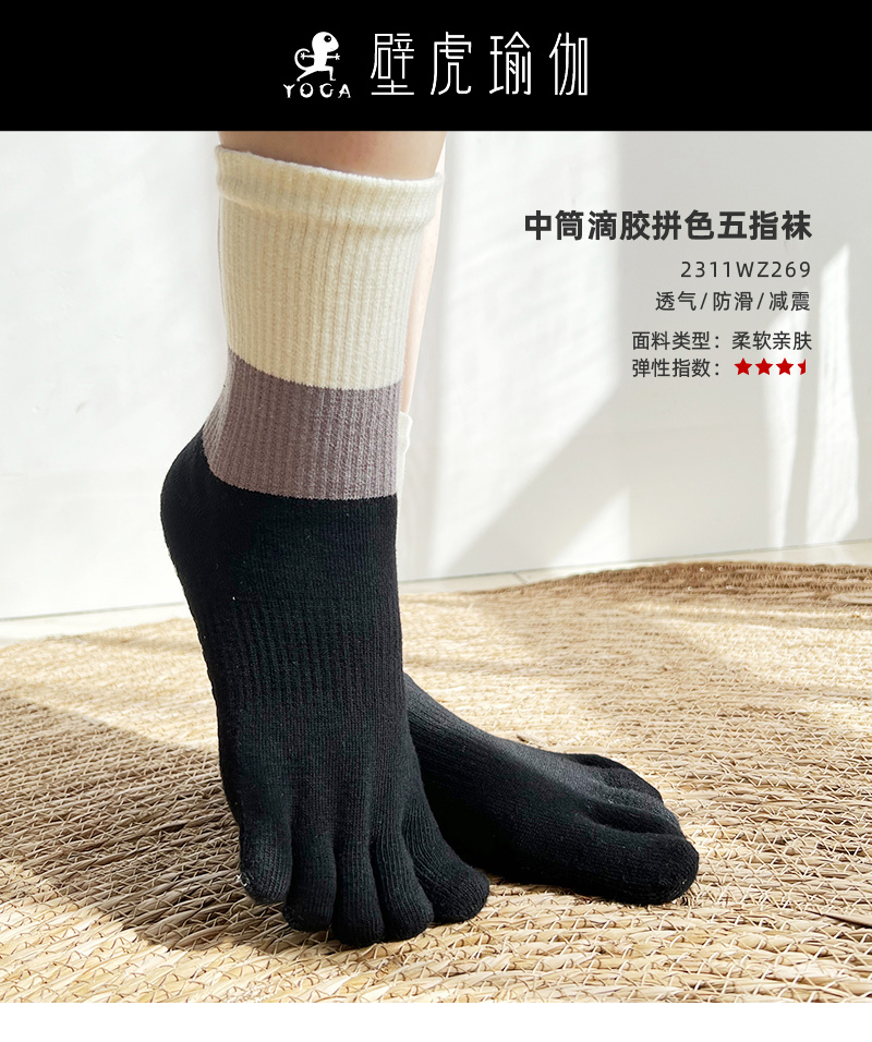 壁虎瑜伽【2310WZ269】防滑中筒拼色五趾瑜伽袜【5天发货】