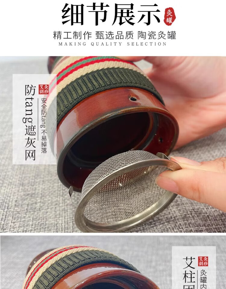 真艾堂艾灸罐陶瓷刮痧杯艾灸盒随身灸家用熏蒸仪棋宫韩温灸美容院 美人灸全家福套装