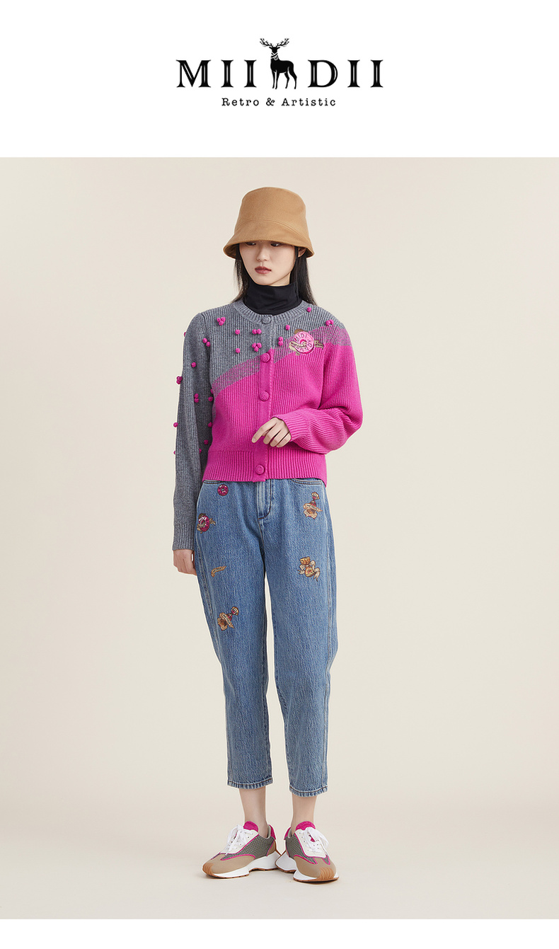 谜底绣花牛仔裤2022秋新款复古牛仔萝卜裤百搭九分裤女223MK1018