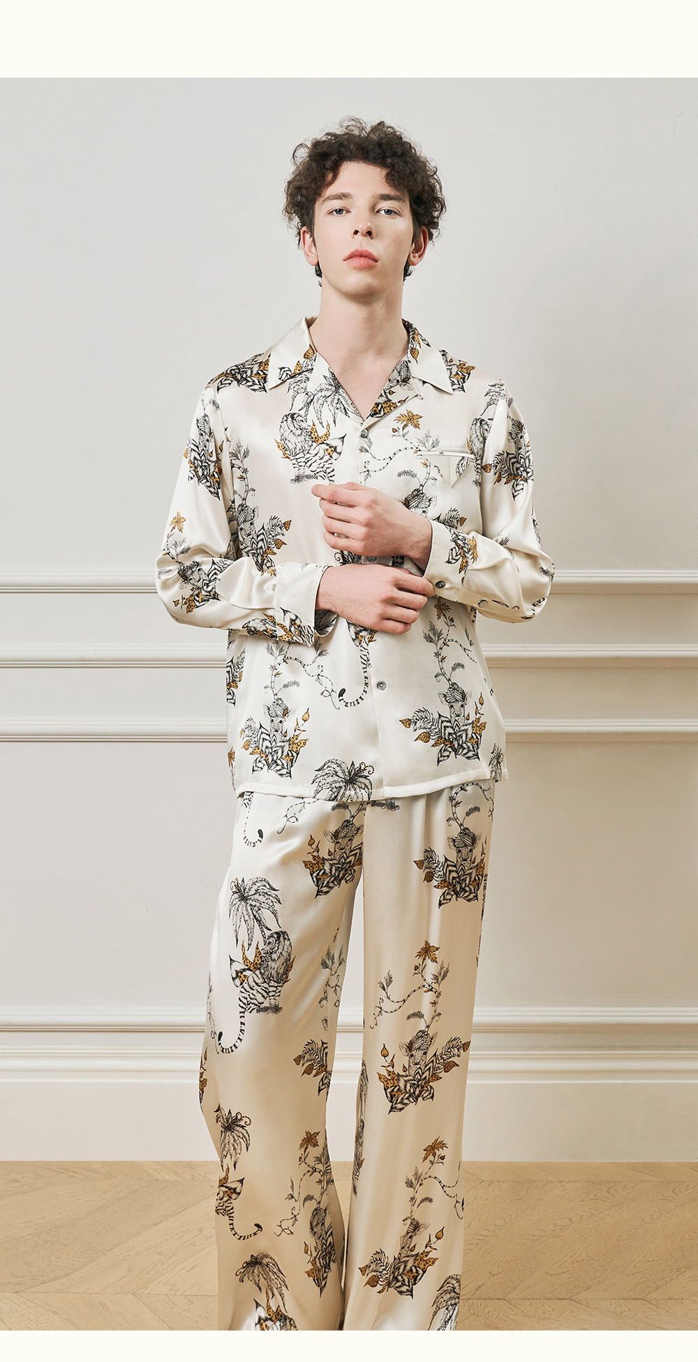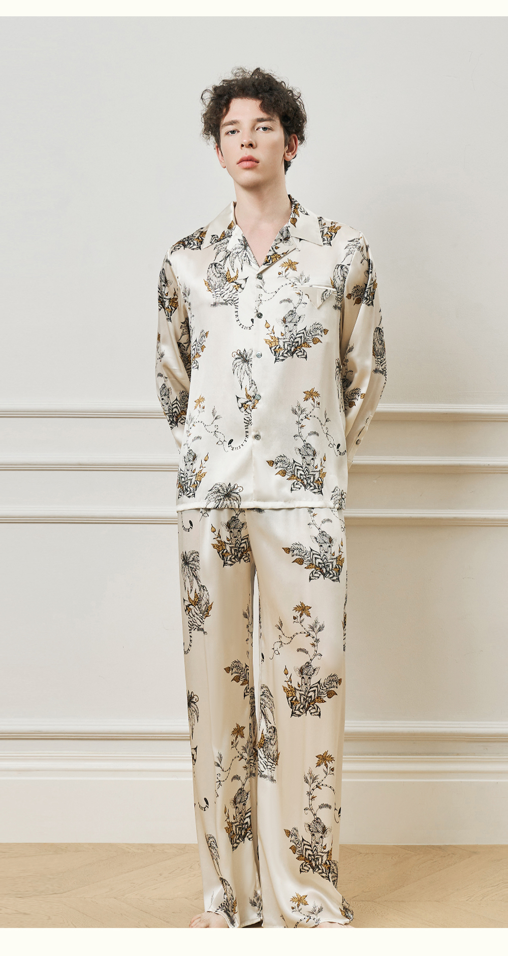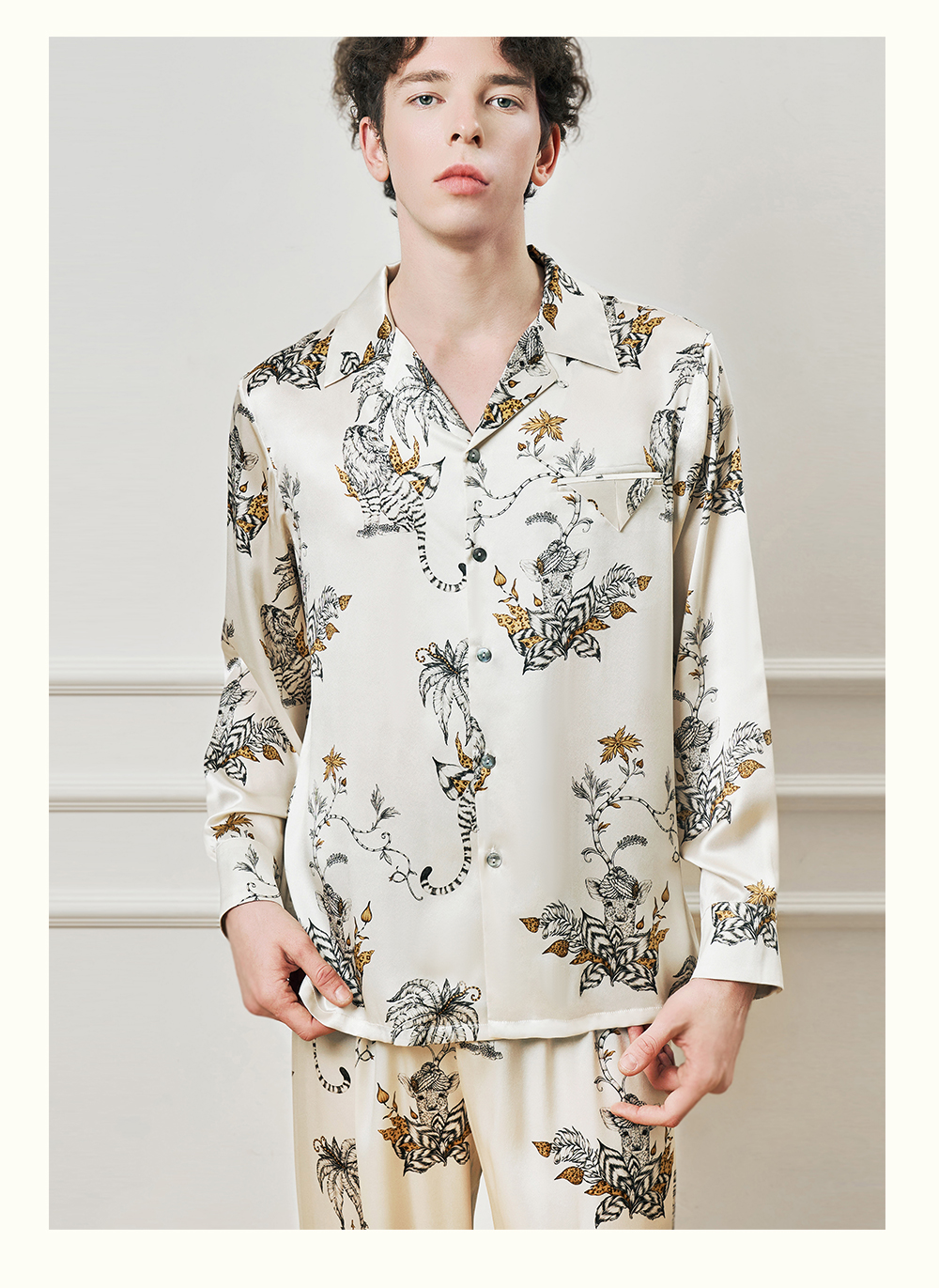 Solo seta22姆米重磅真丝男士印花衬衫长裤桑蚕丝家居服2025年秋
