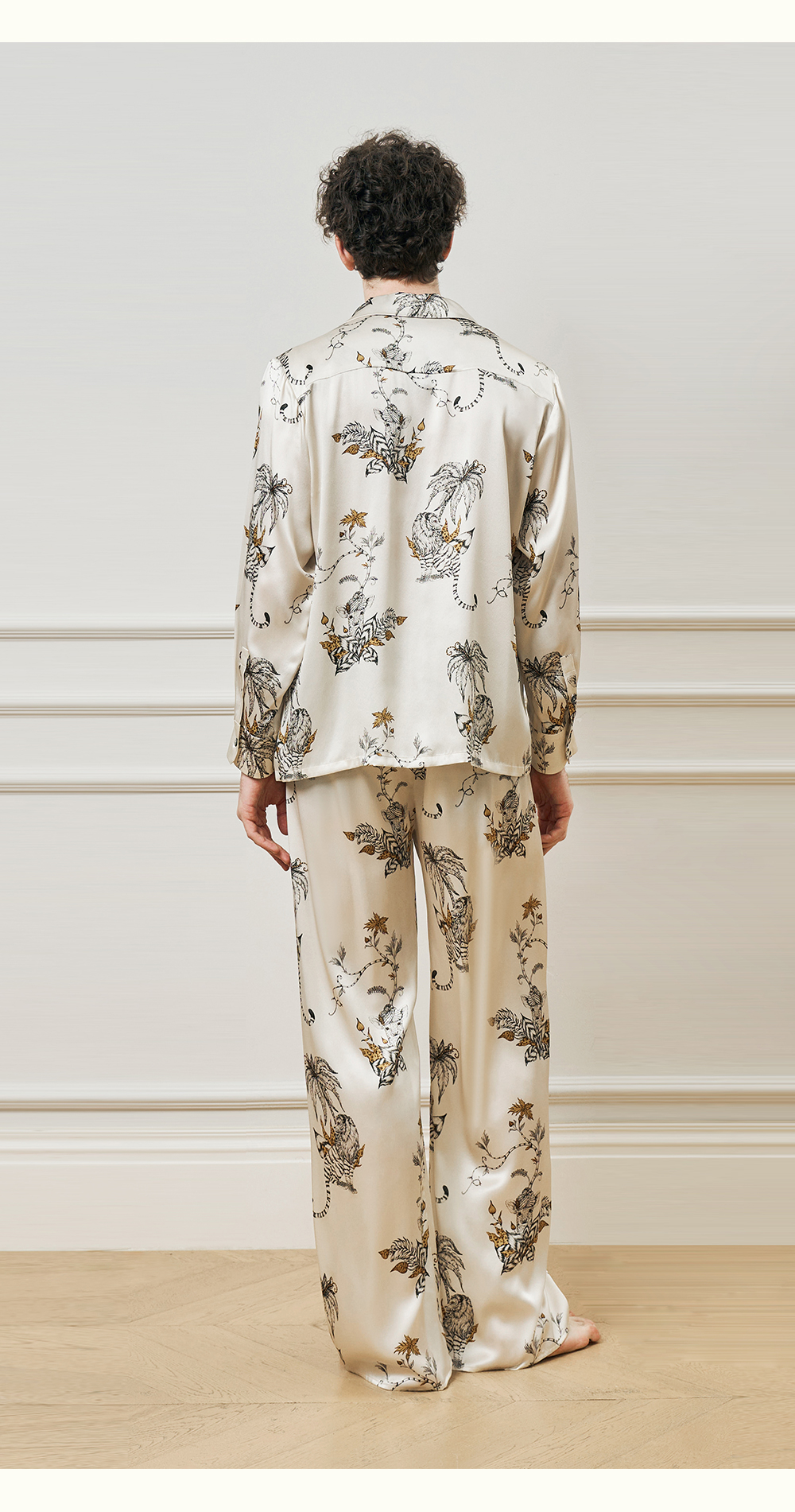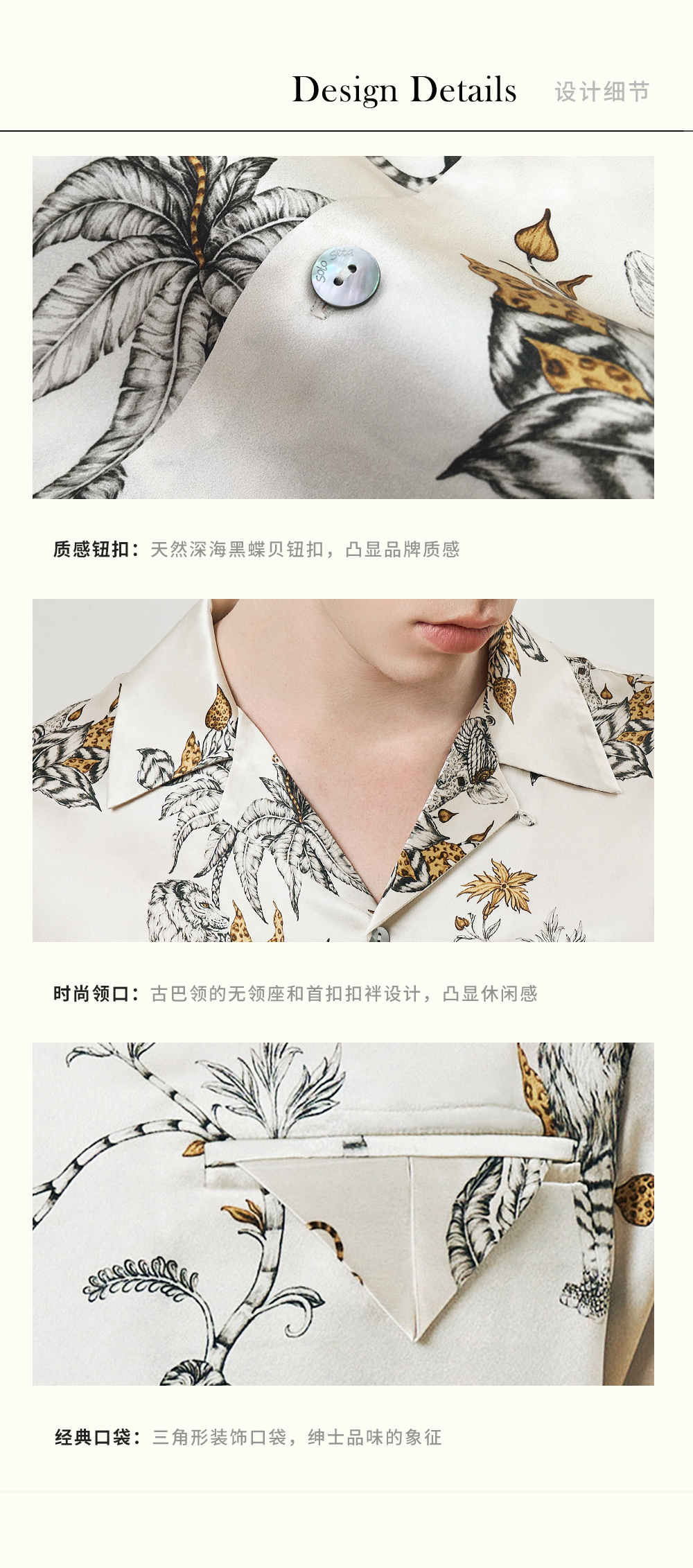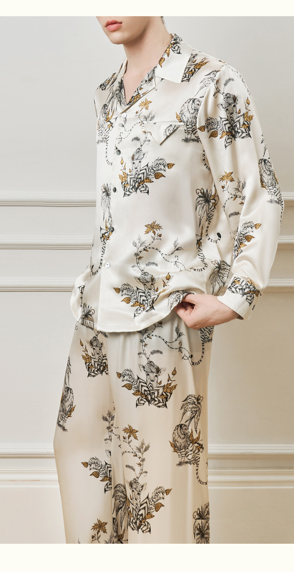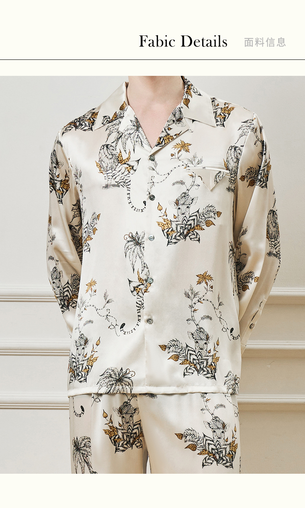 Solo seta22姆米重磅真丝男士印花衬衫长裤桑蚕丝家居服2025年秋